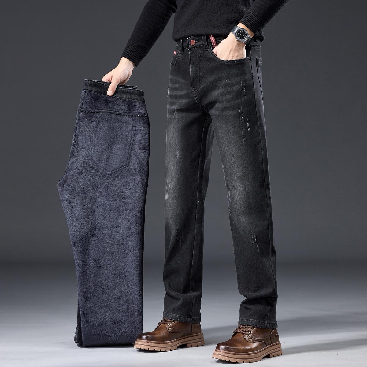 【YS2637】美式高街微喇彈力加絨牛仔褲