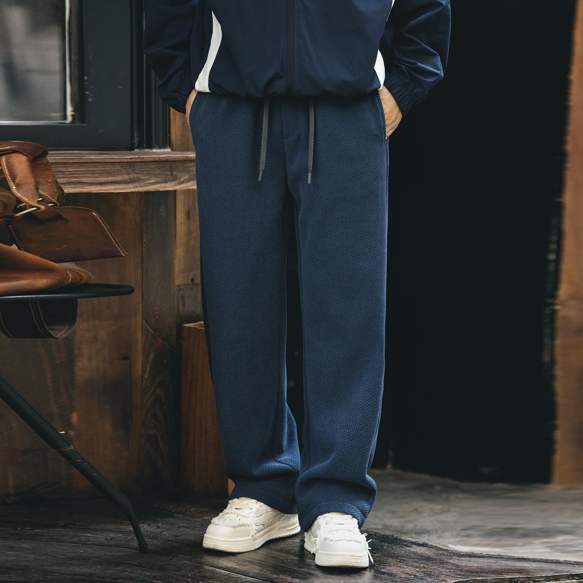 【YS2634】純色簡約基礎百搭提花寬鬆鬆緊腰休閒褲