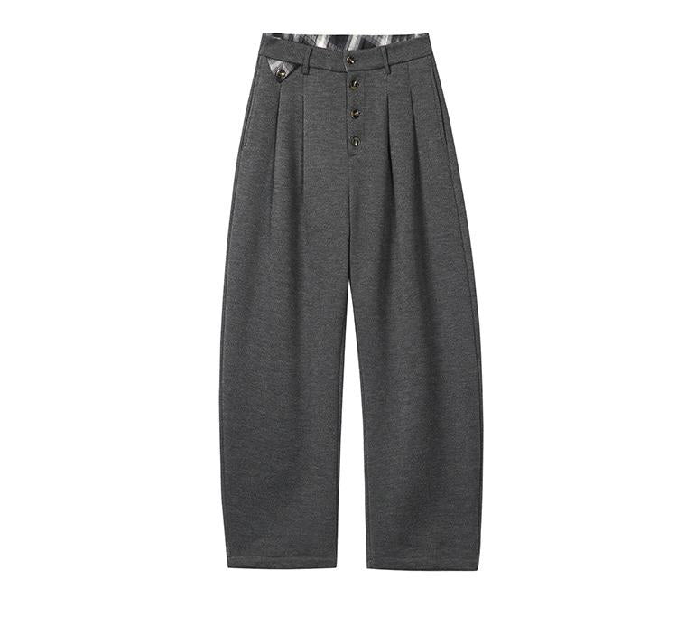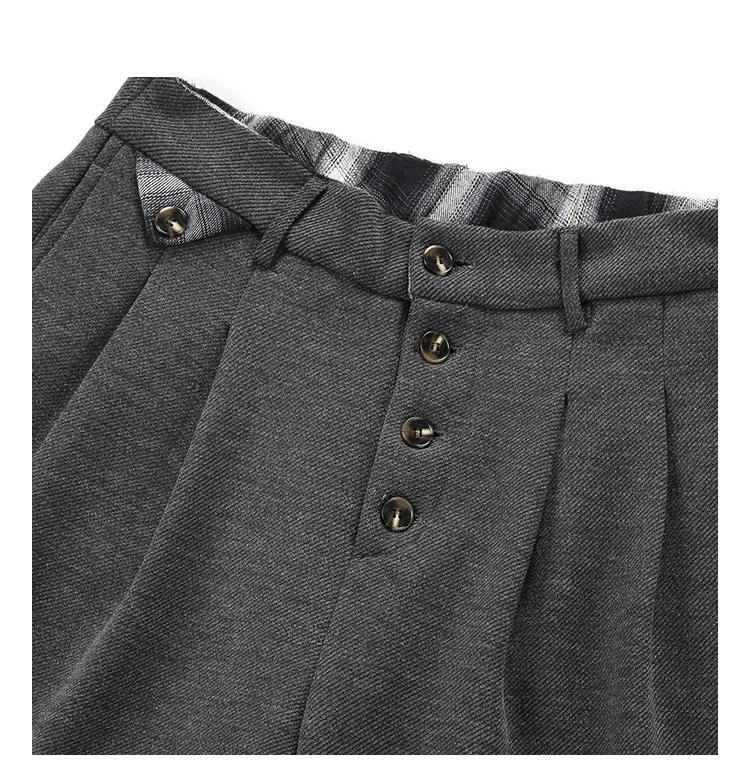 【YS2635】彈力加絨加厚仿羚羊絨斜紋寬鬆老錢風排扣休閒褲