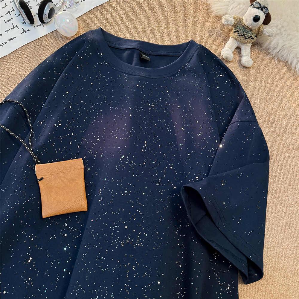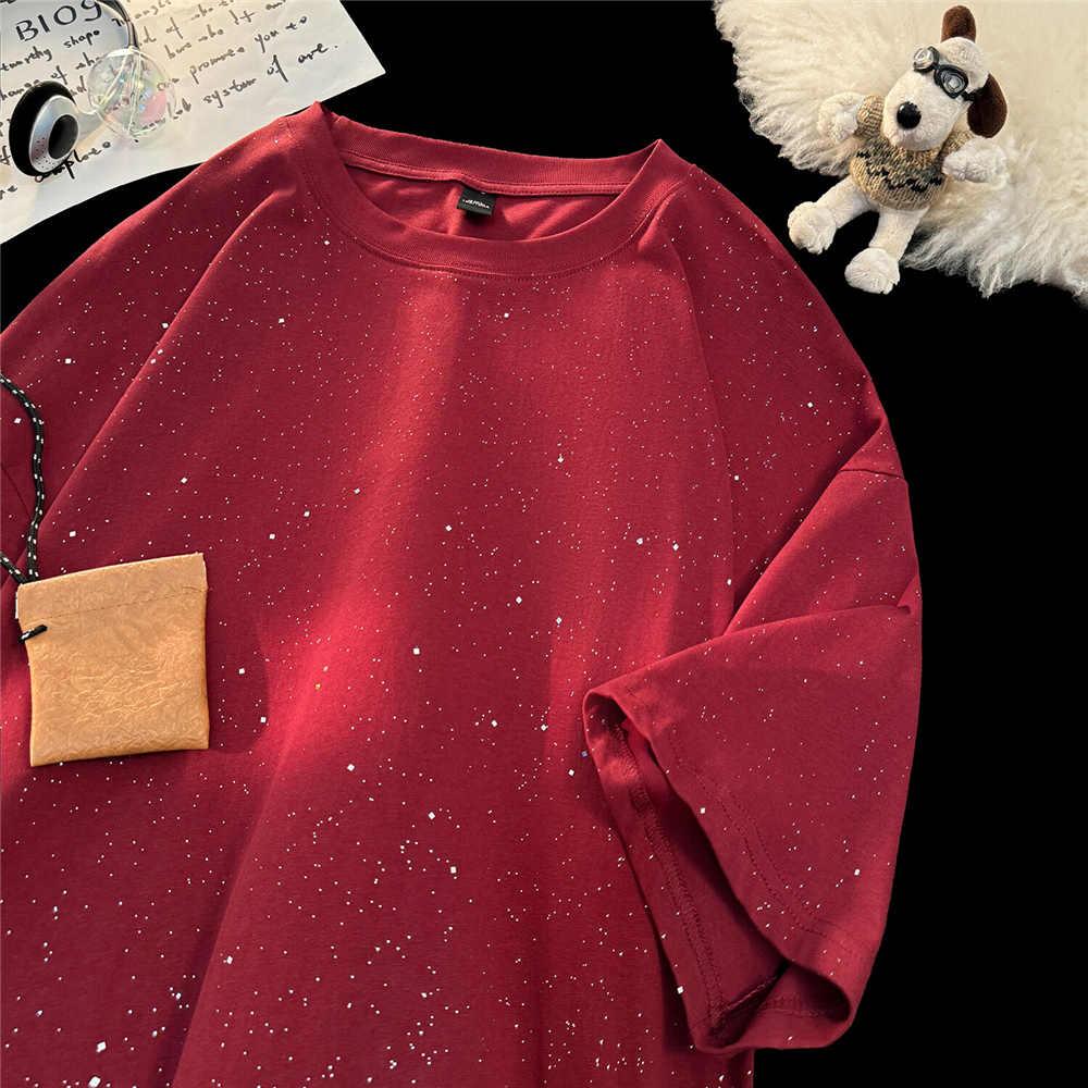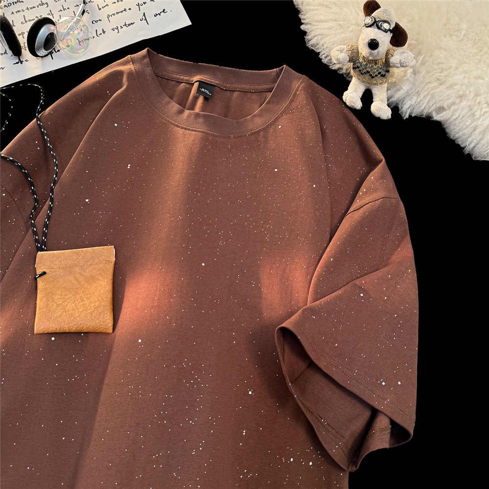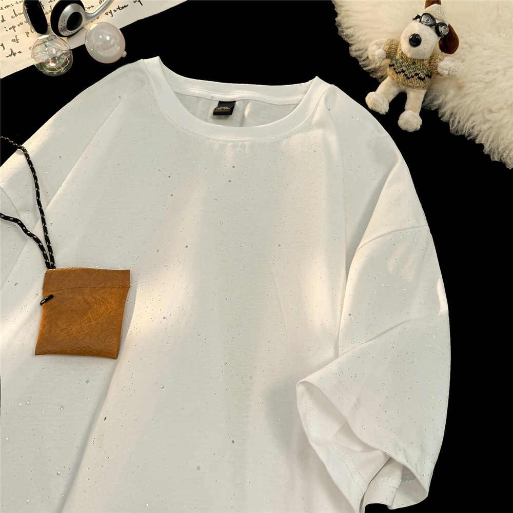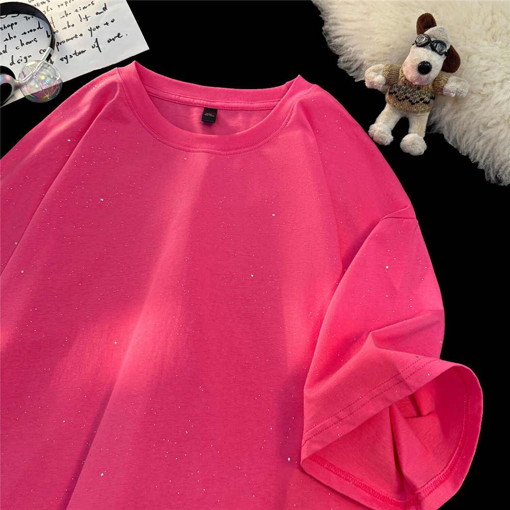【YS1704】300克重磅棉圓領燙鑽百搭時尚短袖T恤