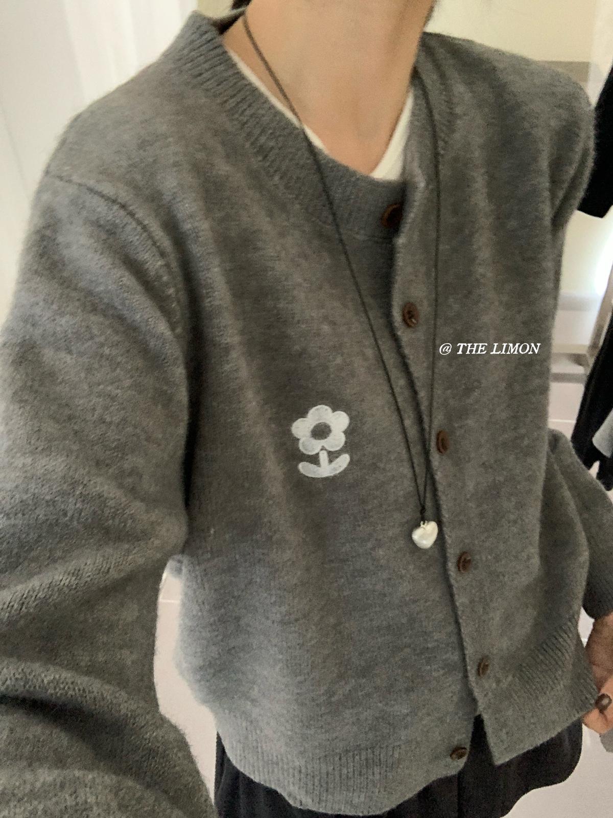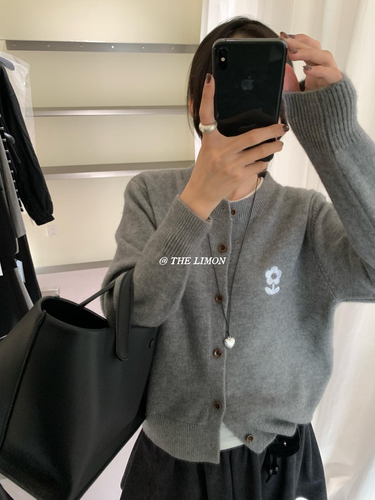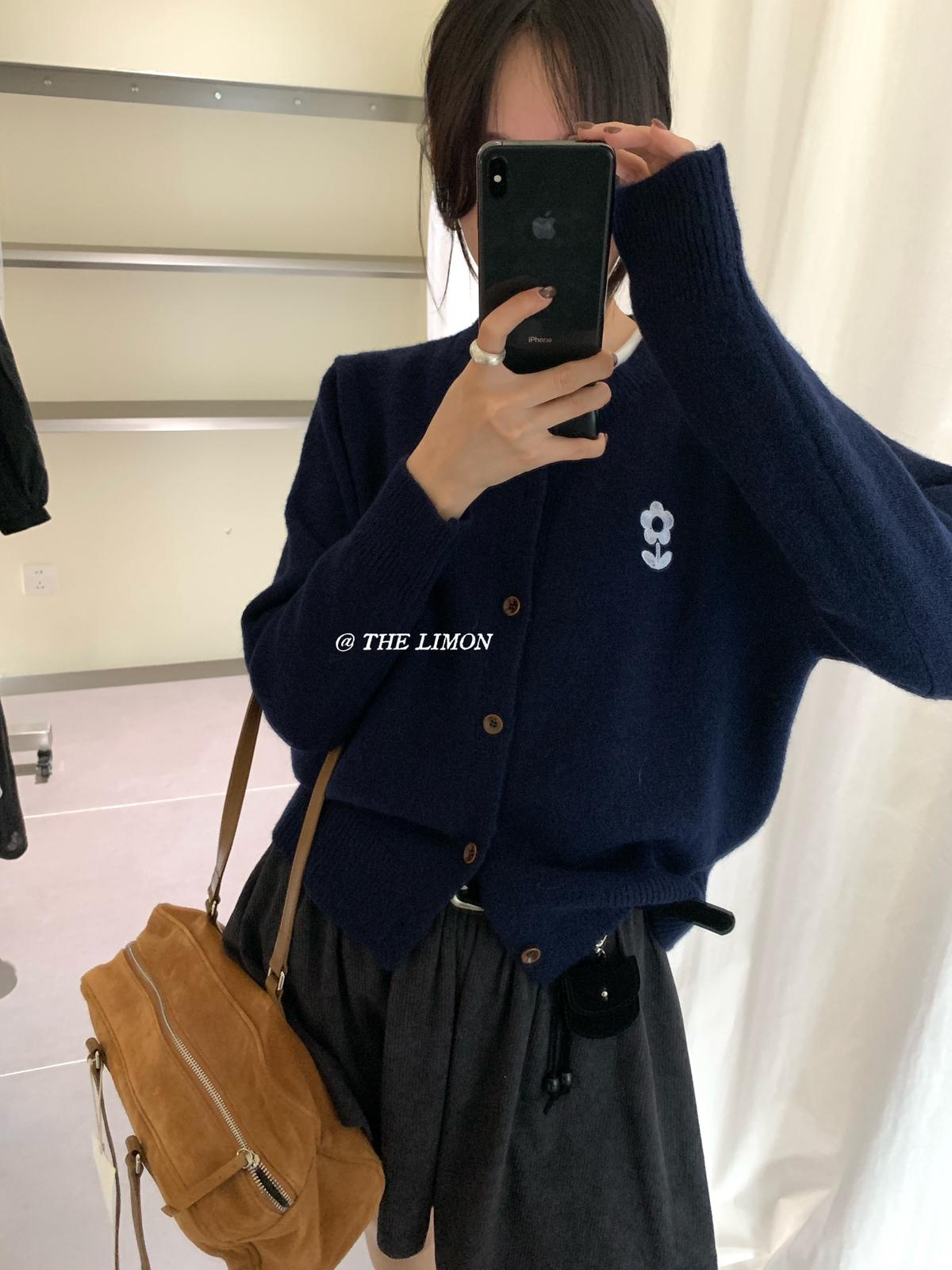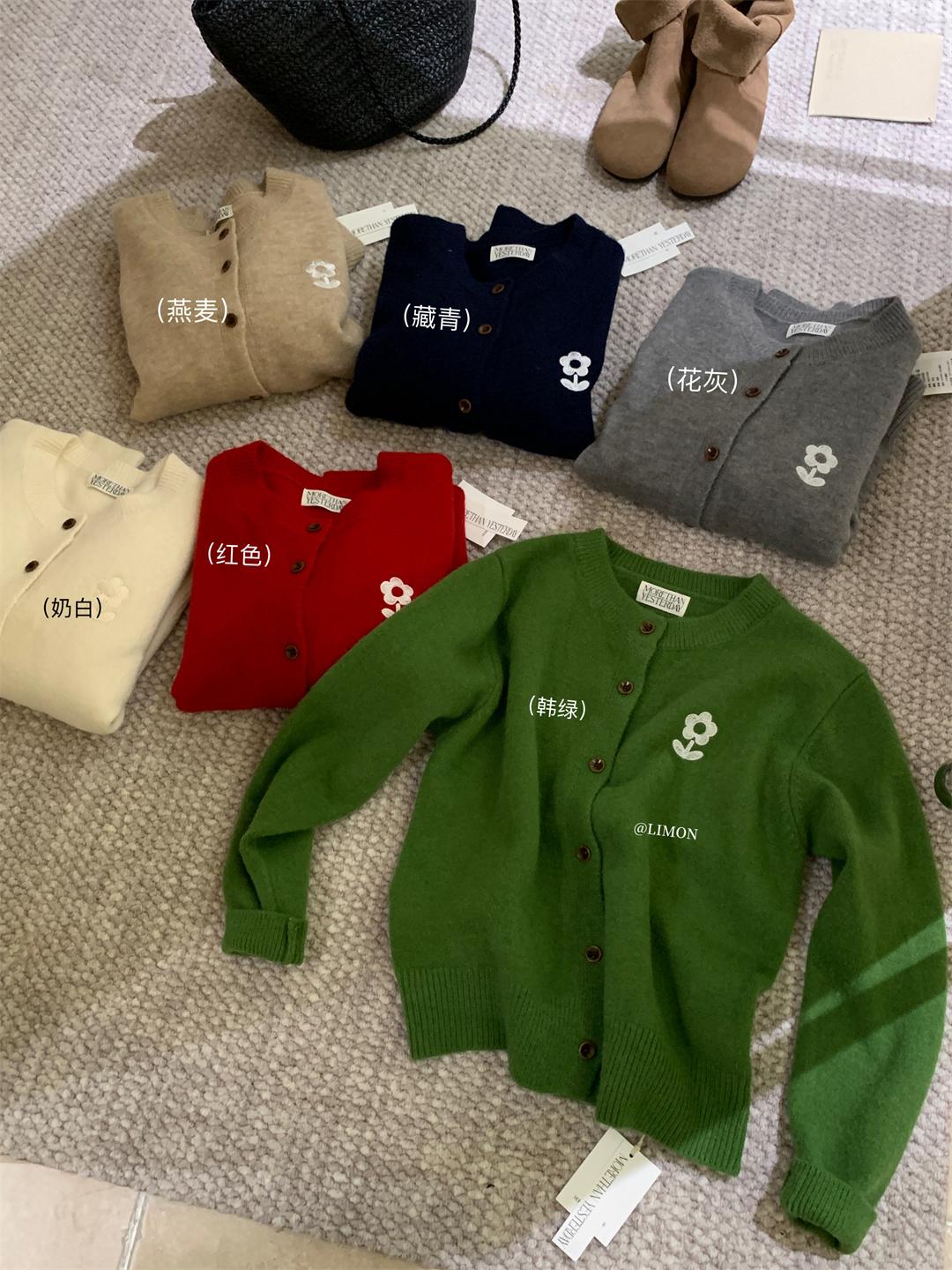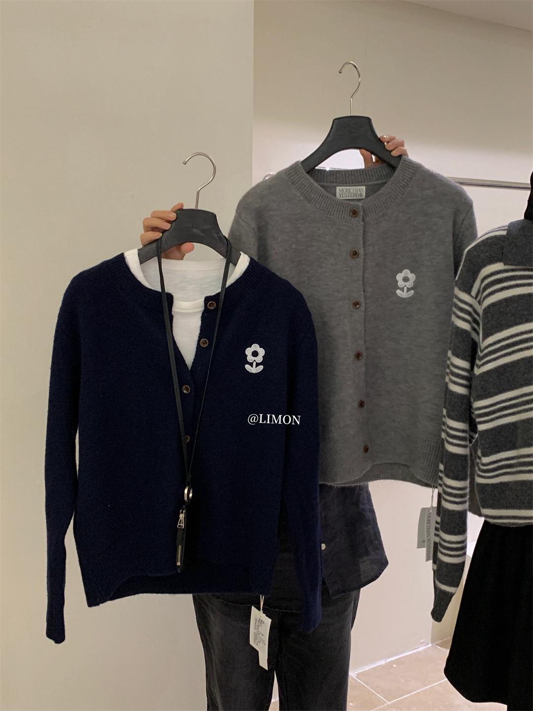 【C7143】雲牧絨工藝刺繡小花針織開衫