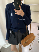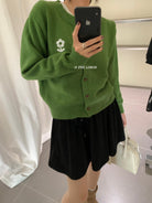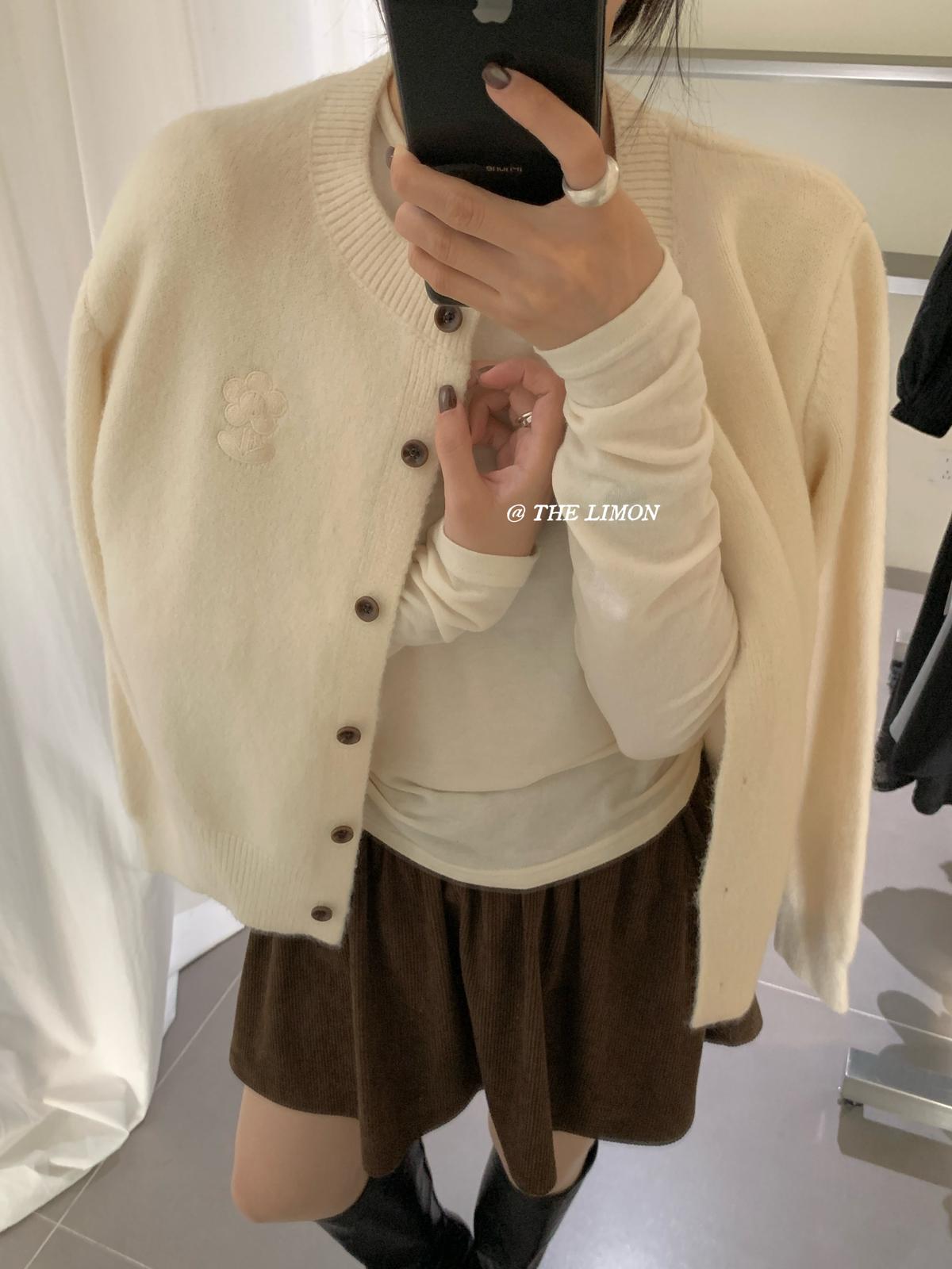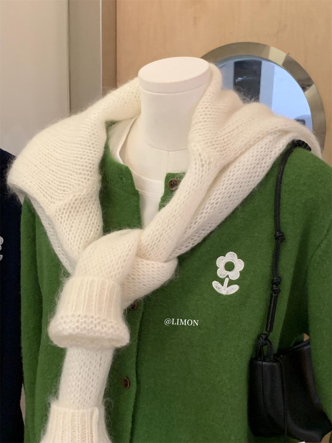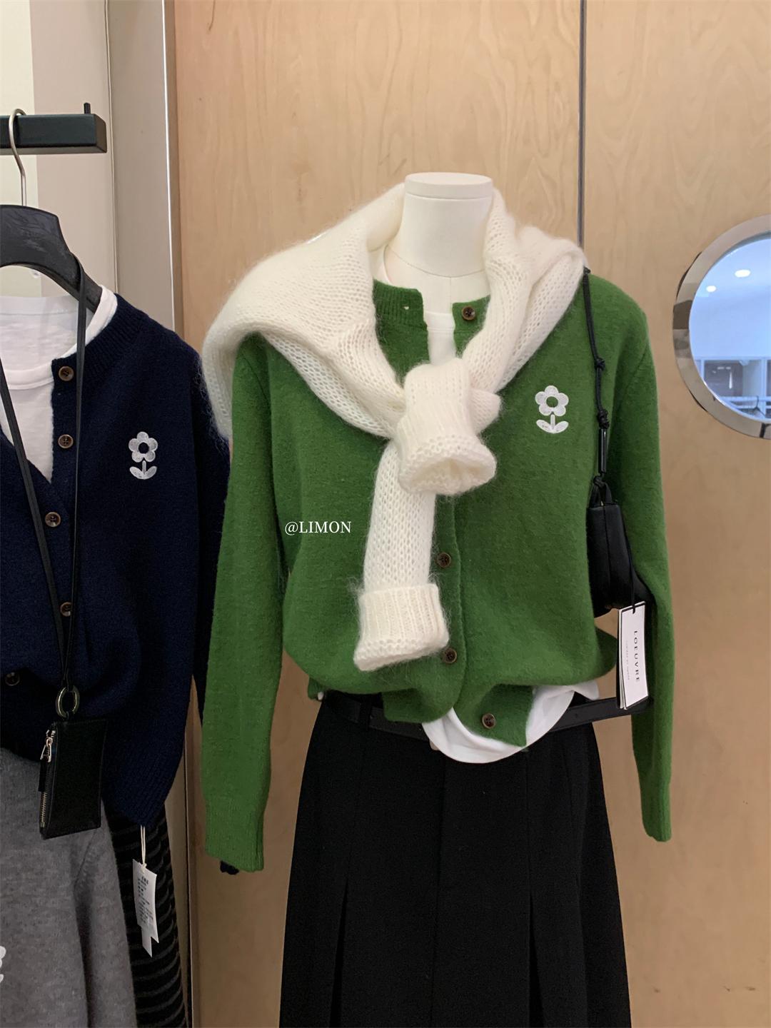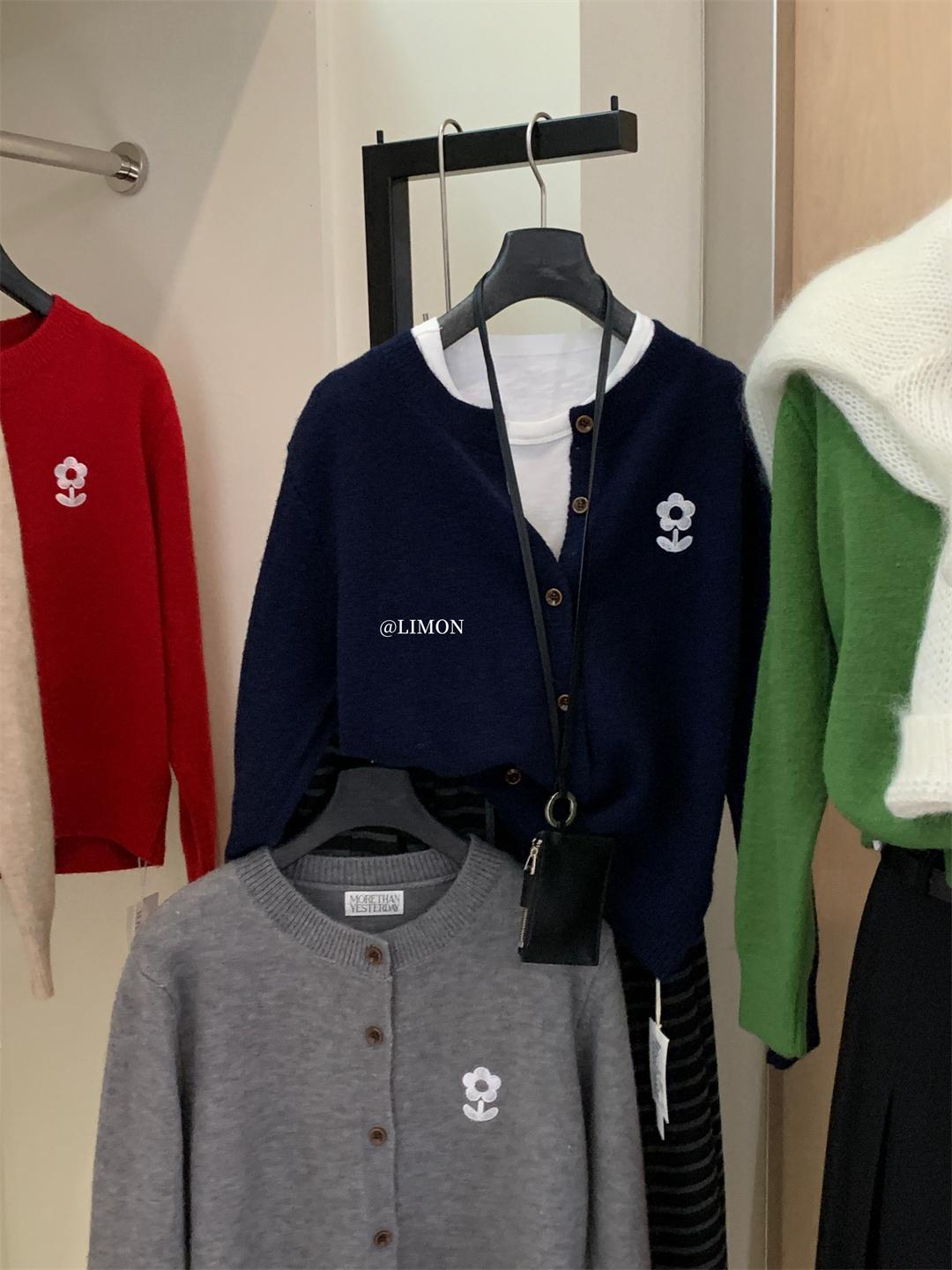 【C7143】雲牧絨工藝刺繡小花針織開衫
