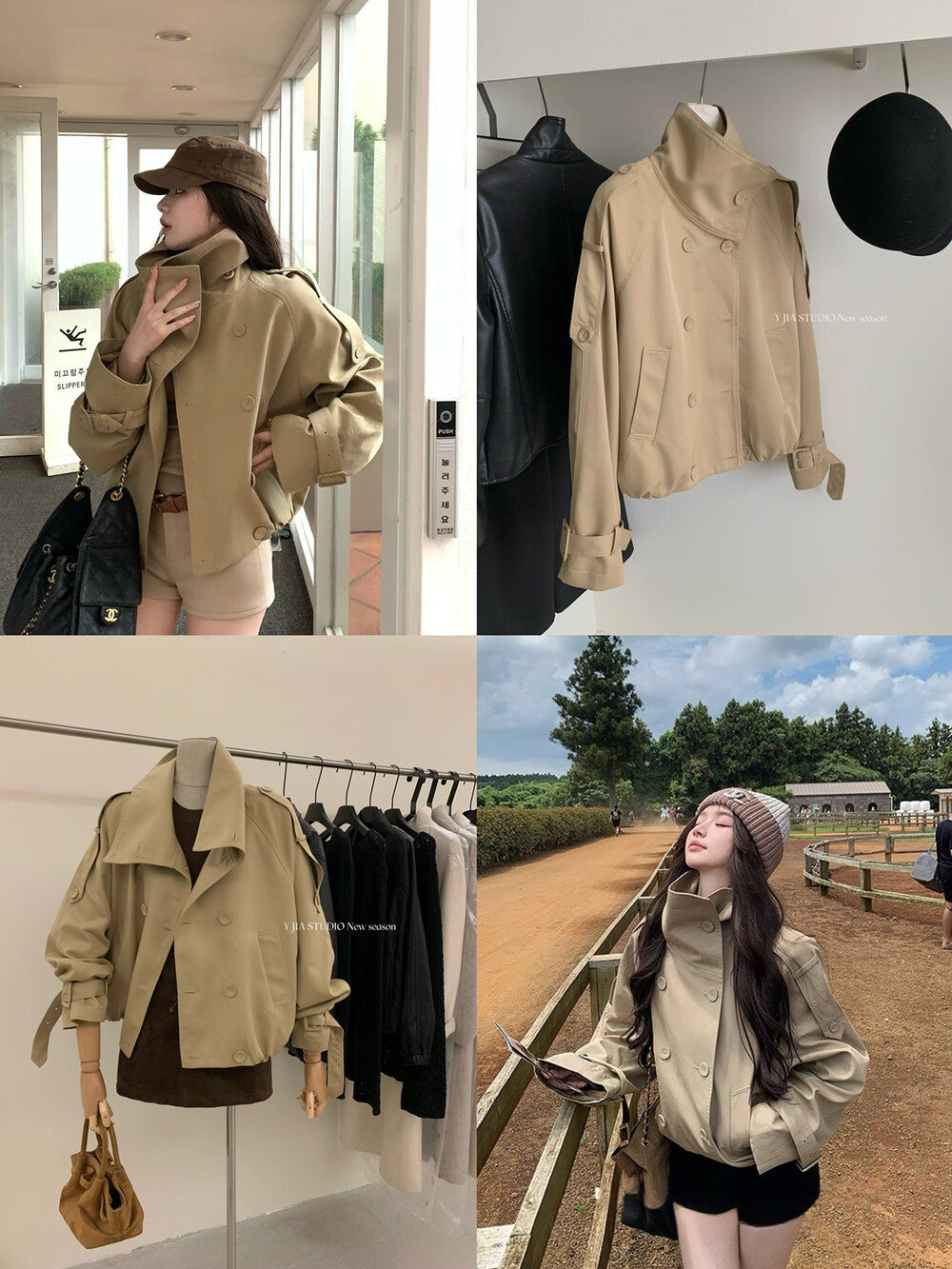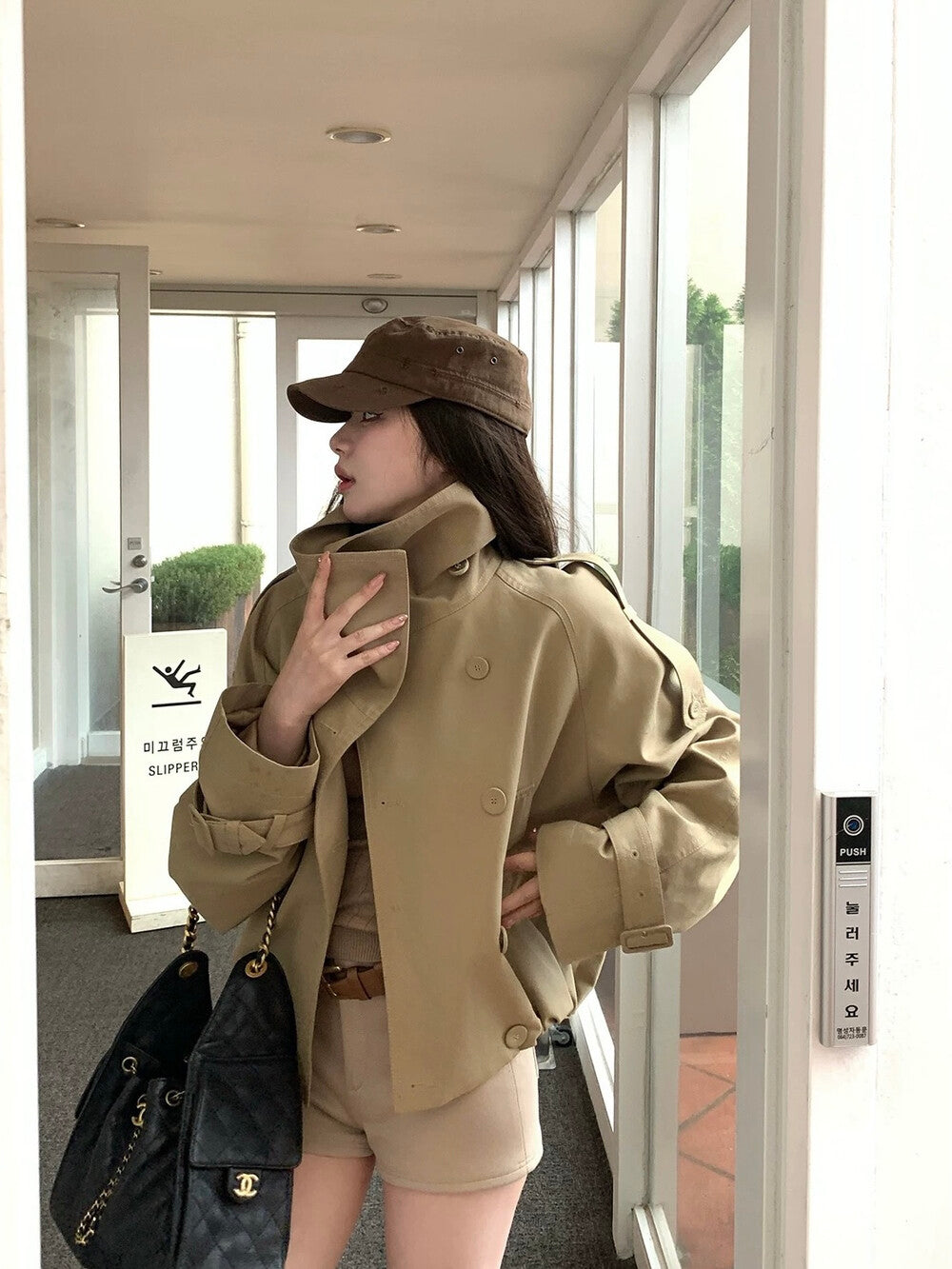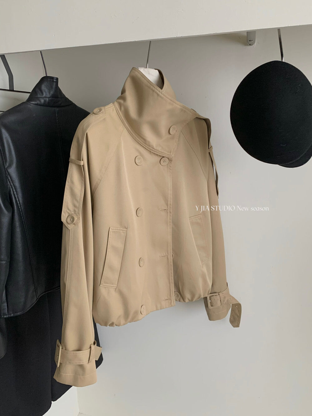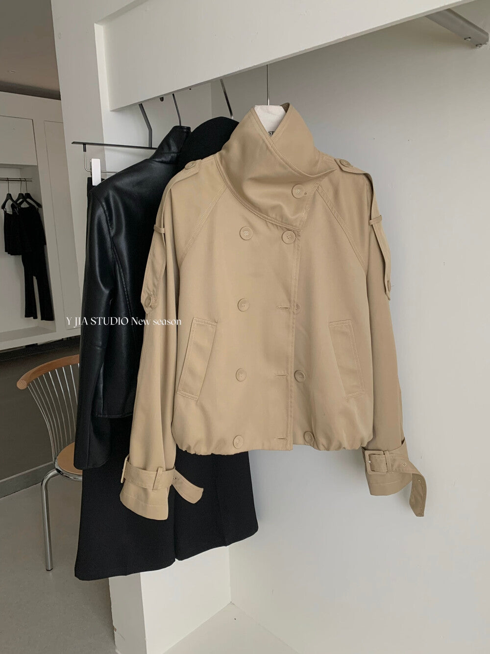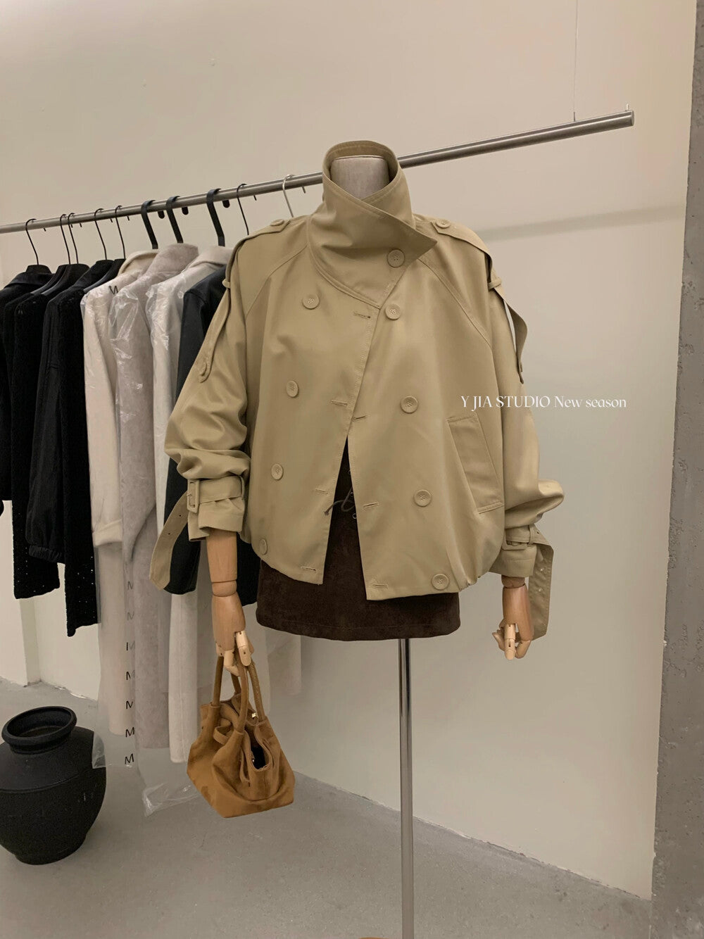 【C7224】倫敦故事雙排扣立領寬鬆百搭風衣短外套