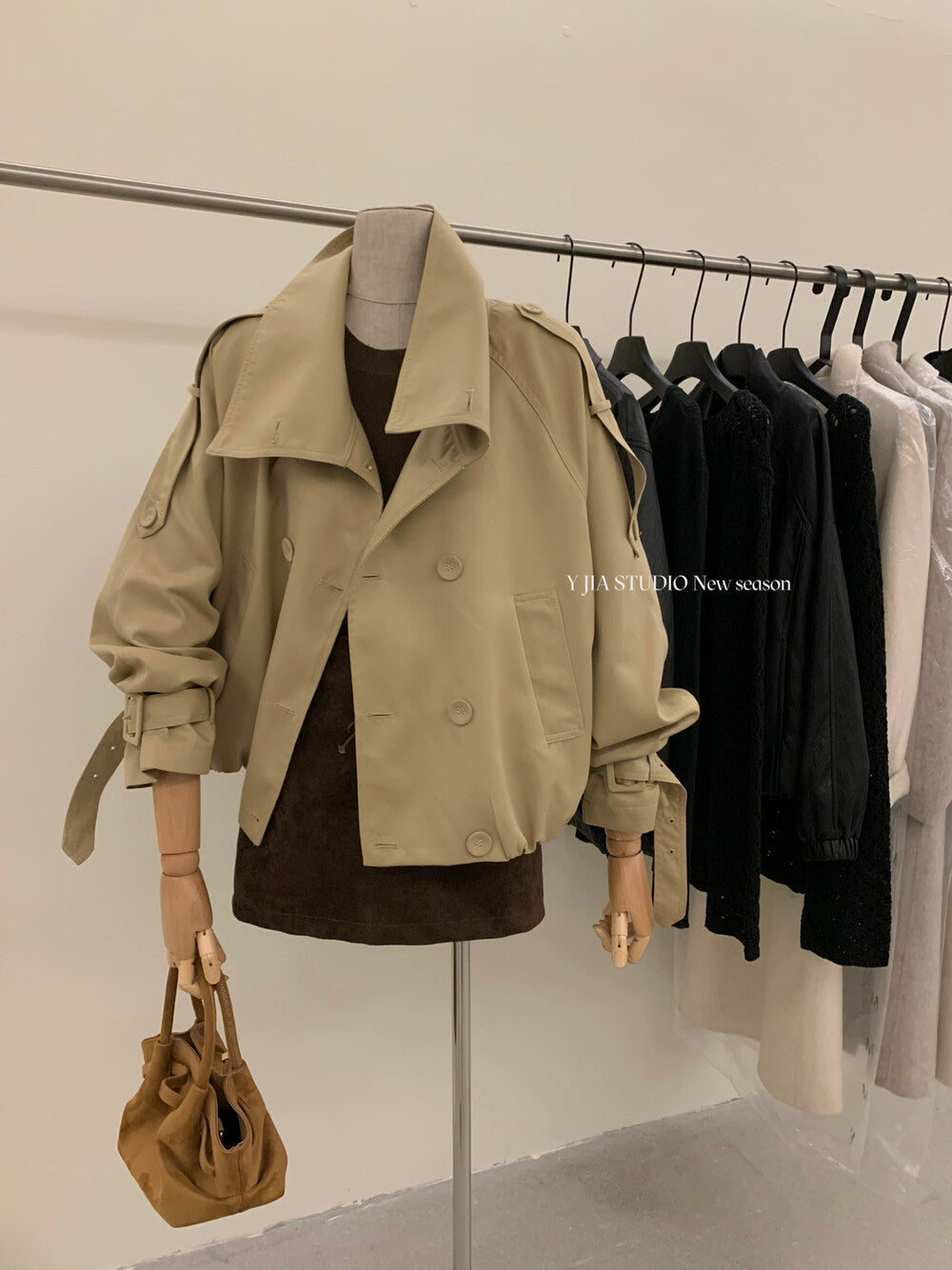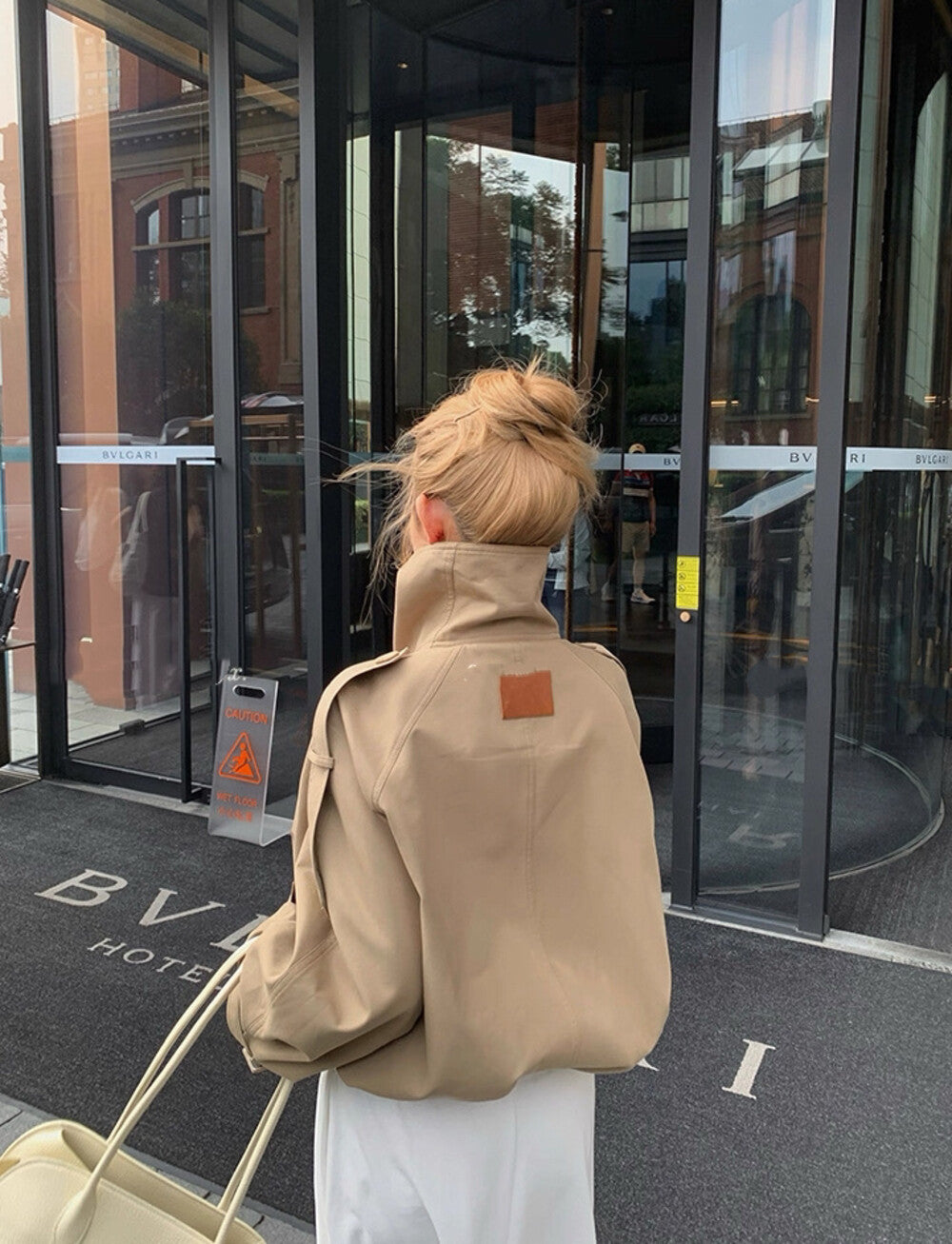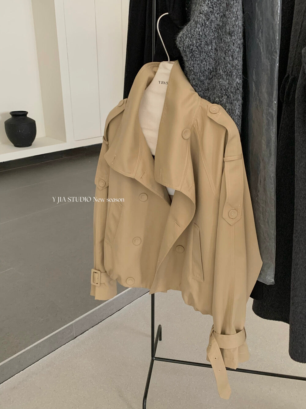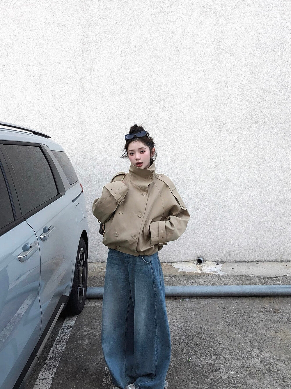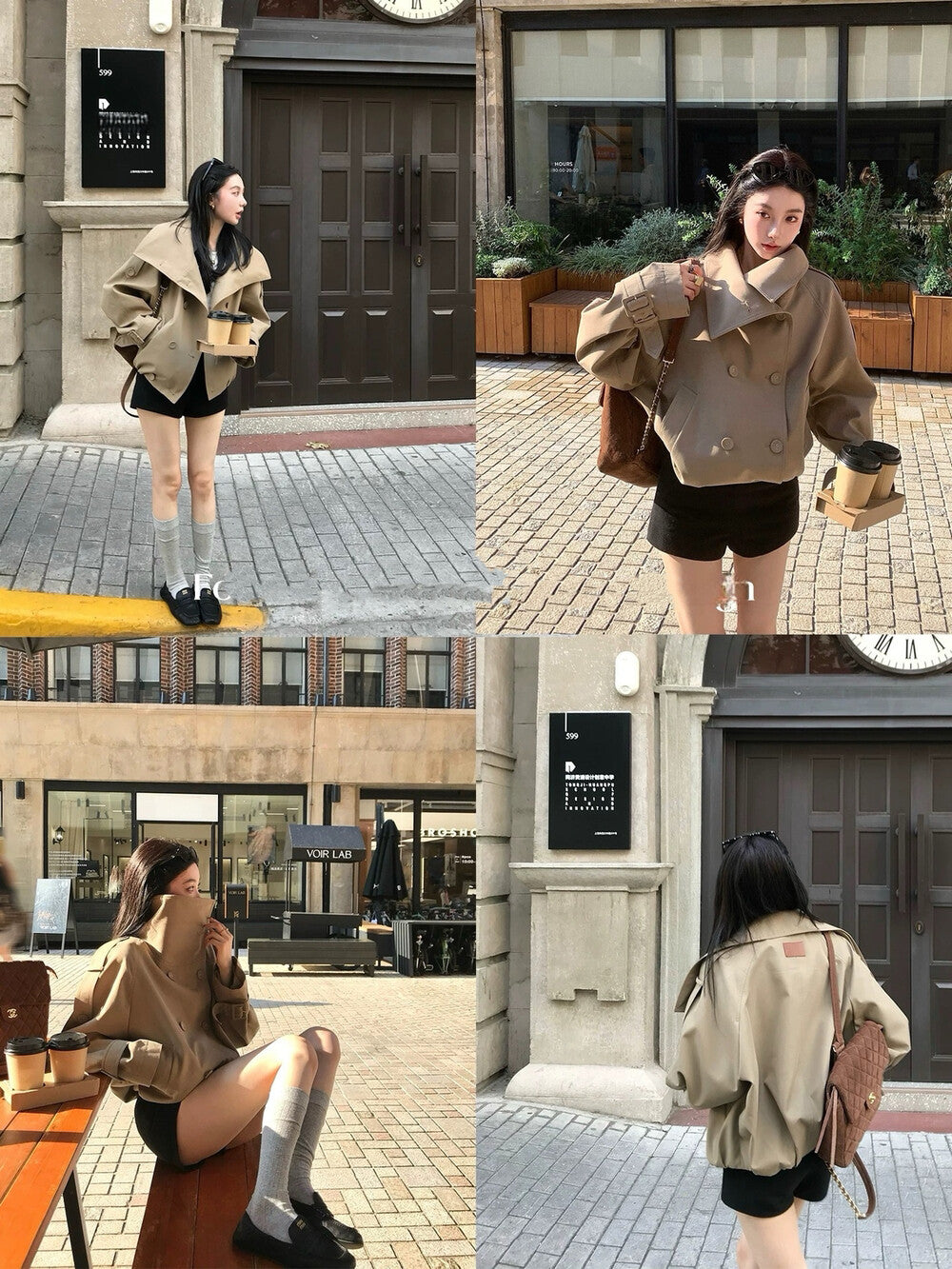 【C7224】倫敦故事雙排扣立領寬鬆百搭風衣短外套