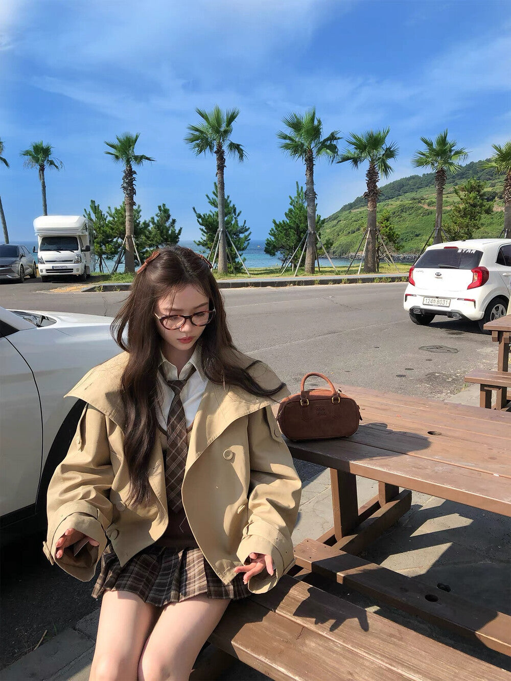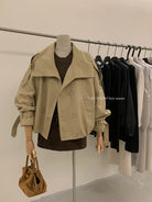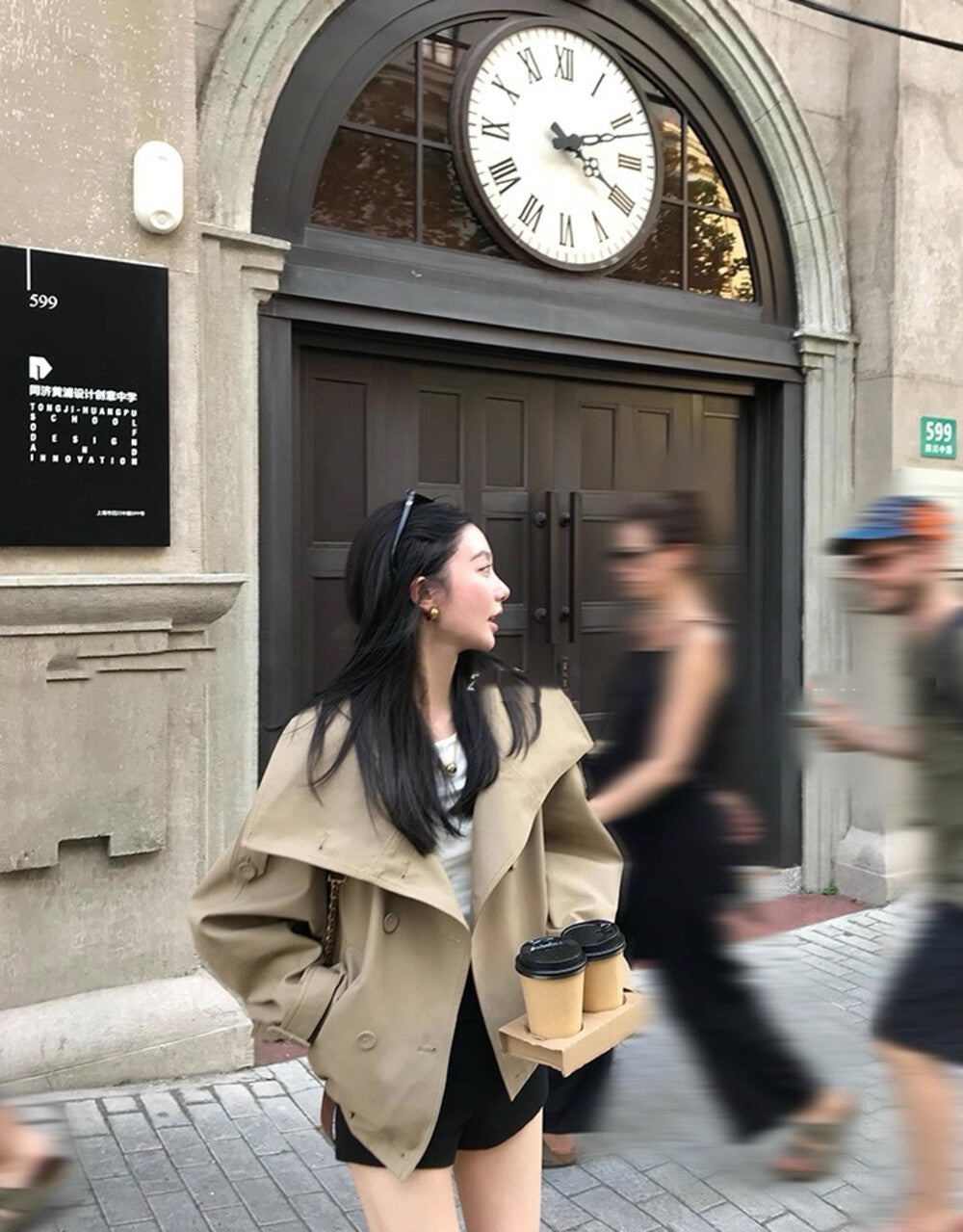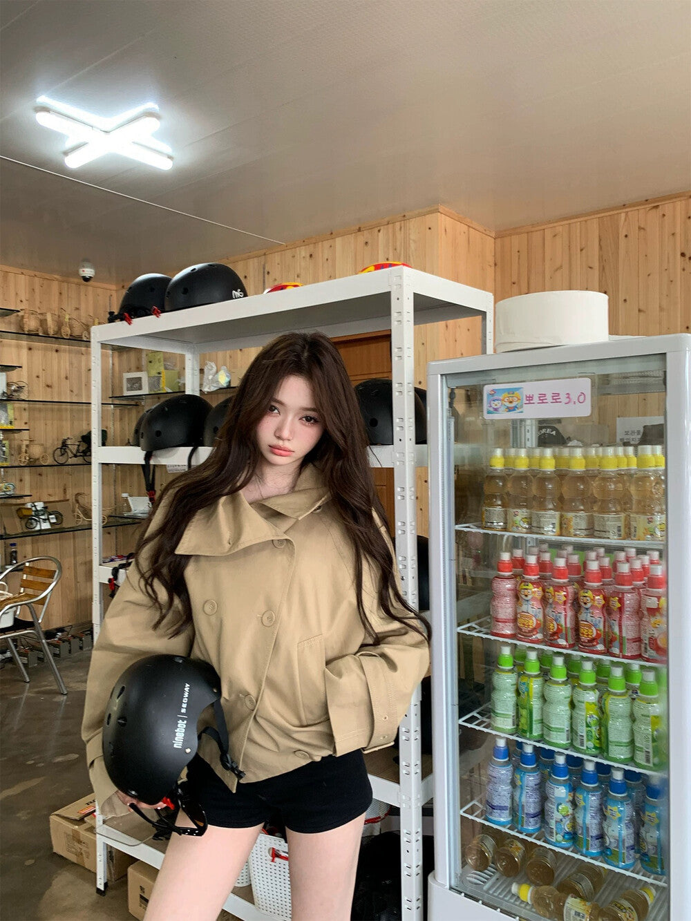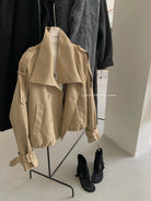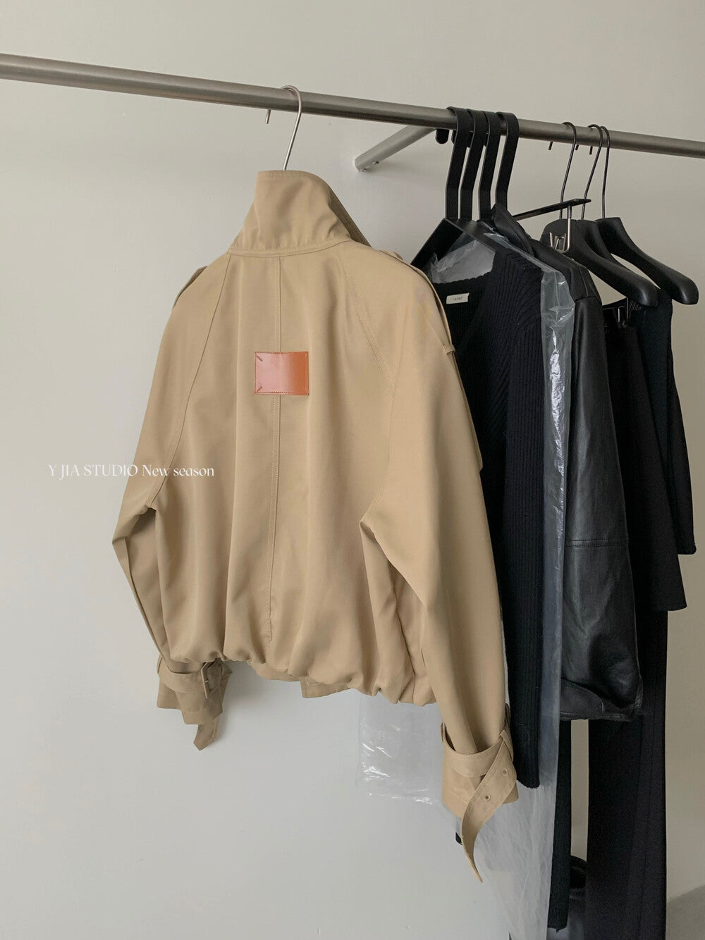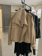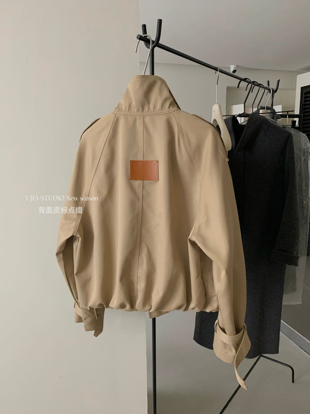 【C7224】倫敦故事雙排扣立領寬鬆百搭風衣短外套