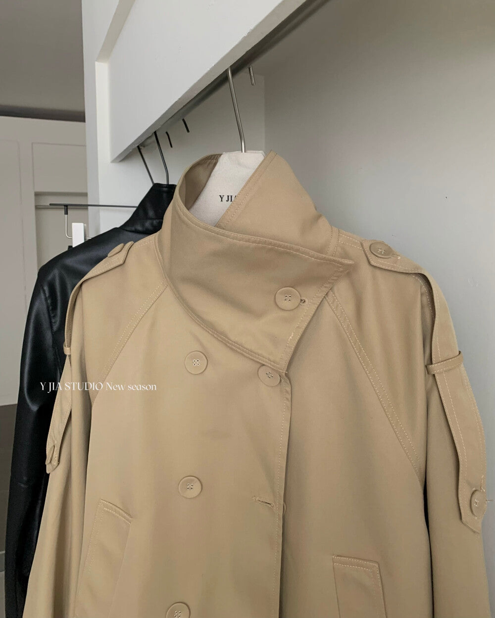 3. 【C7224】倫敦故事雙排扣立領寬鬆百搭風衣短外套