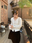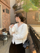 【C7295】40%兔毛蝴蝶結金扣開衫保暖毛衣