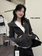 【C7314】軟彈加薄絨磨毛連帽短外套