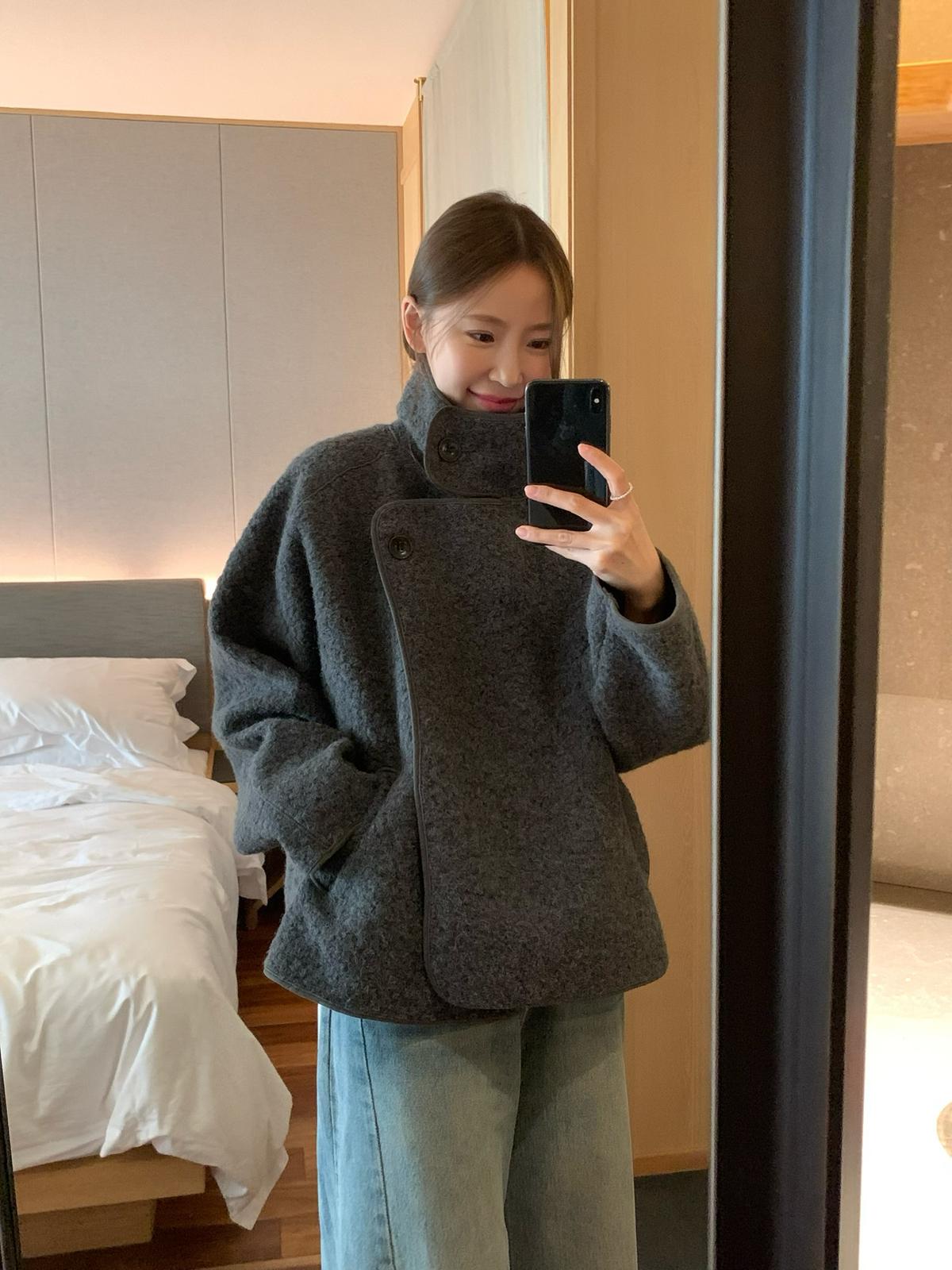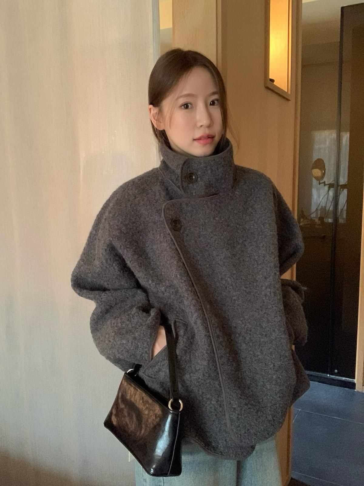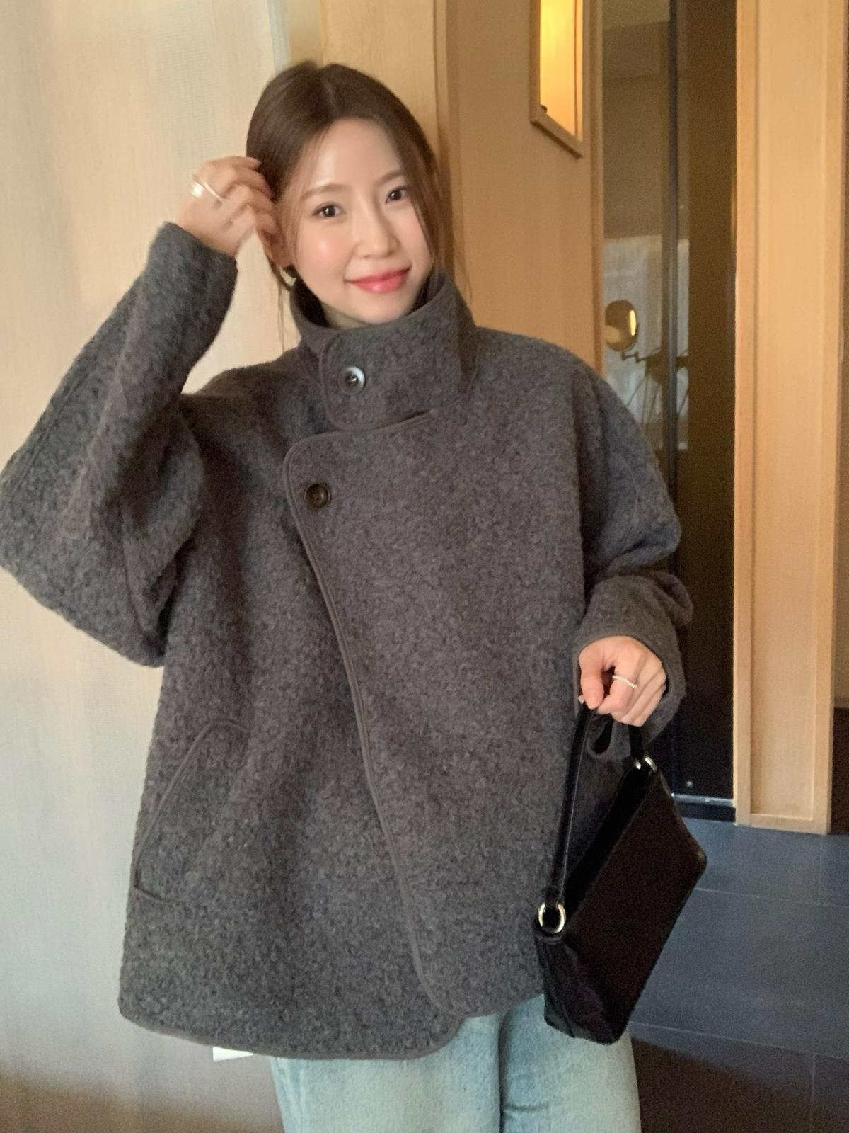 【C7432】高智博主風溫暖圈圈絨一粒扣立領廓形大衣