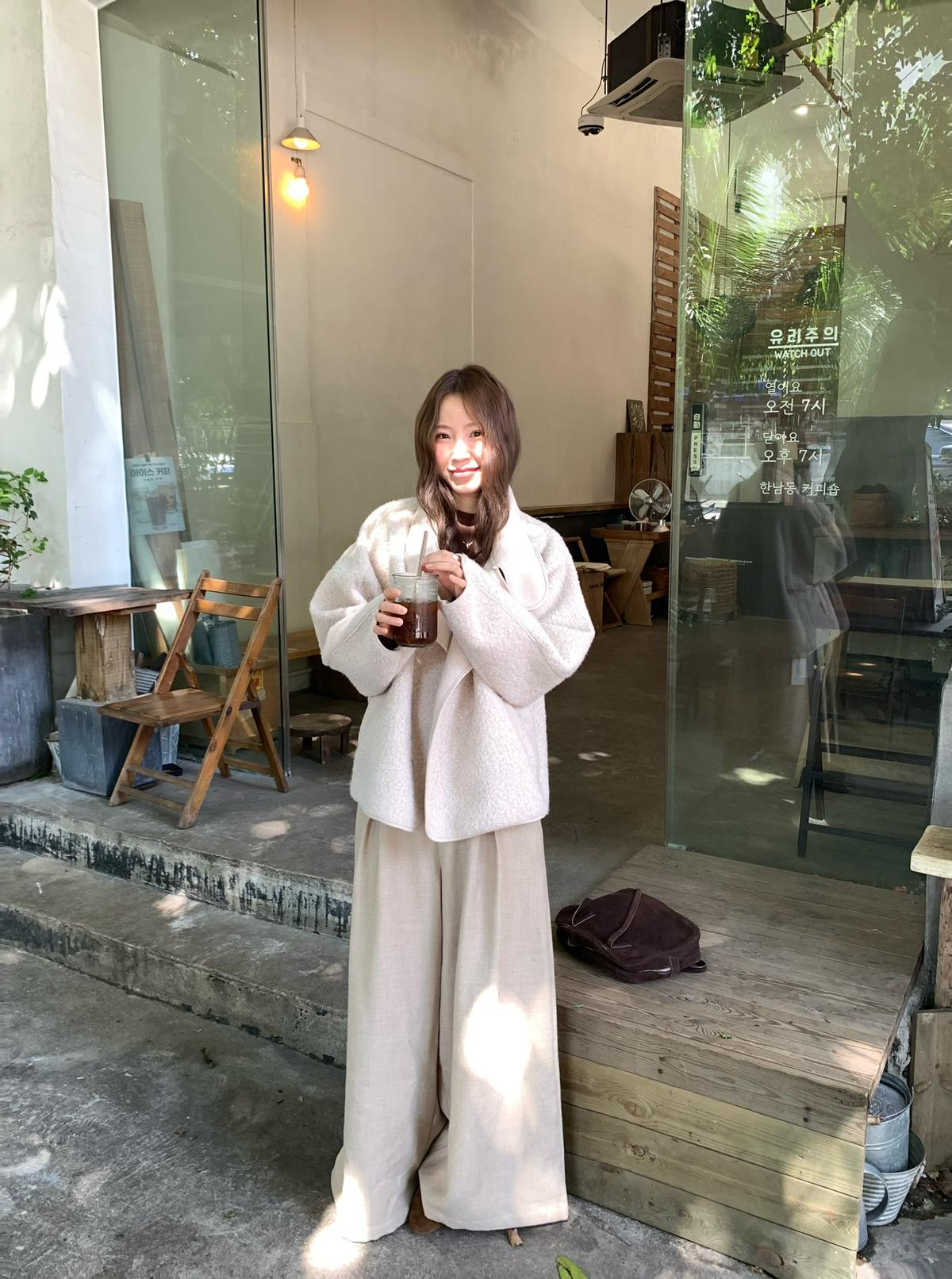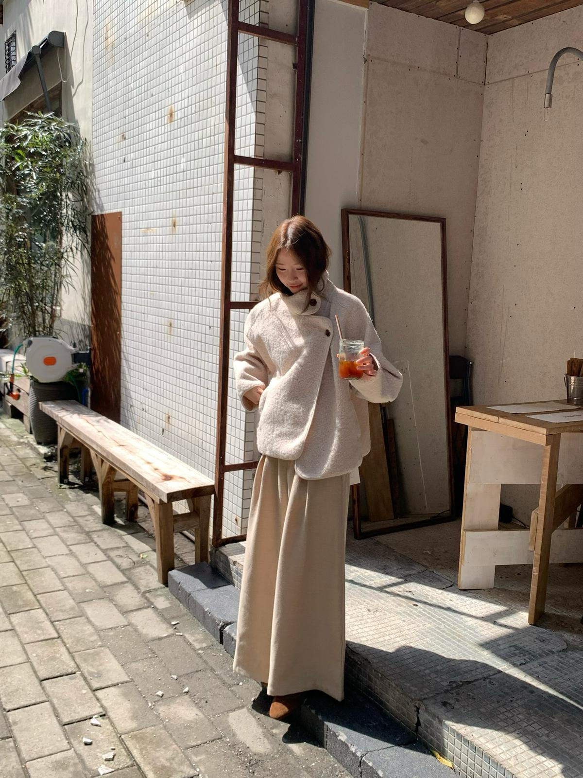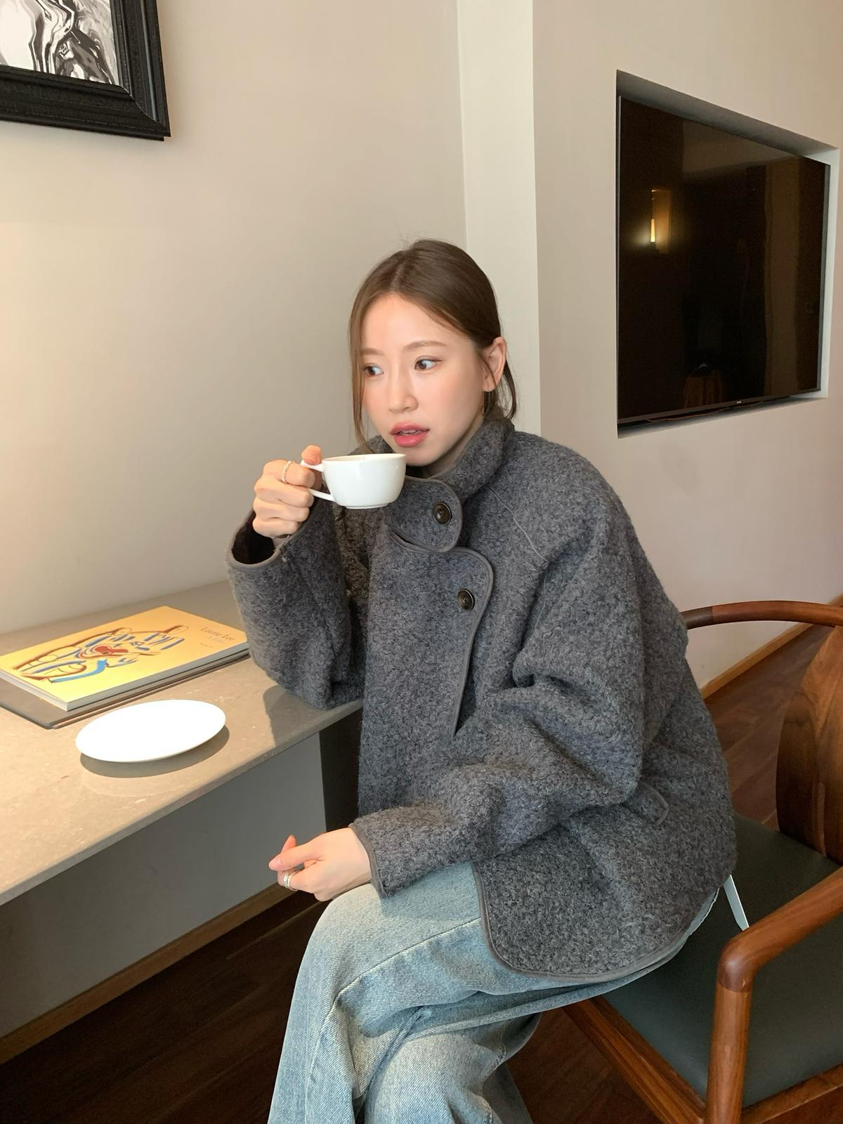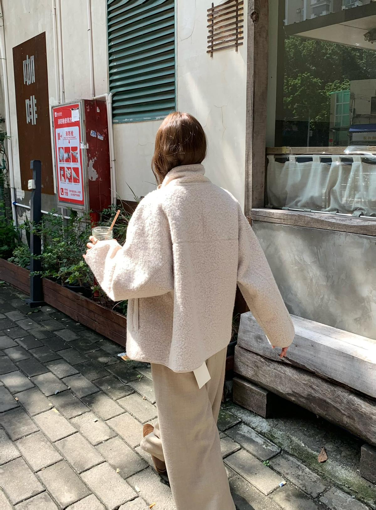 3. 【C7432】高智博主風溫暖圈圈絨一粒扣立領廓形大衣