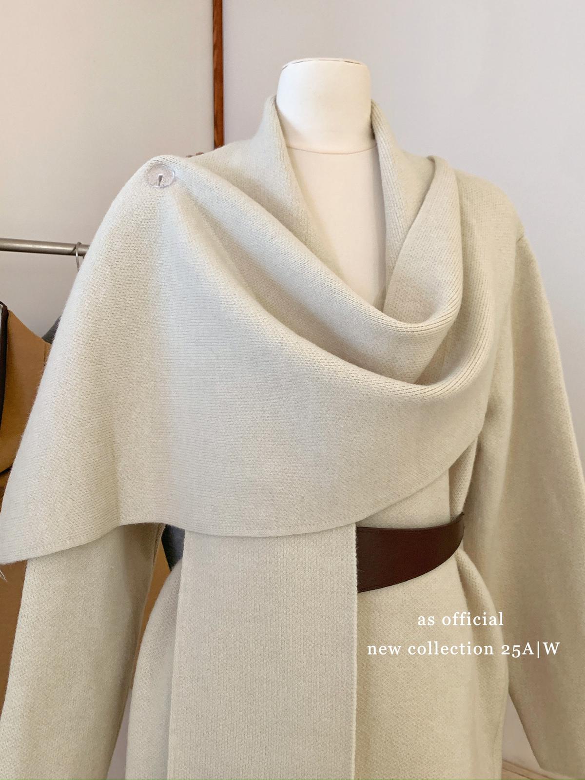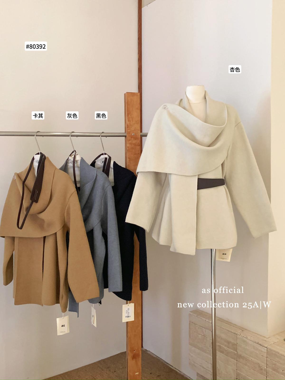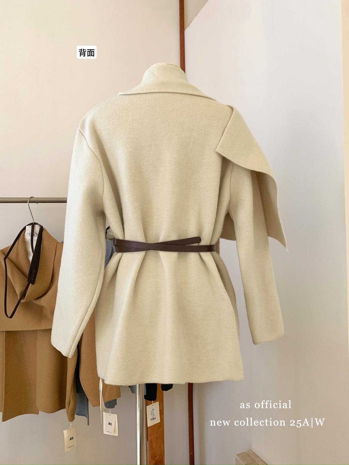 【C7617】經濟上行的美 深秋至簡輕奢感” 腰帶款披肩圍巾領開衫短外套(配腰帶)(回頭率%)