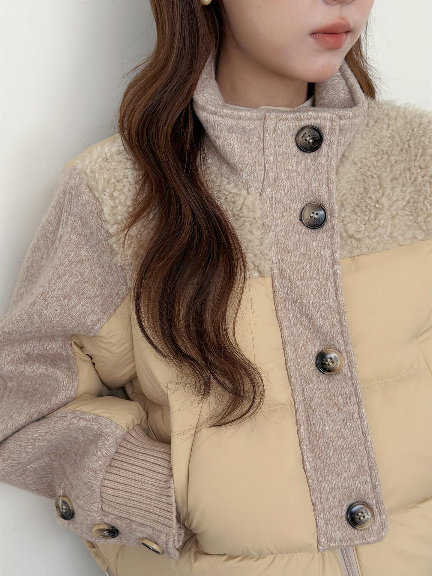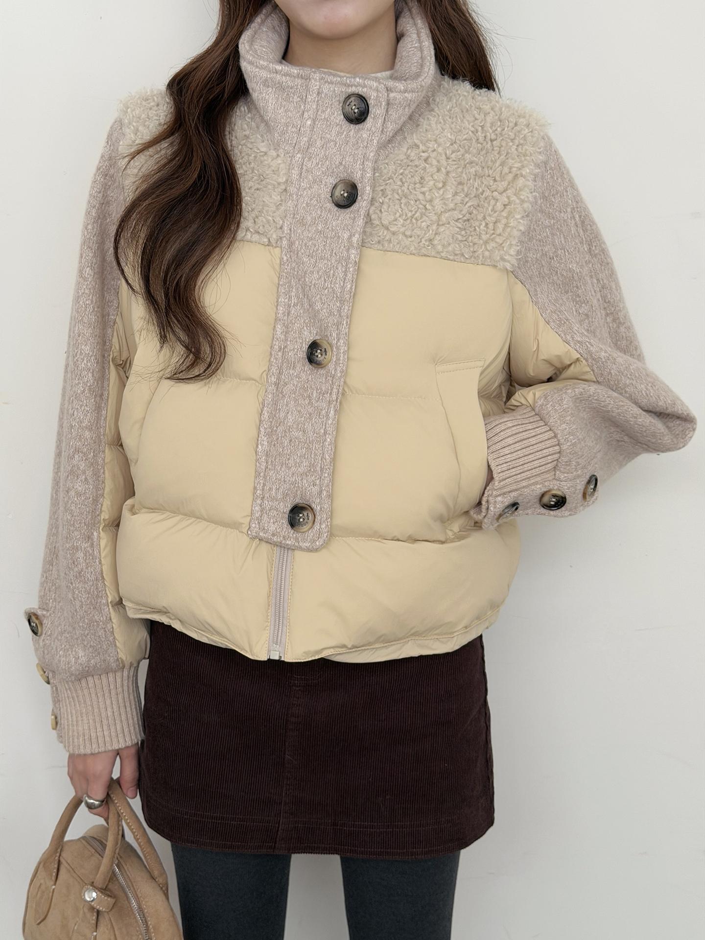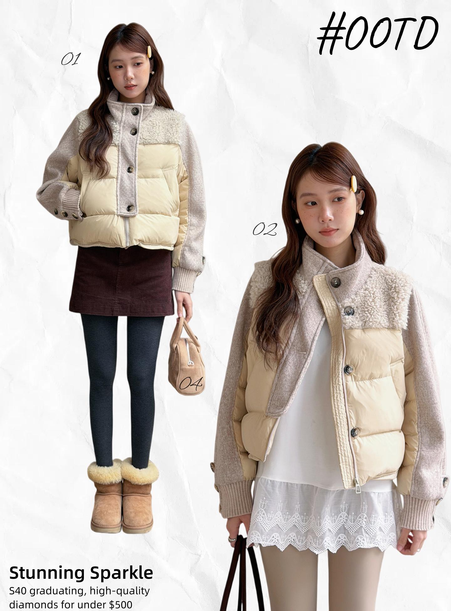 3. 【C8216】復古毛呢拼接立領外套設計感保暖羽絨服外套