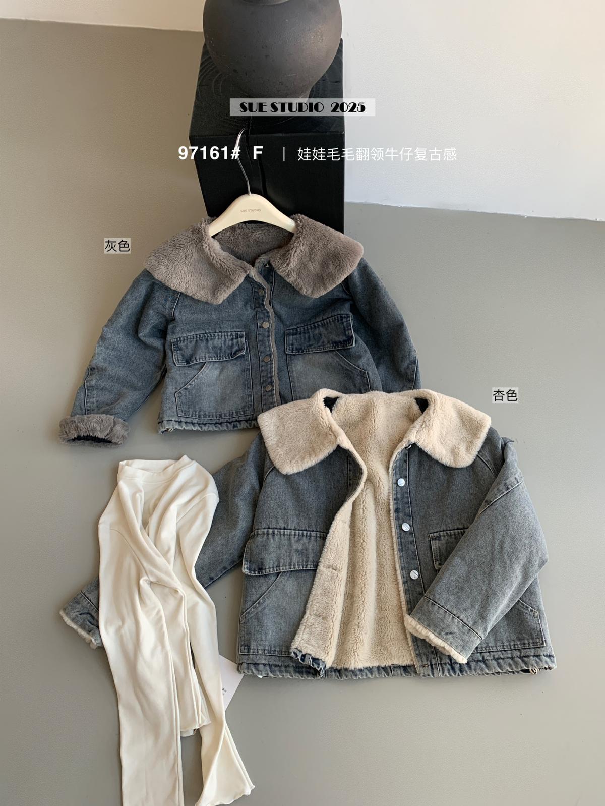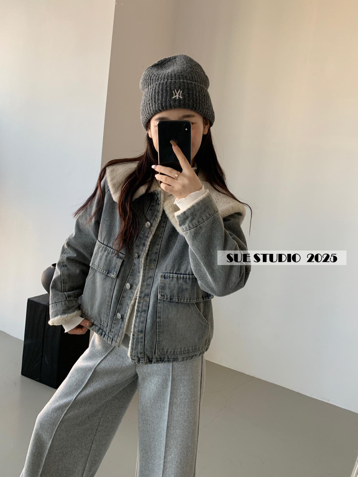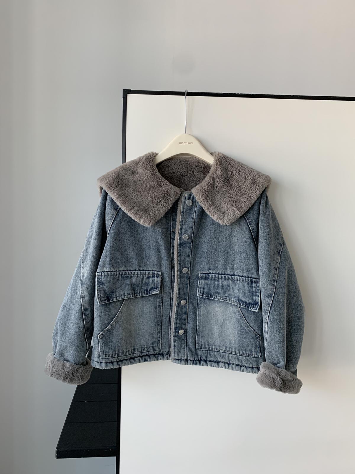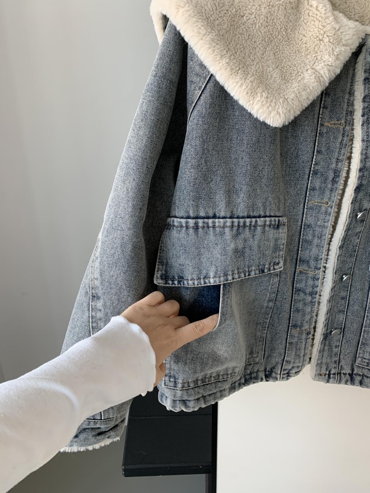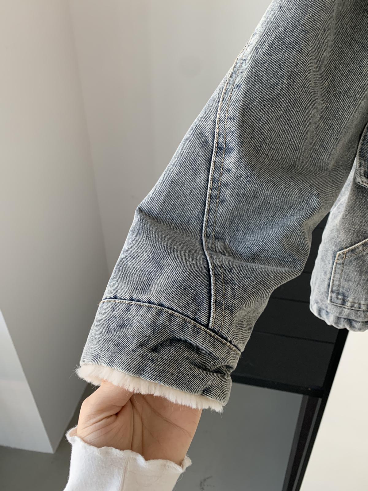 3. 【C8307】韓系翻領水洗做舊毛毛絨裏牛仔外套