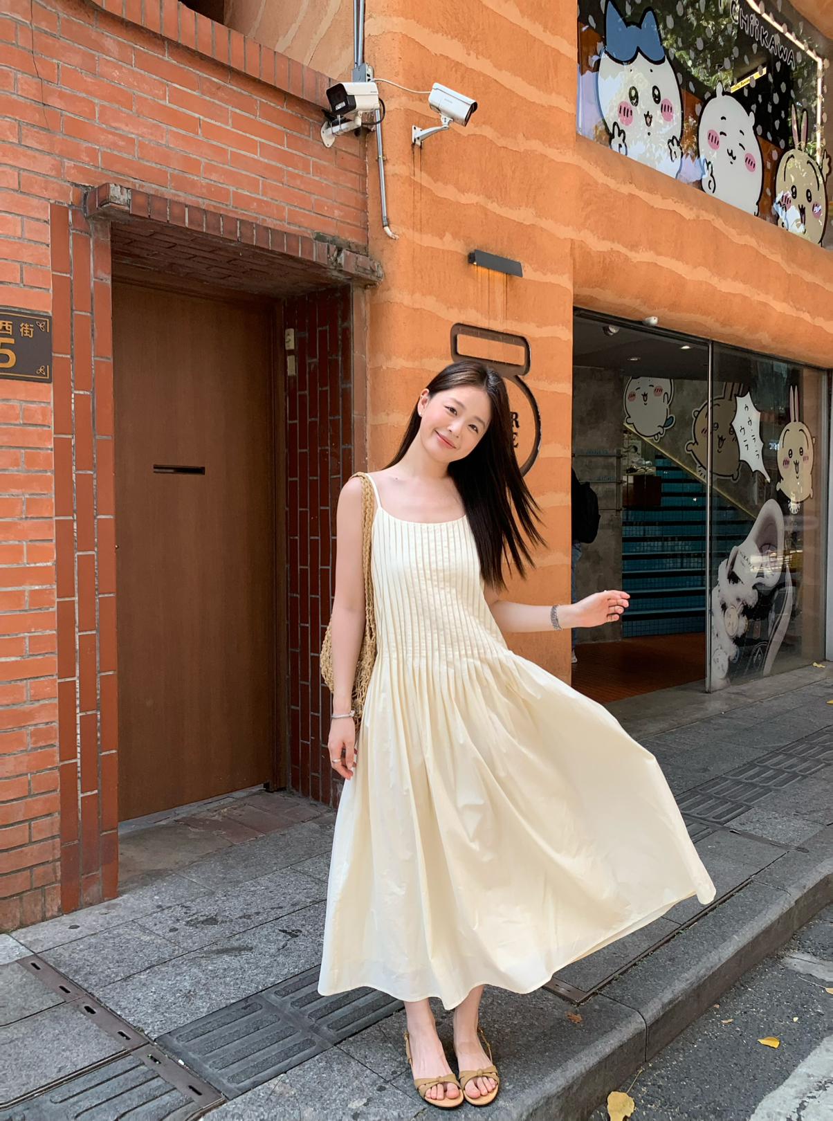 【C8984】韓系立體褶襉無袖A字吊帶連衣裙(只賣連衣裙)