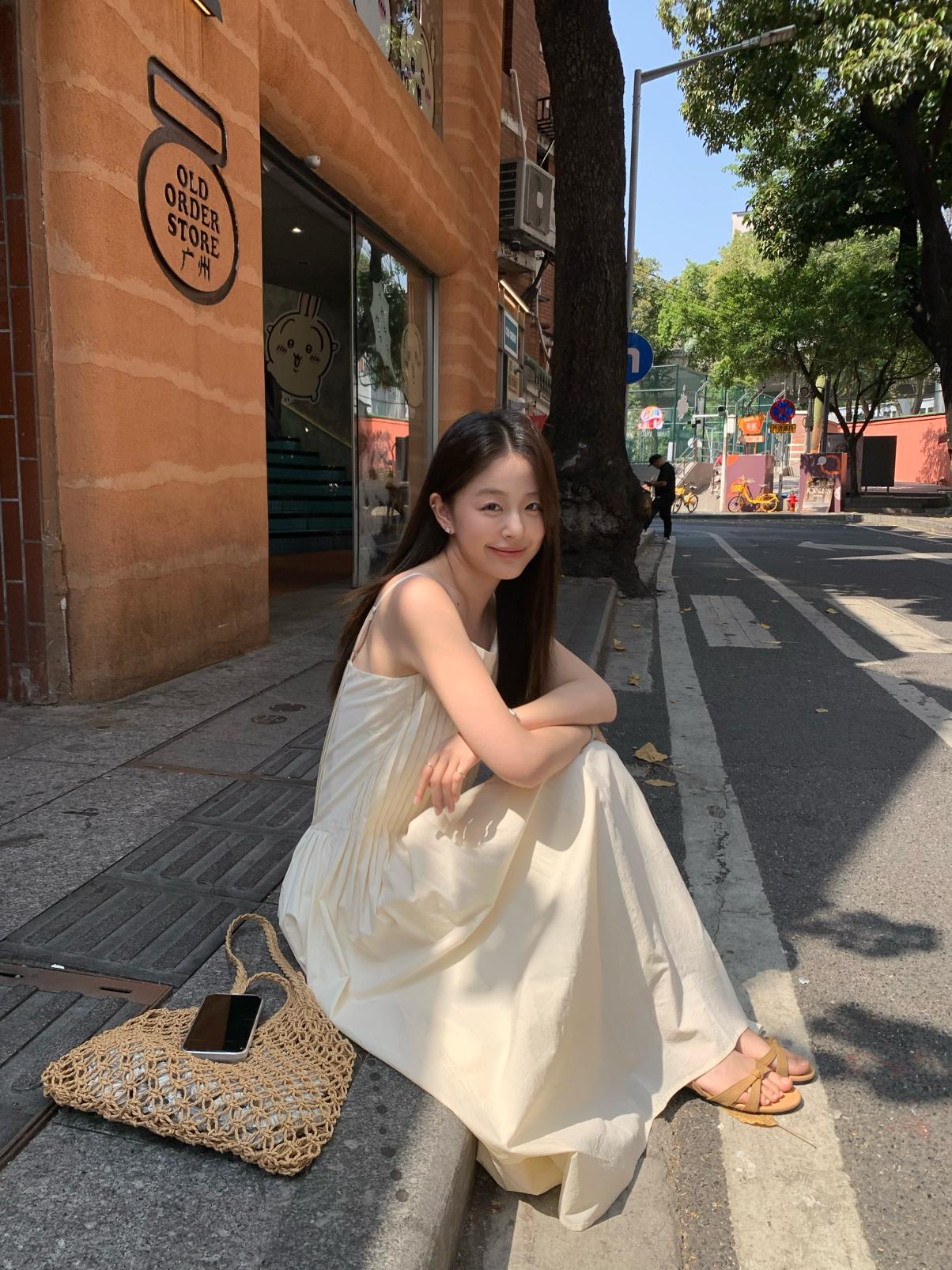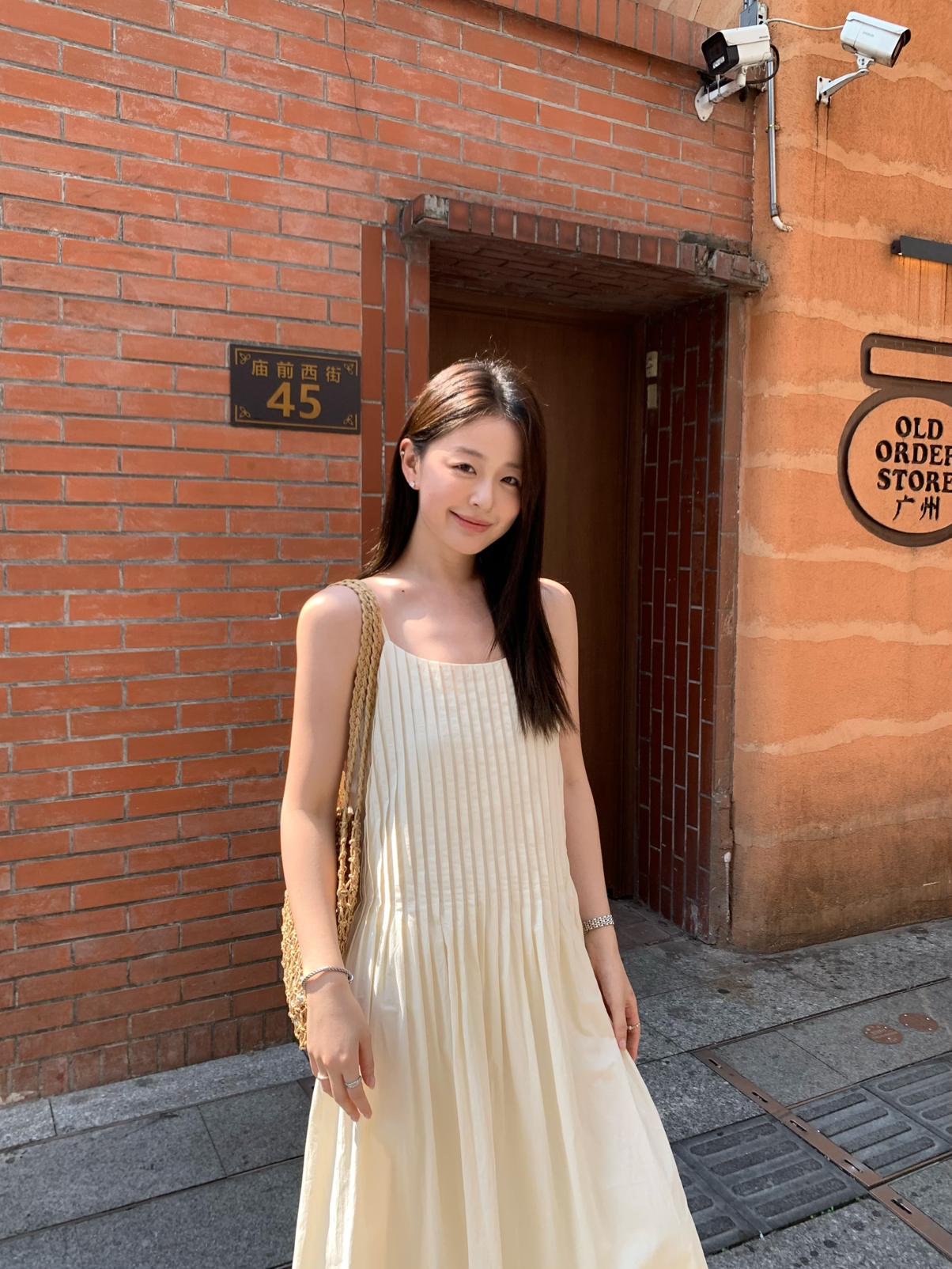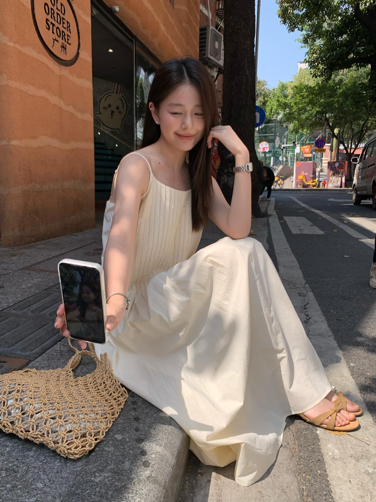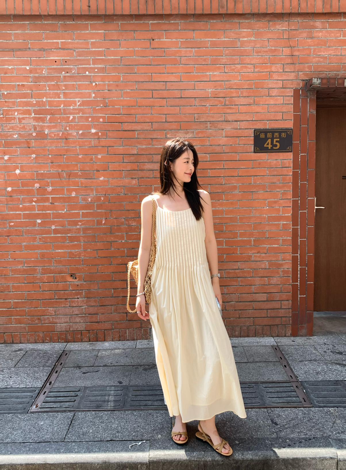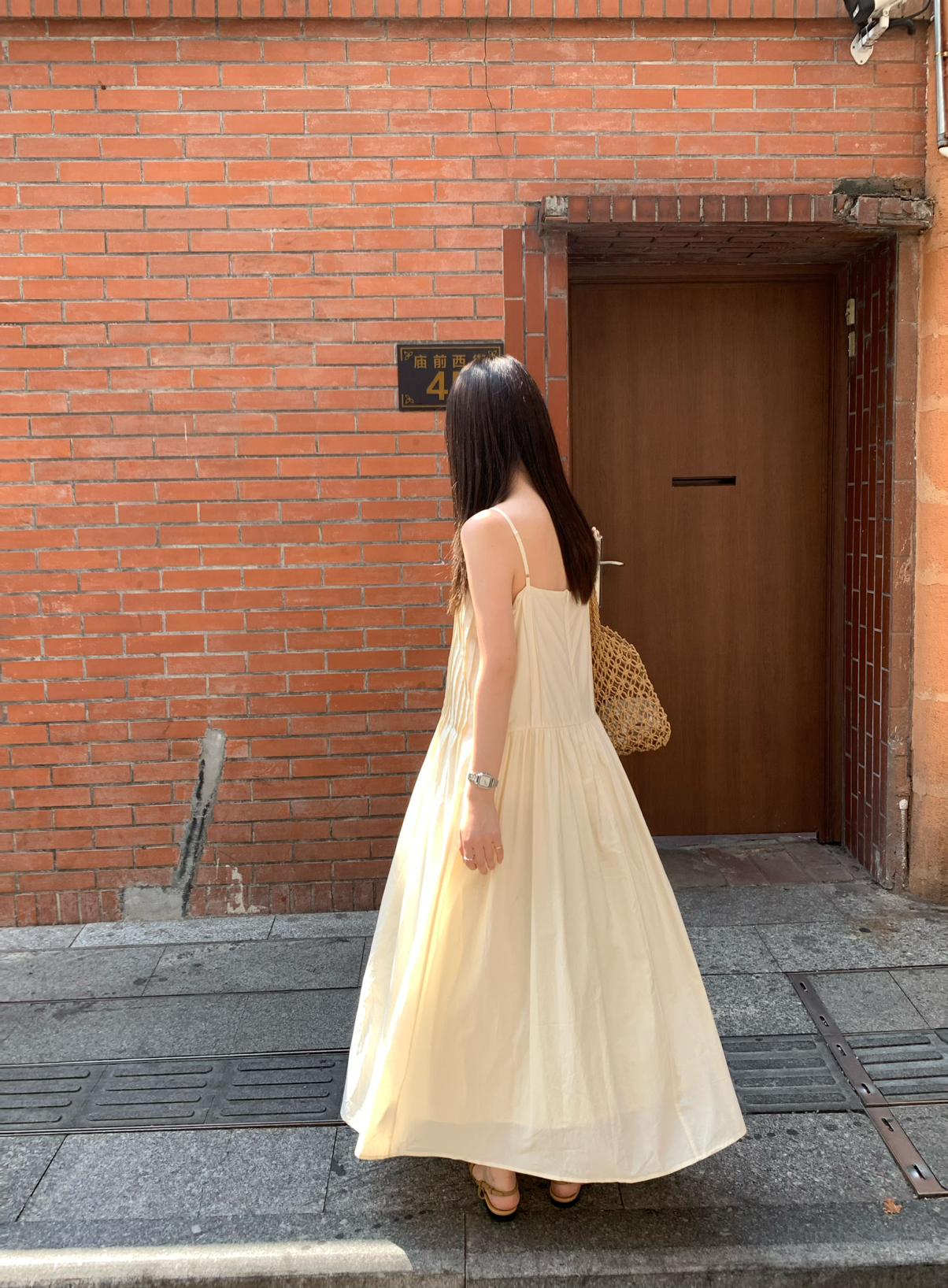 【C8821】目之所及的驚豔韓系春日度假風少女感飄逸簡約氣質優雅吊帶連衣裙(只賣連衣裙)