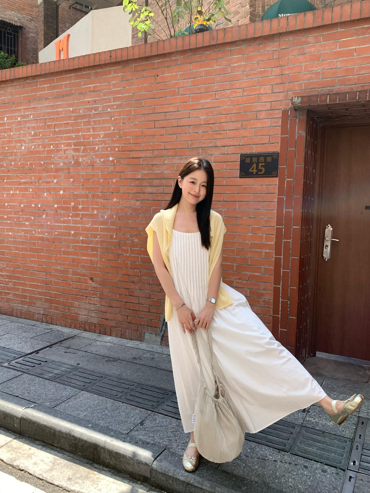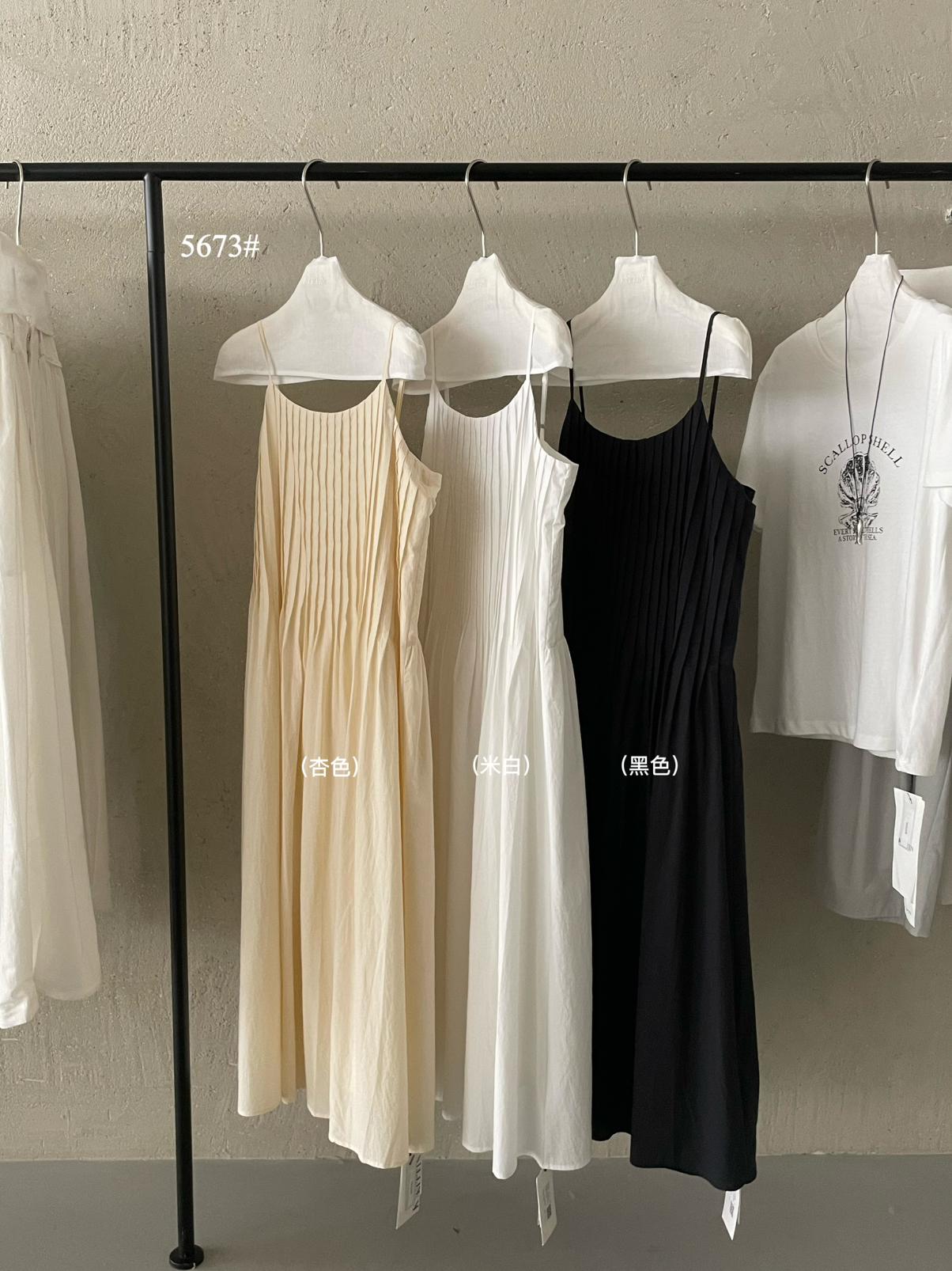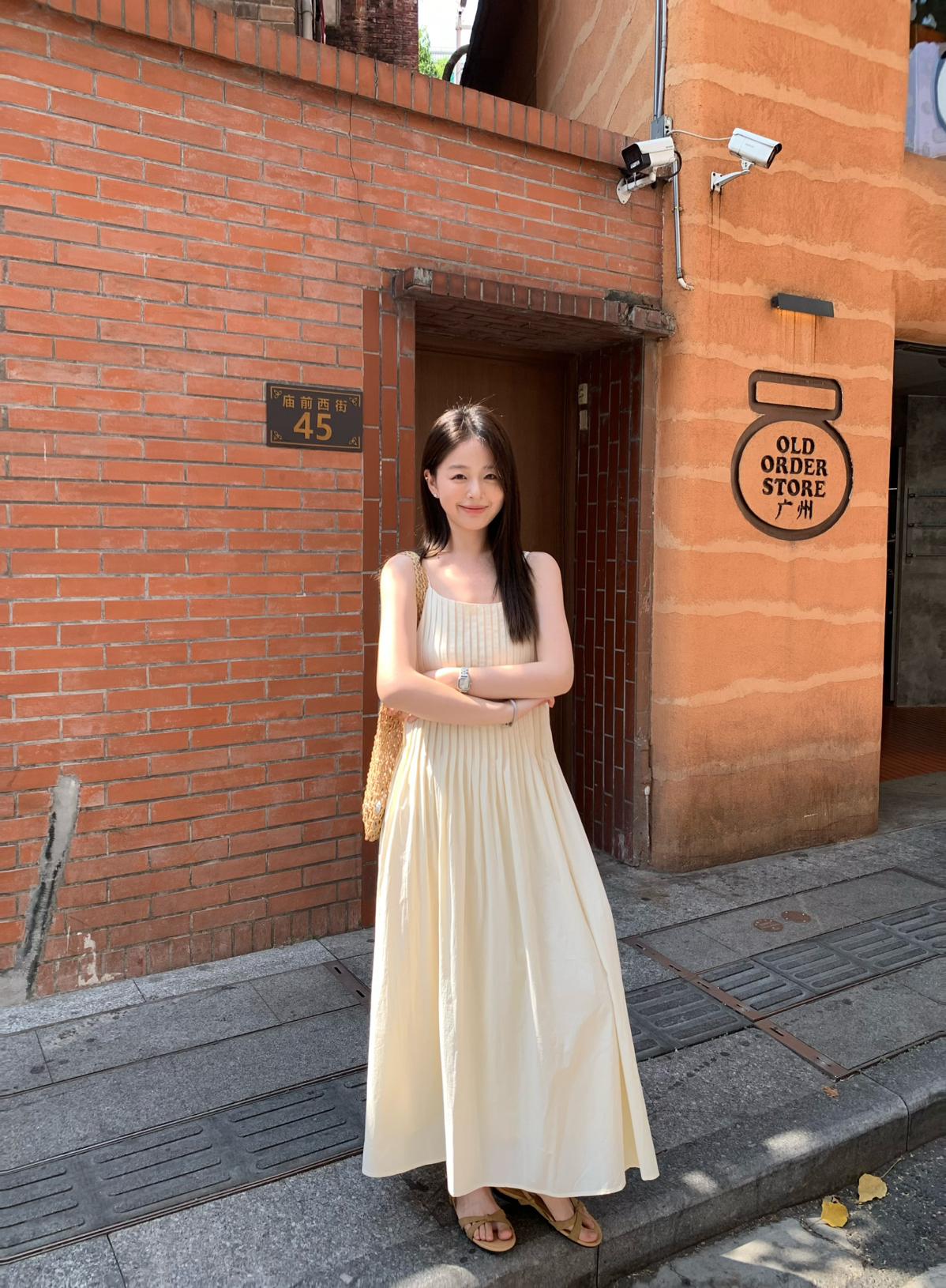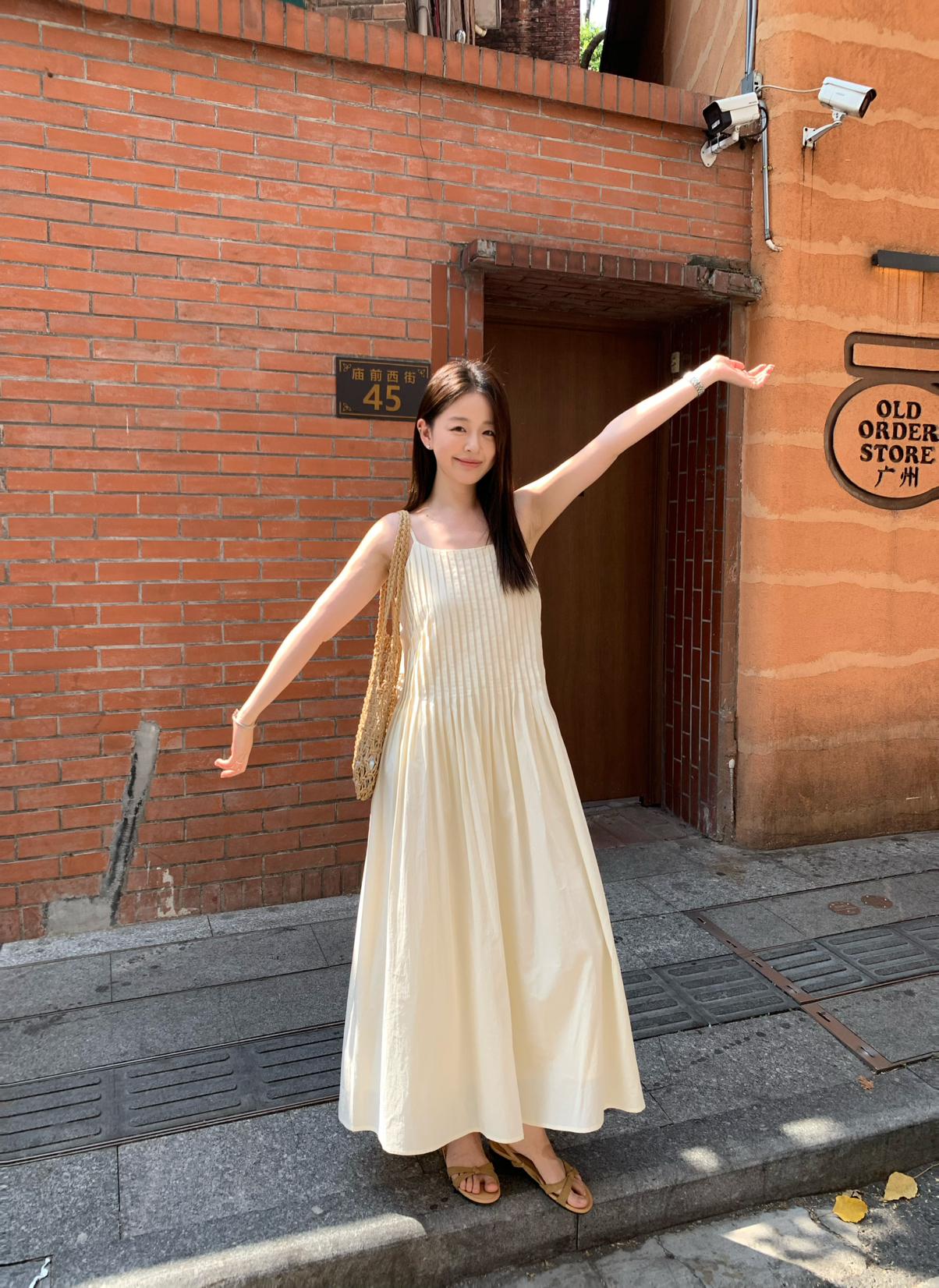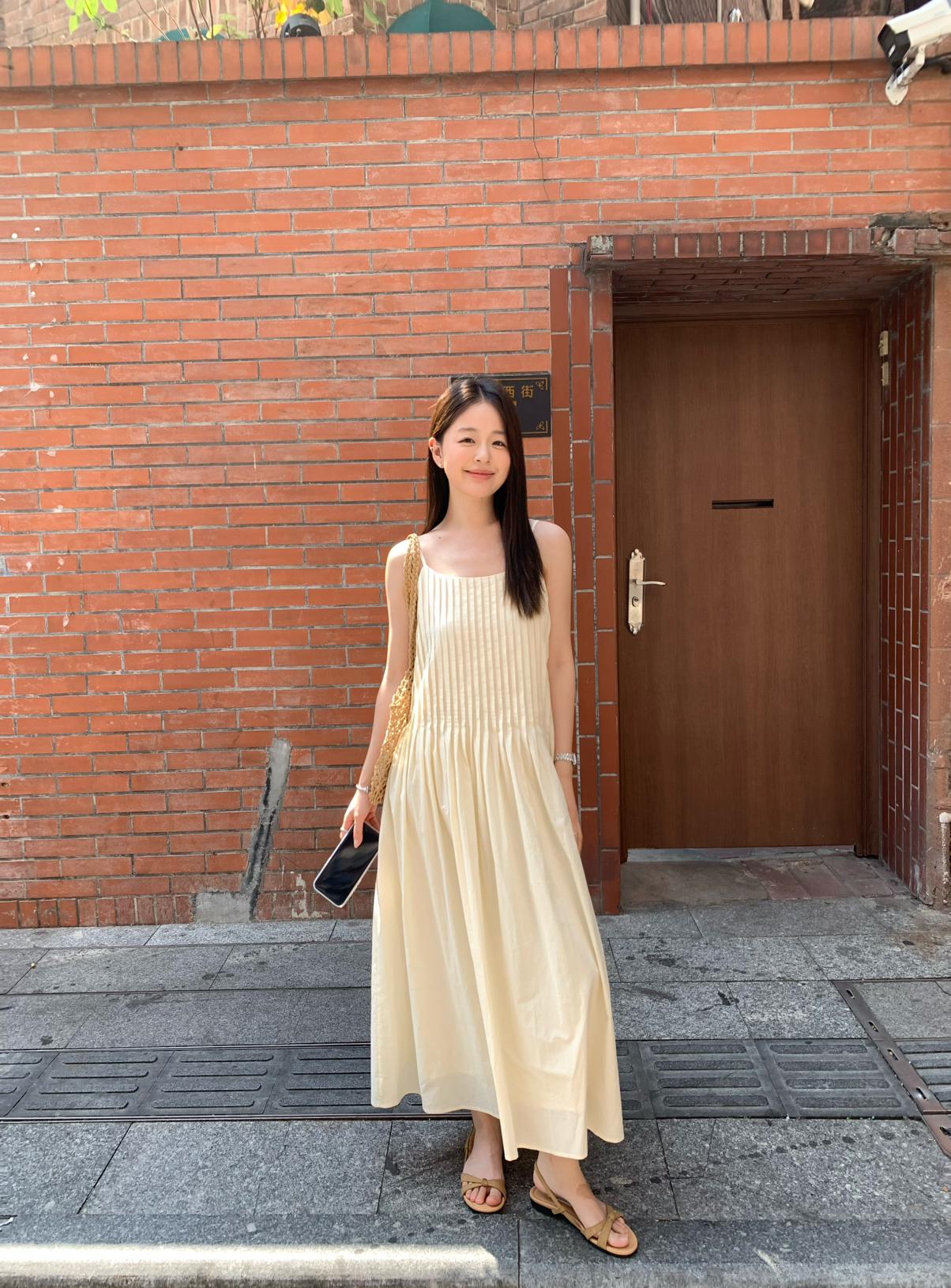 【C8821】目之所及的驚豔韓系春日度假風少女感飄逸簡約氣質優雅吊帶連衣裙(只賣連衣裙)