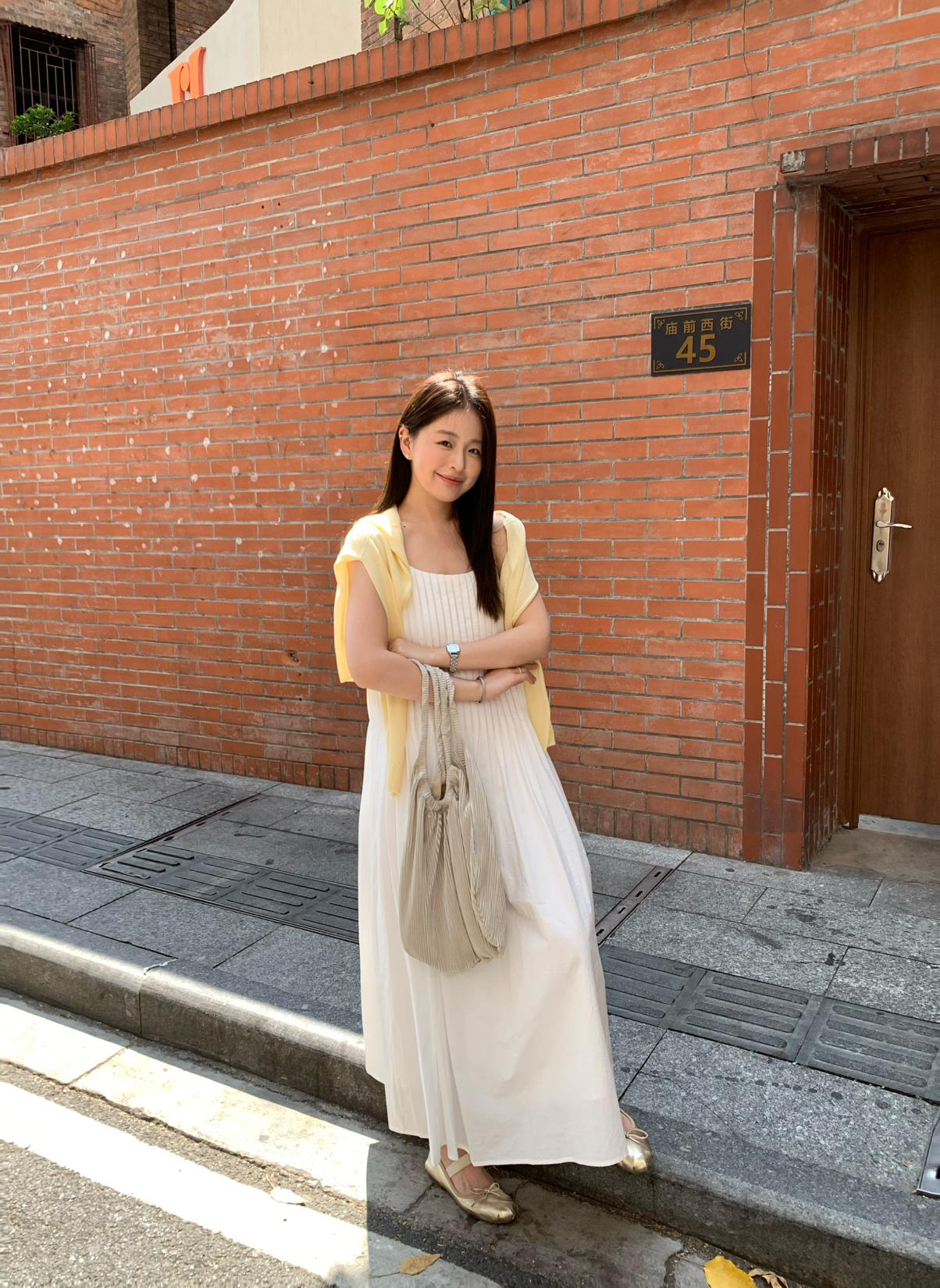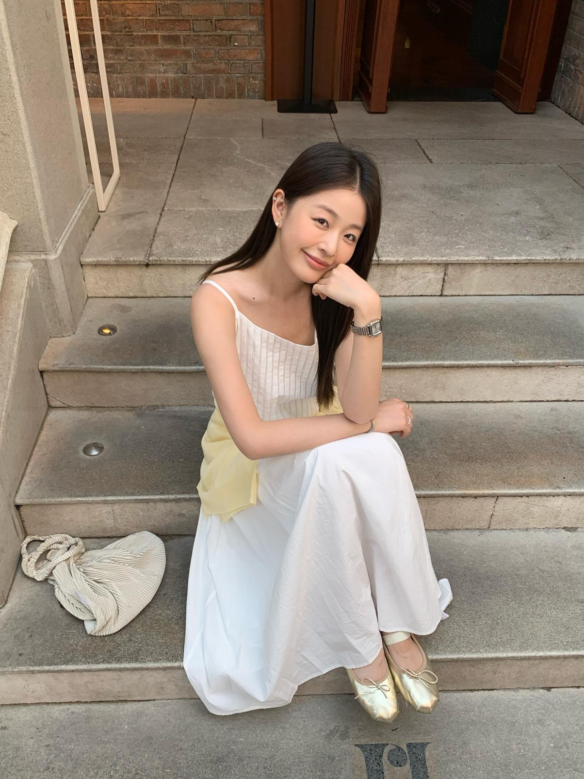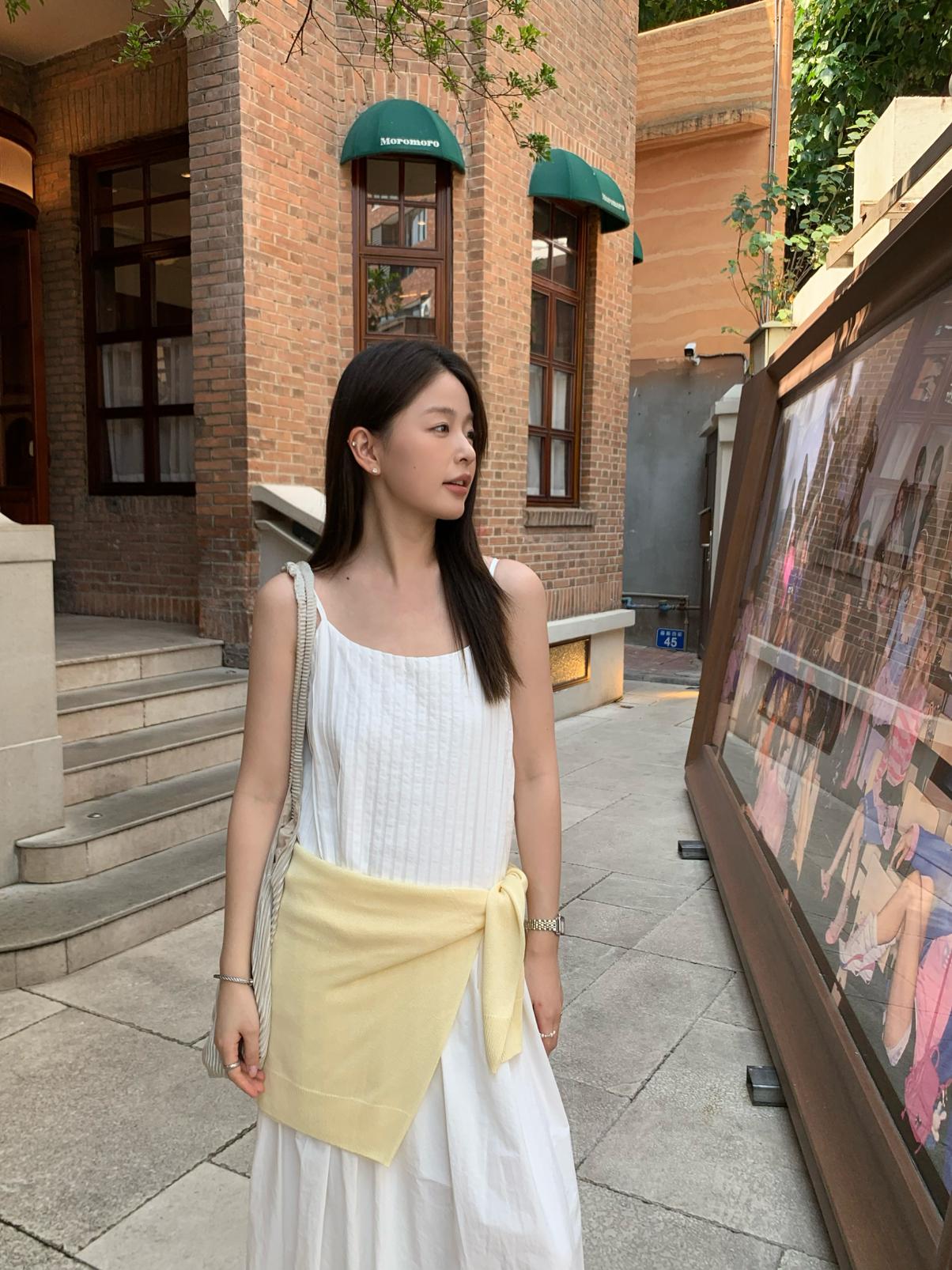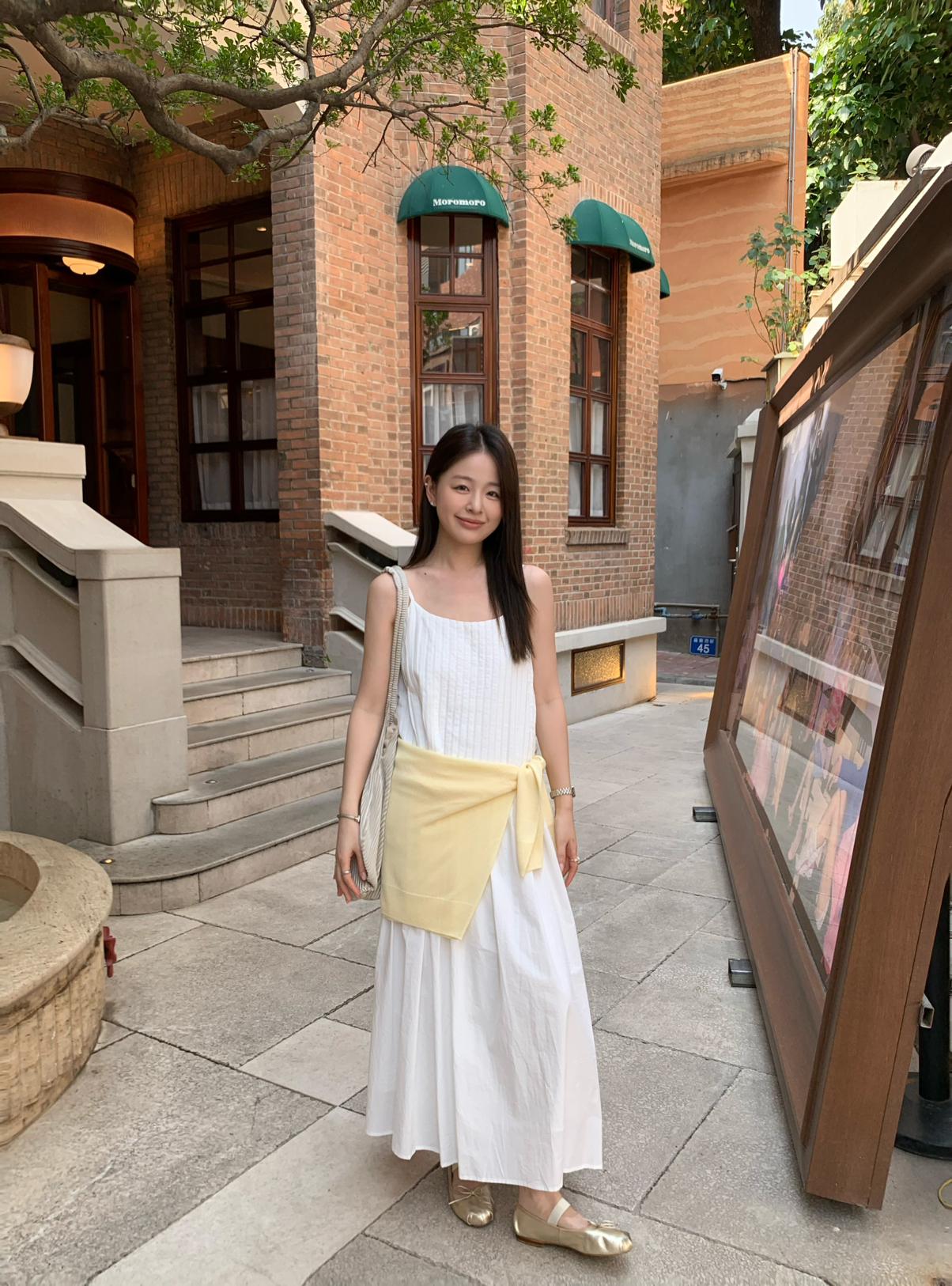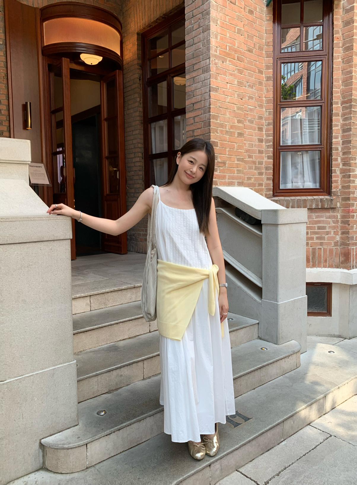 【C8821】目之所及的驚豔韓系春日度假風少女感飄逸簡約氣質優雅吊帶連衣裙(只賣連衣裙)
