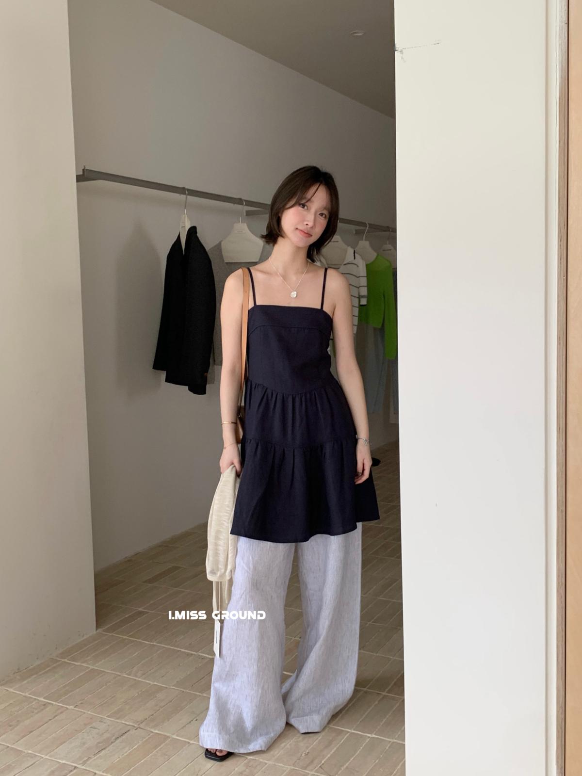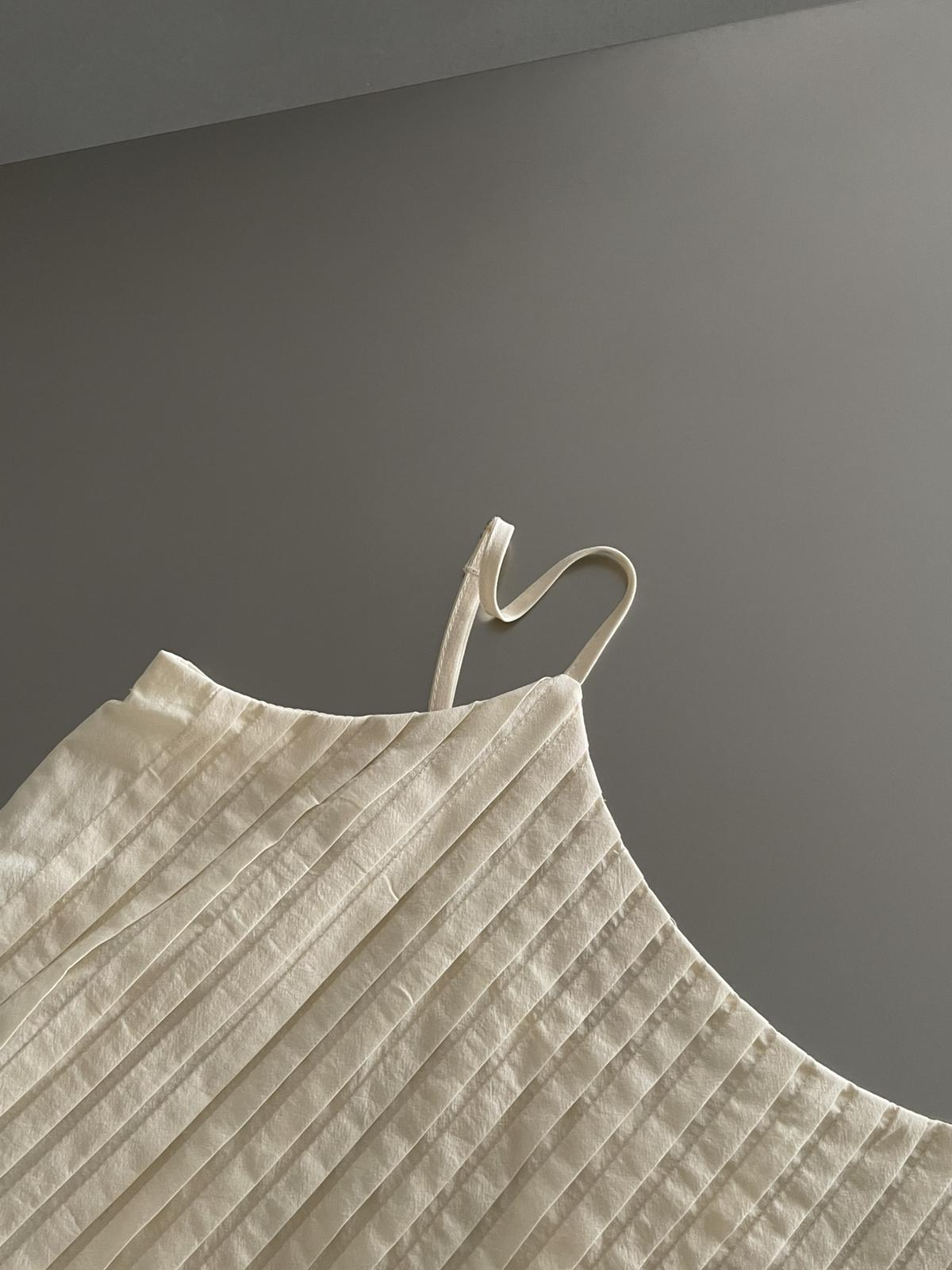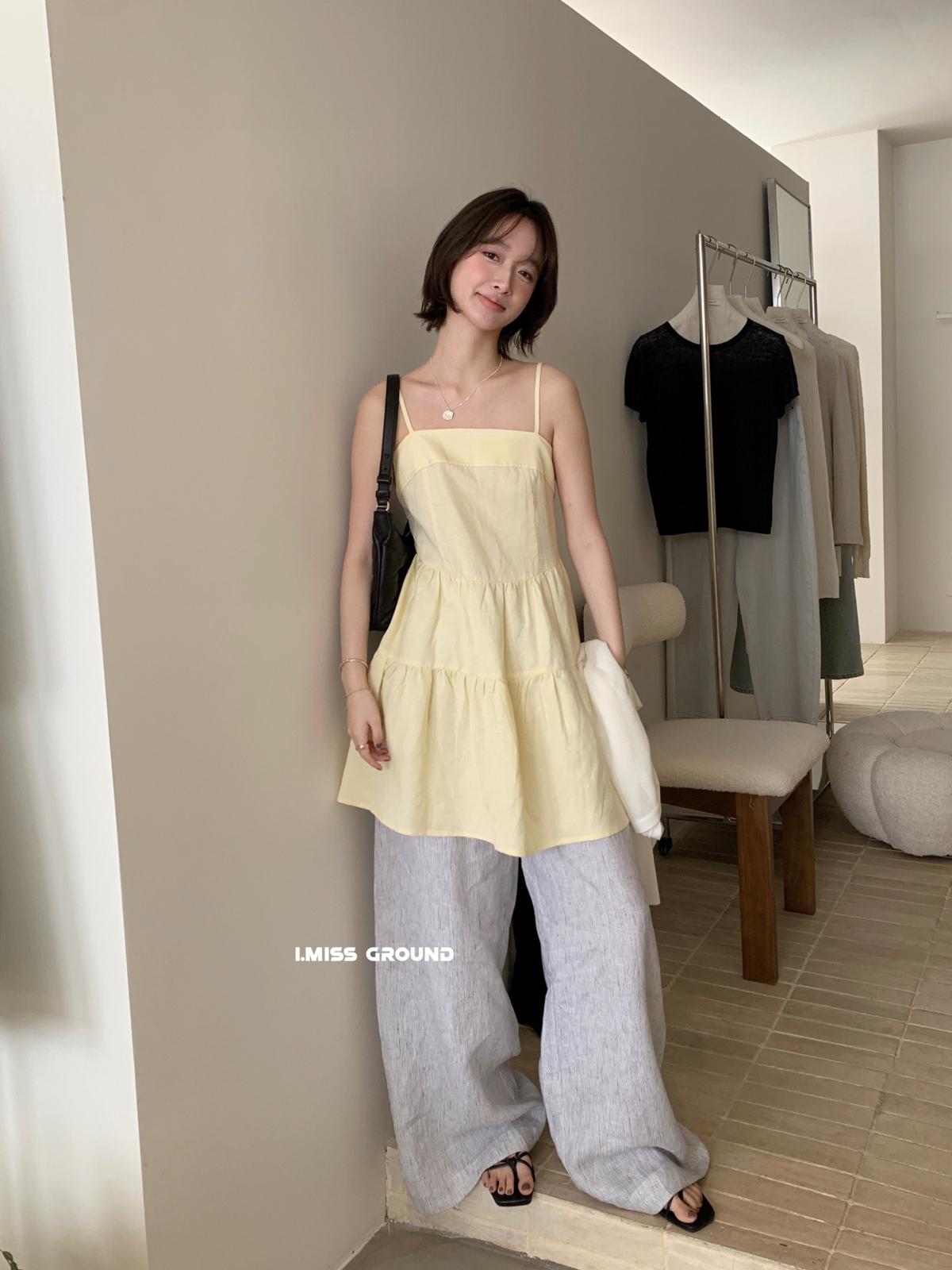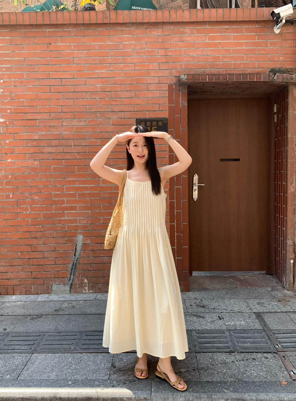 【C9216】韓標!高品質天絲麻壓褶背心,麻料有麻結麻點爲正常連衣裙(配飄帶)(只賣背心裙)