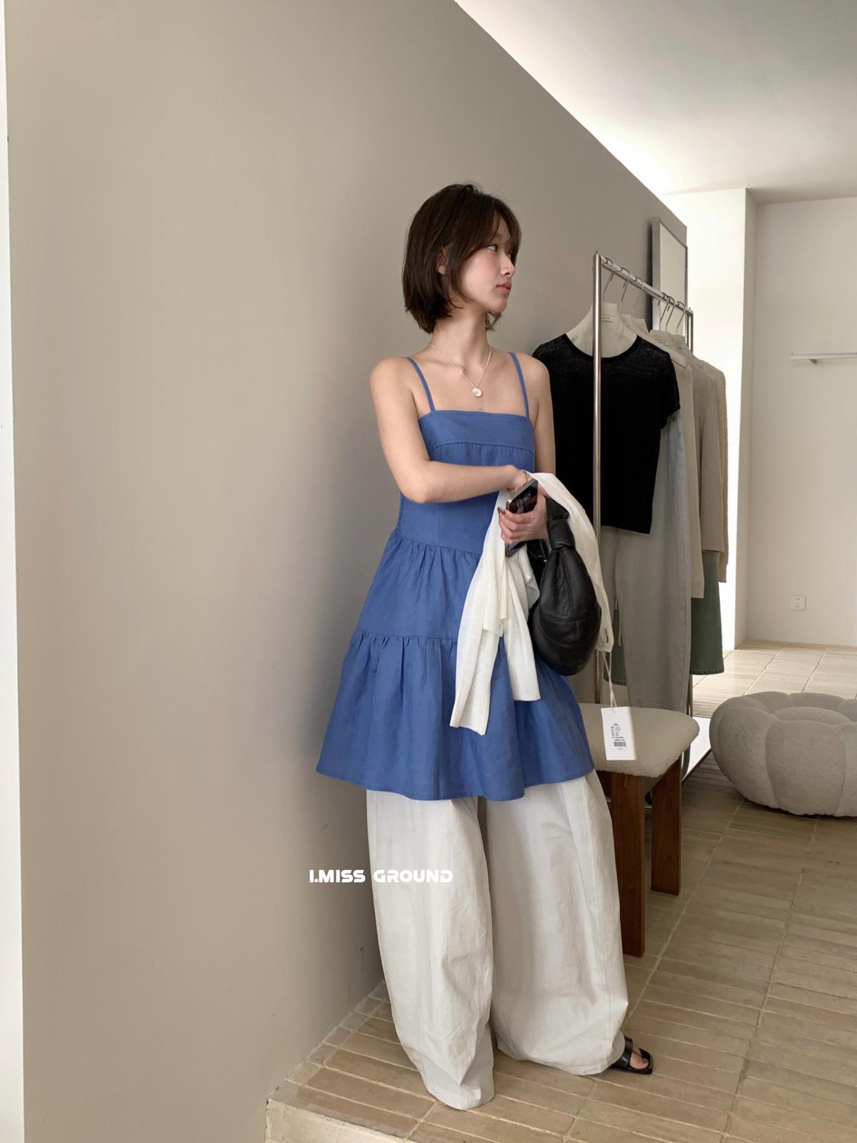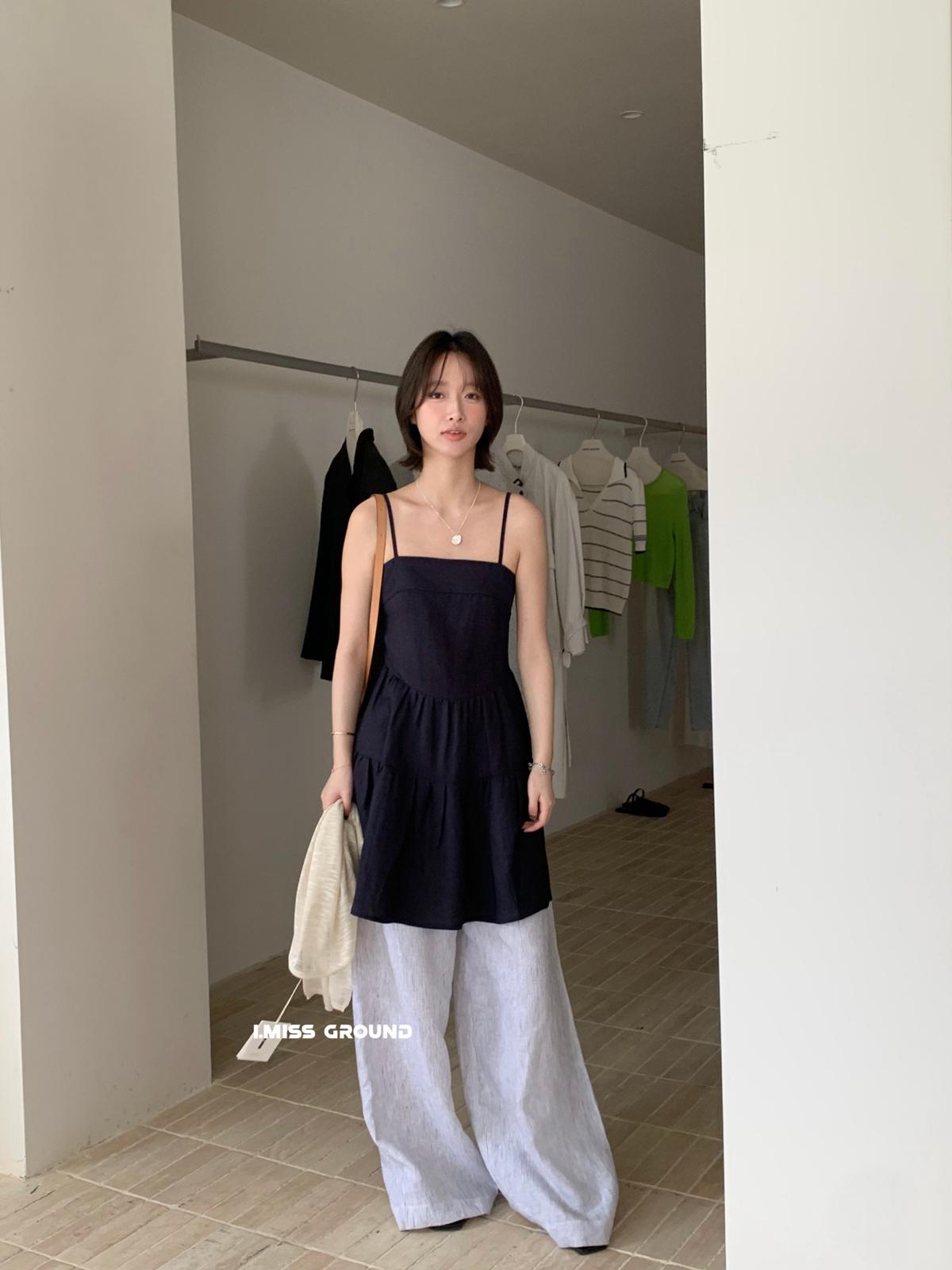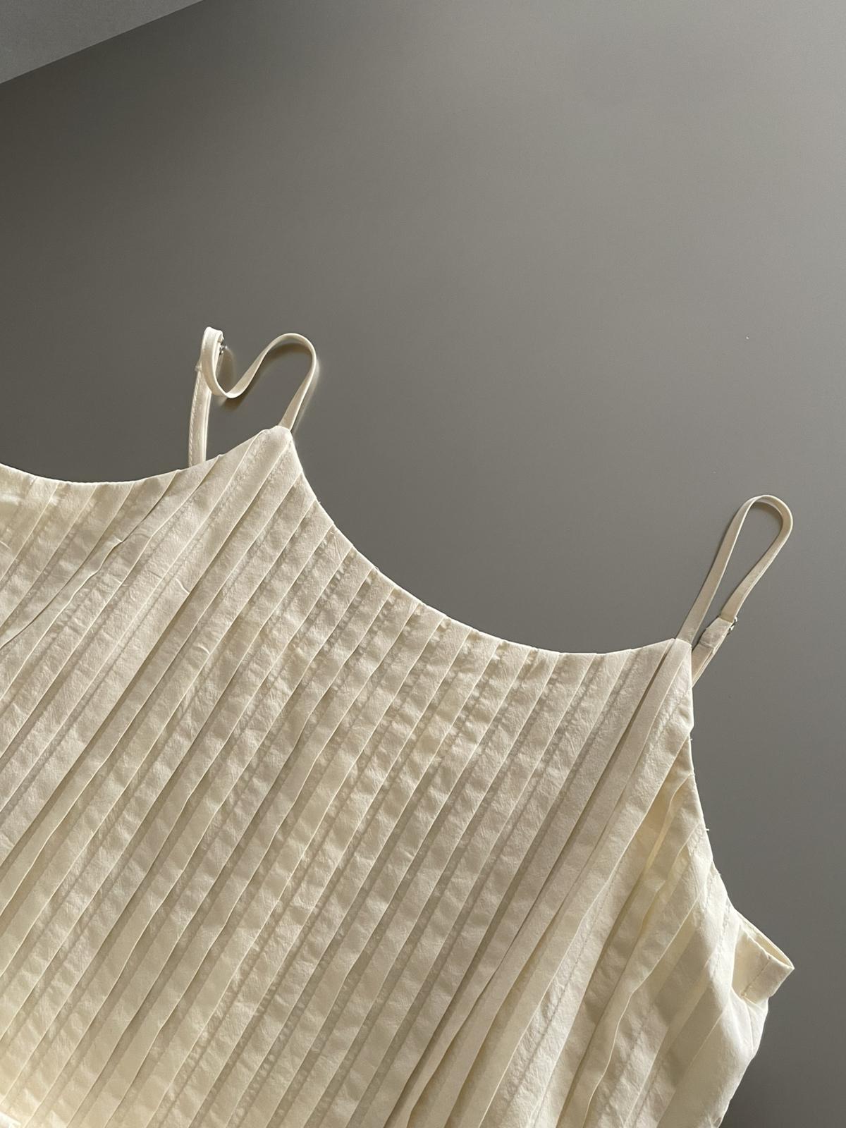 【C9216】韓標!高品質天絲麻壓褶背心,麻料有麻結麻點爲正常連衣裙(配飄帶)(只賣背心裙)