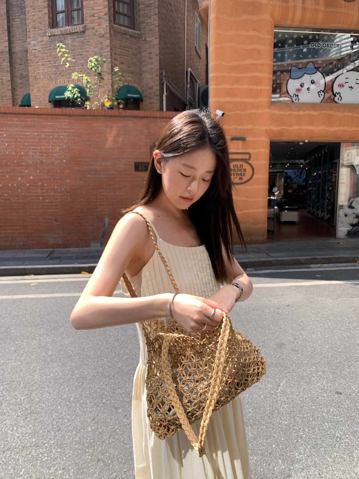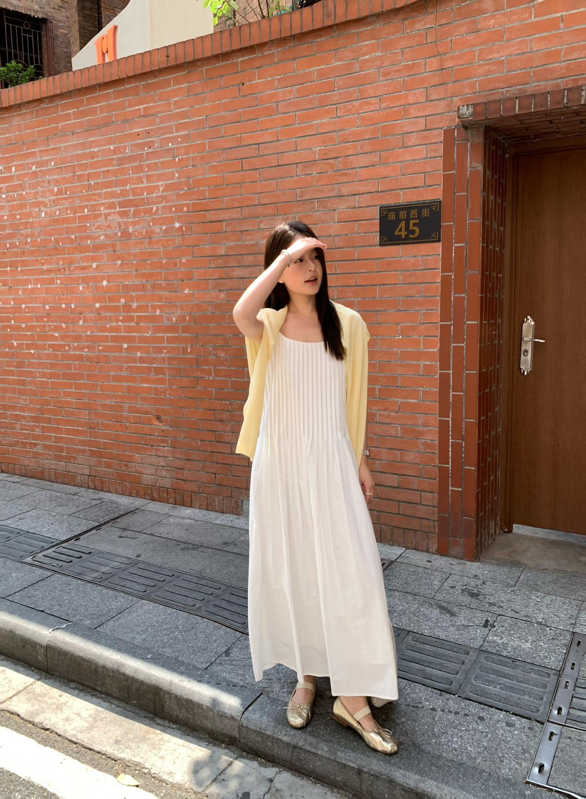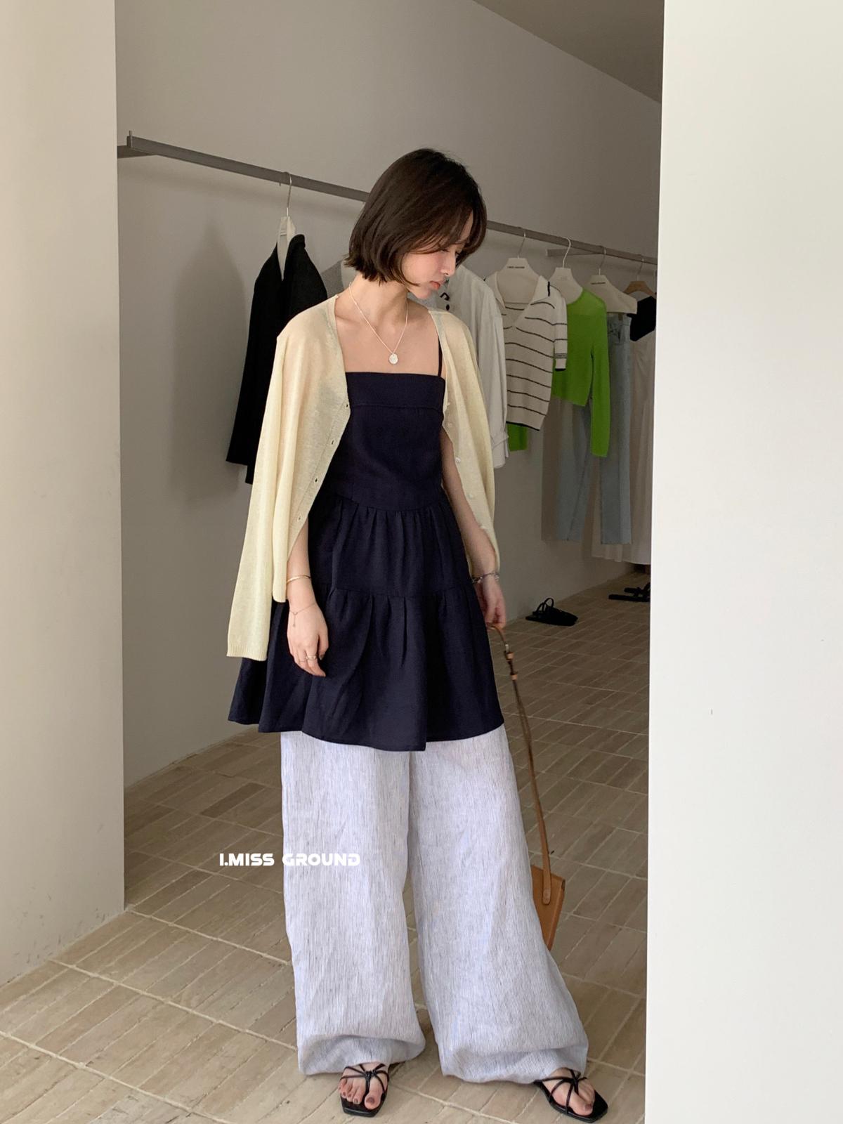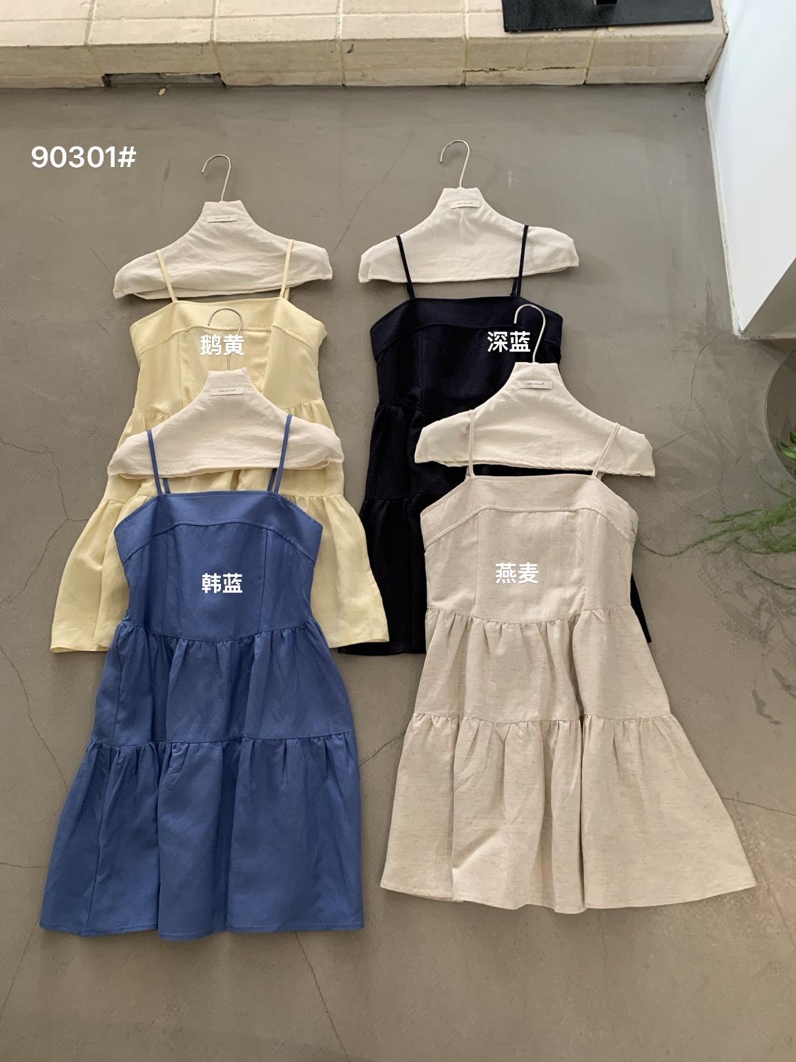 【C9216】韓標!高品質天絲麻壓褶背心,麻料有麻結麻點爲正常連衣裙(配飄帶)(只賣背心裙)