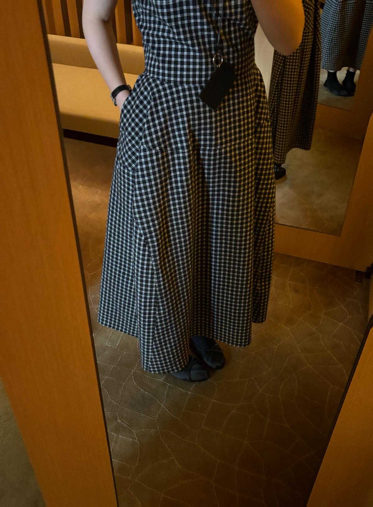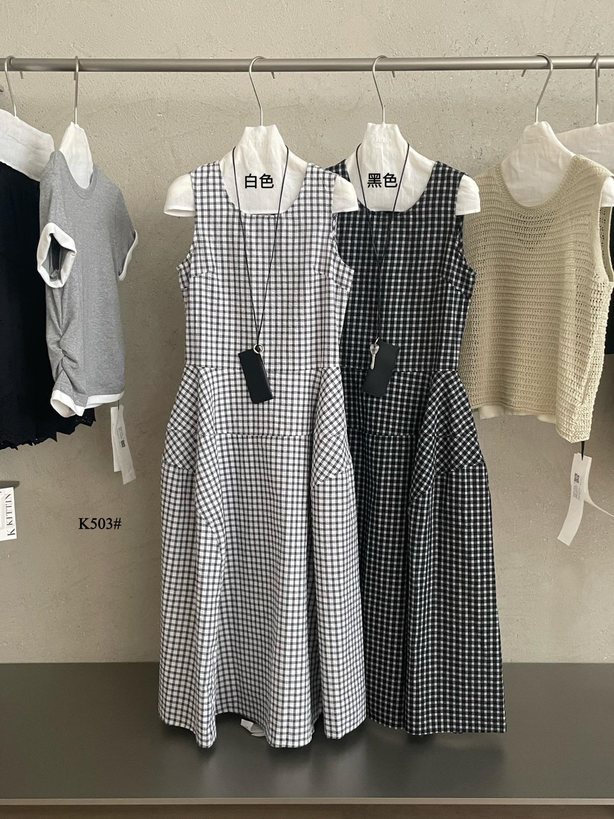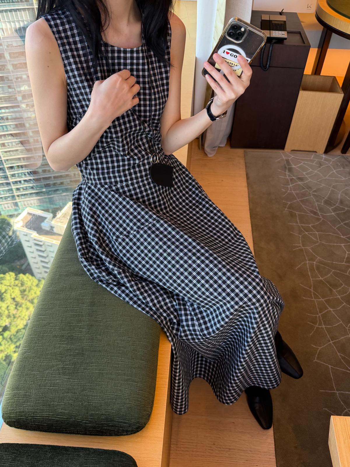 【C8988】韓系時尚格子背心大擺連衣裙(配掛包)
