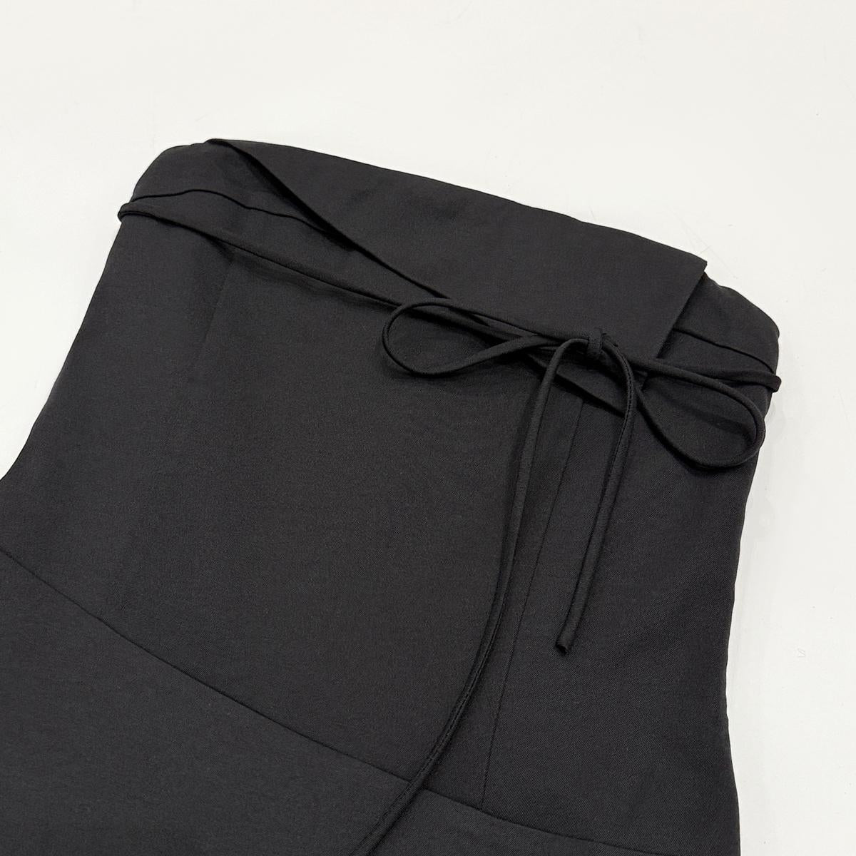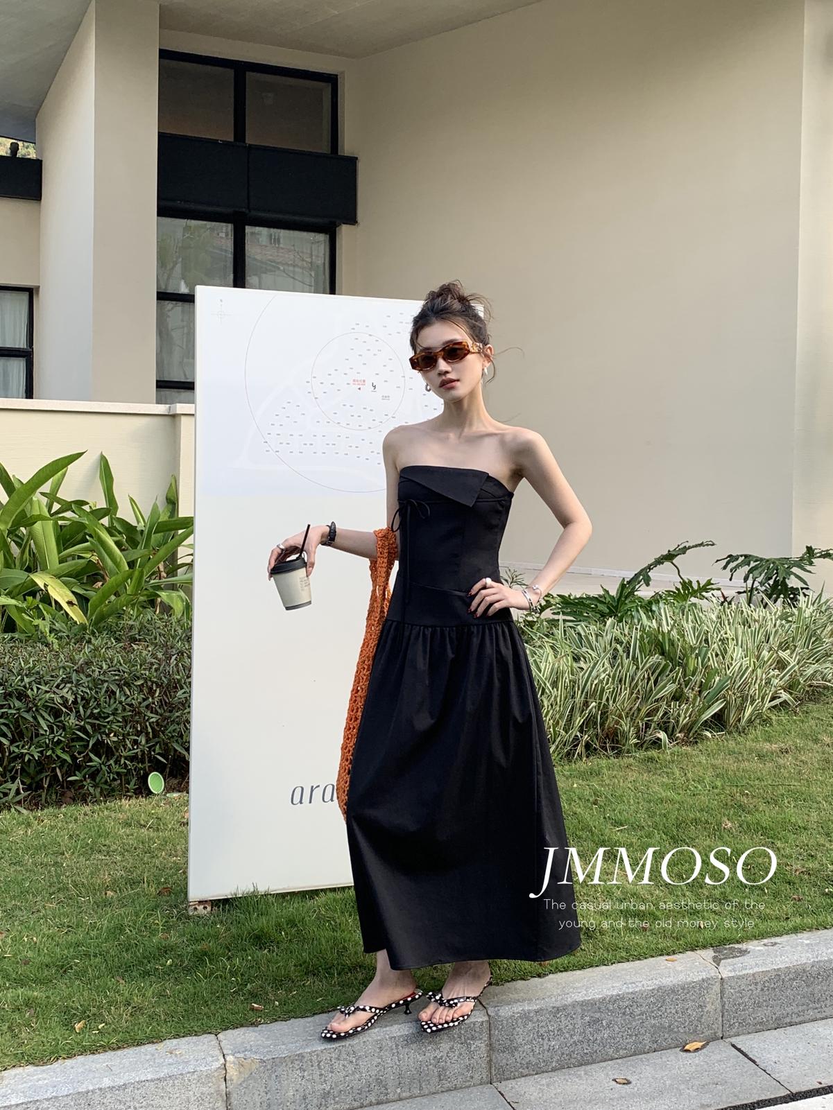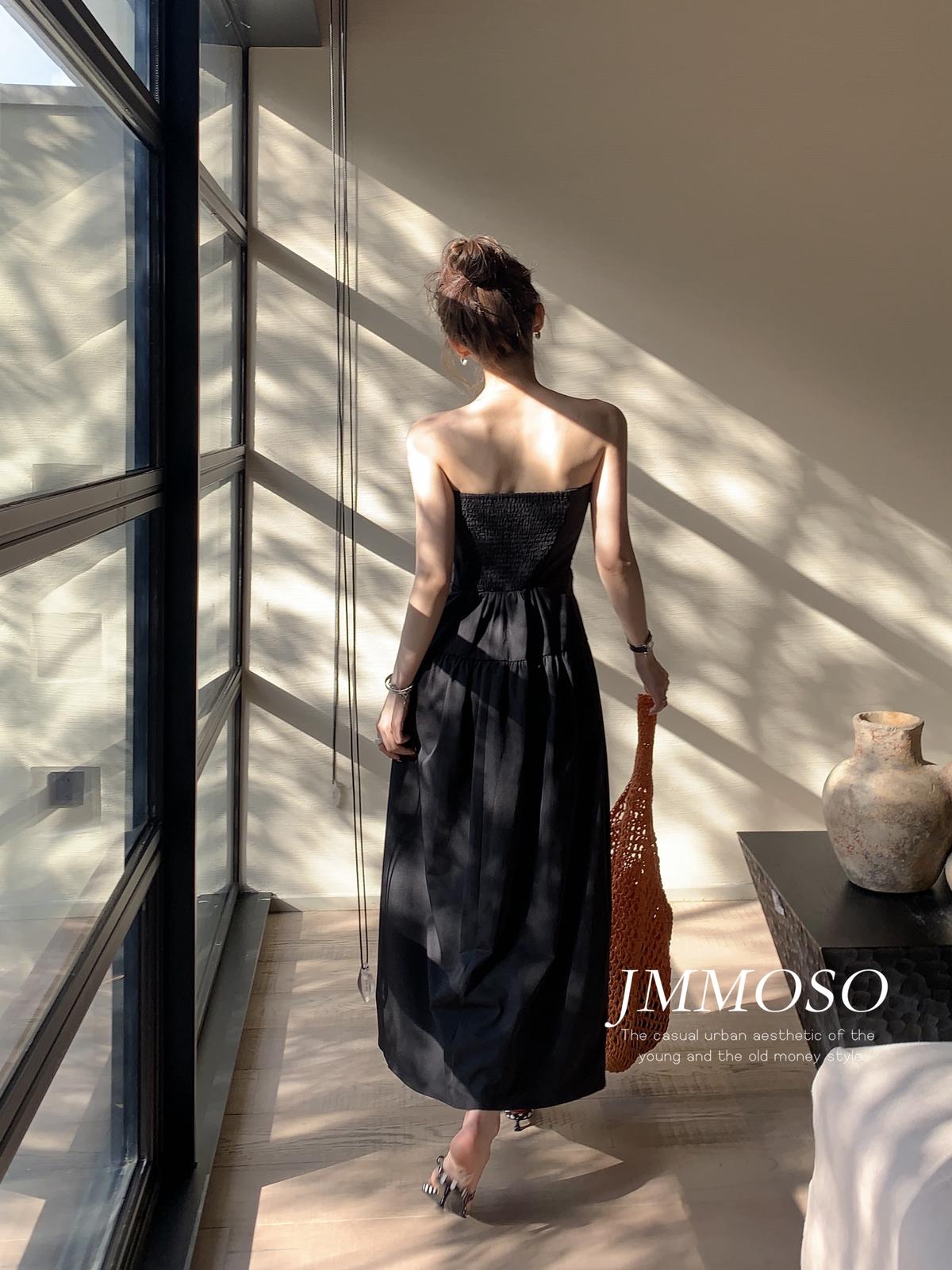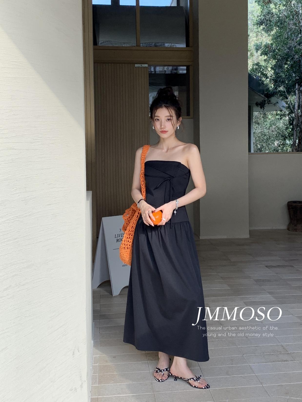【C9002】清潭洞ins博主風舒適亞麻氣質翻領抹胸繫帶顯瘦連衣裙