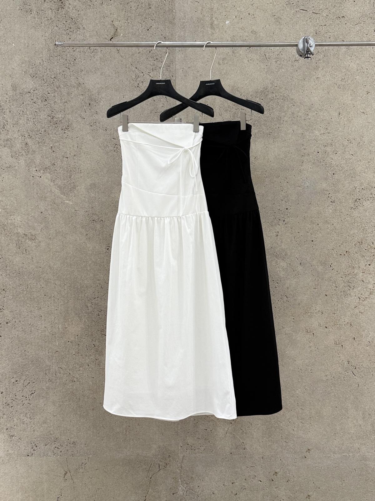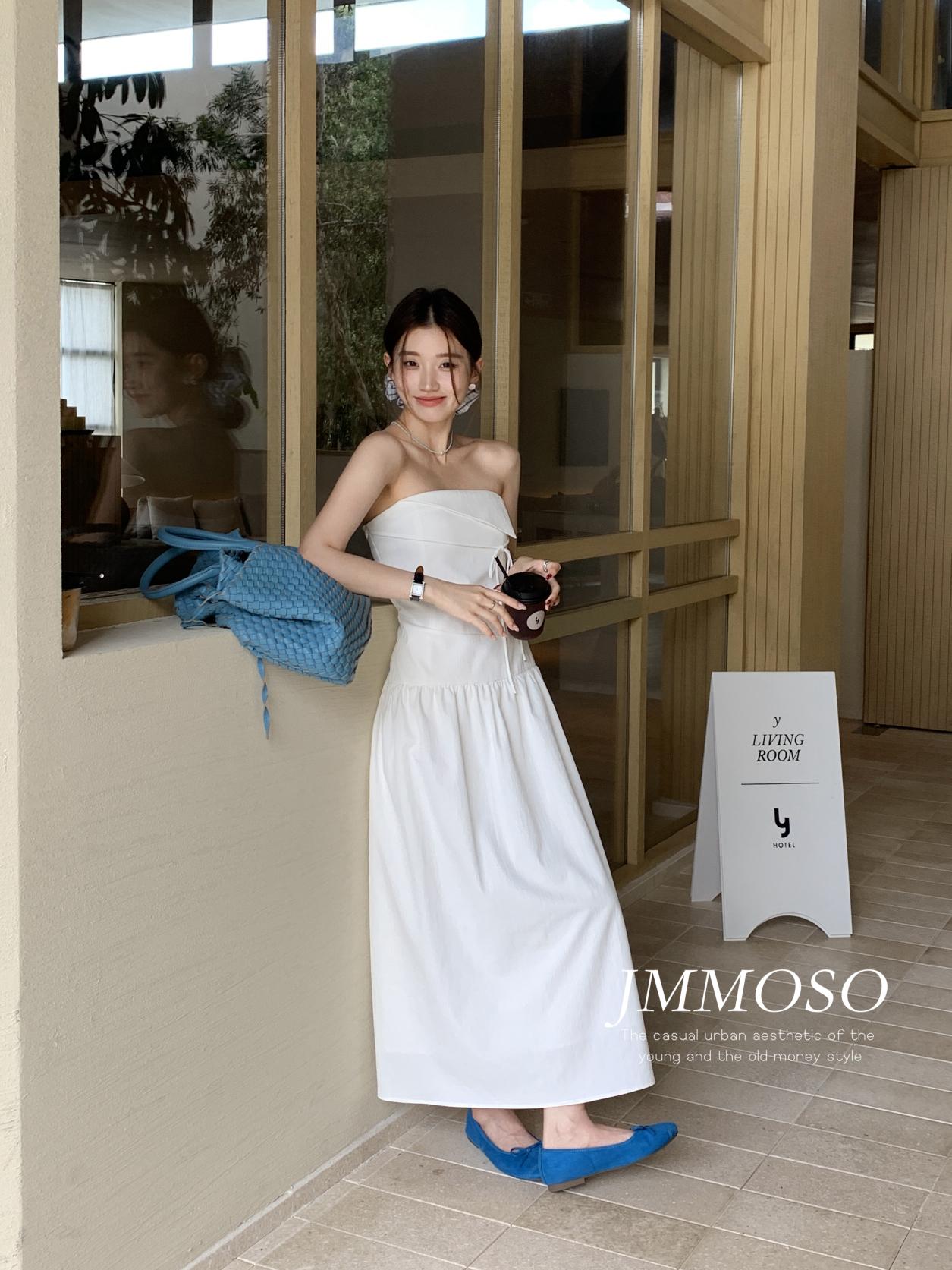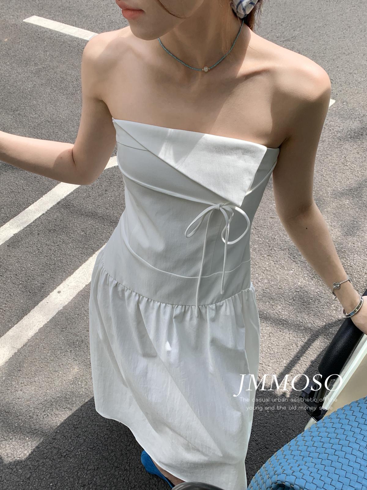 【C9171】心頭愛*自帶變美濾鏡!仙仙動人~夏季純欲溫柔波點不規則抹胸連衣裙(配可拆卸飄帶)