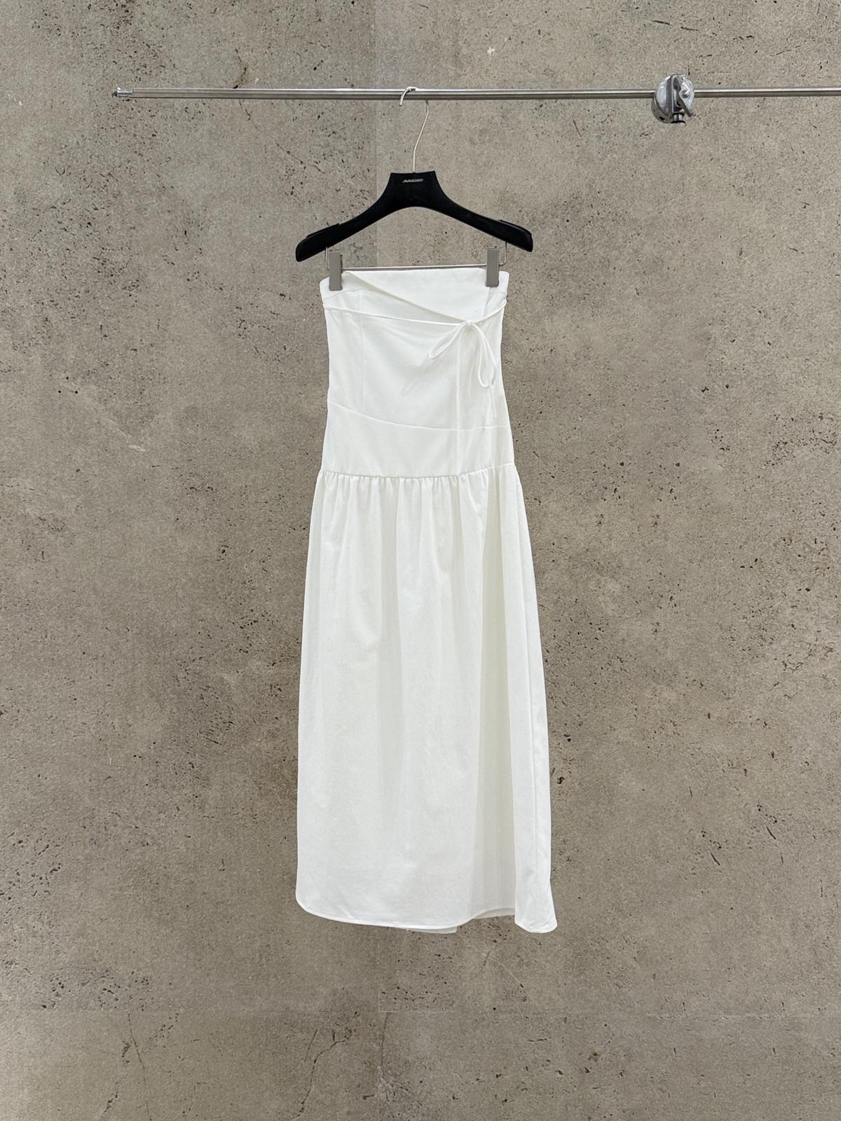 【C8785】初戀小白裙~法式赫本風萊賽爾蝴蝶結繫帶挖空寬鬆連衣裙