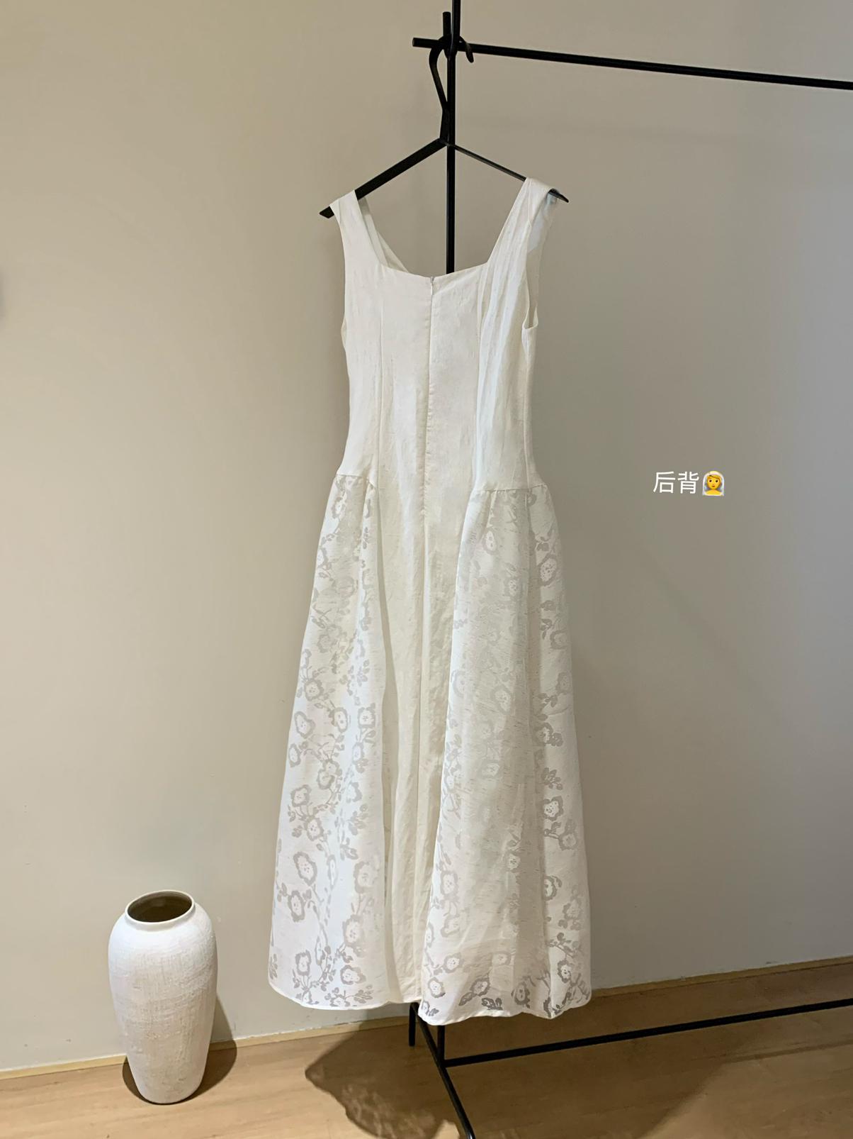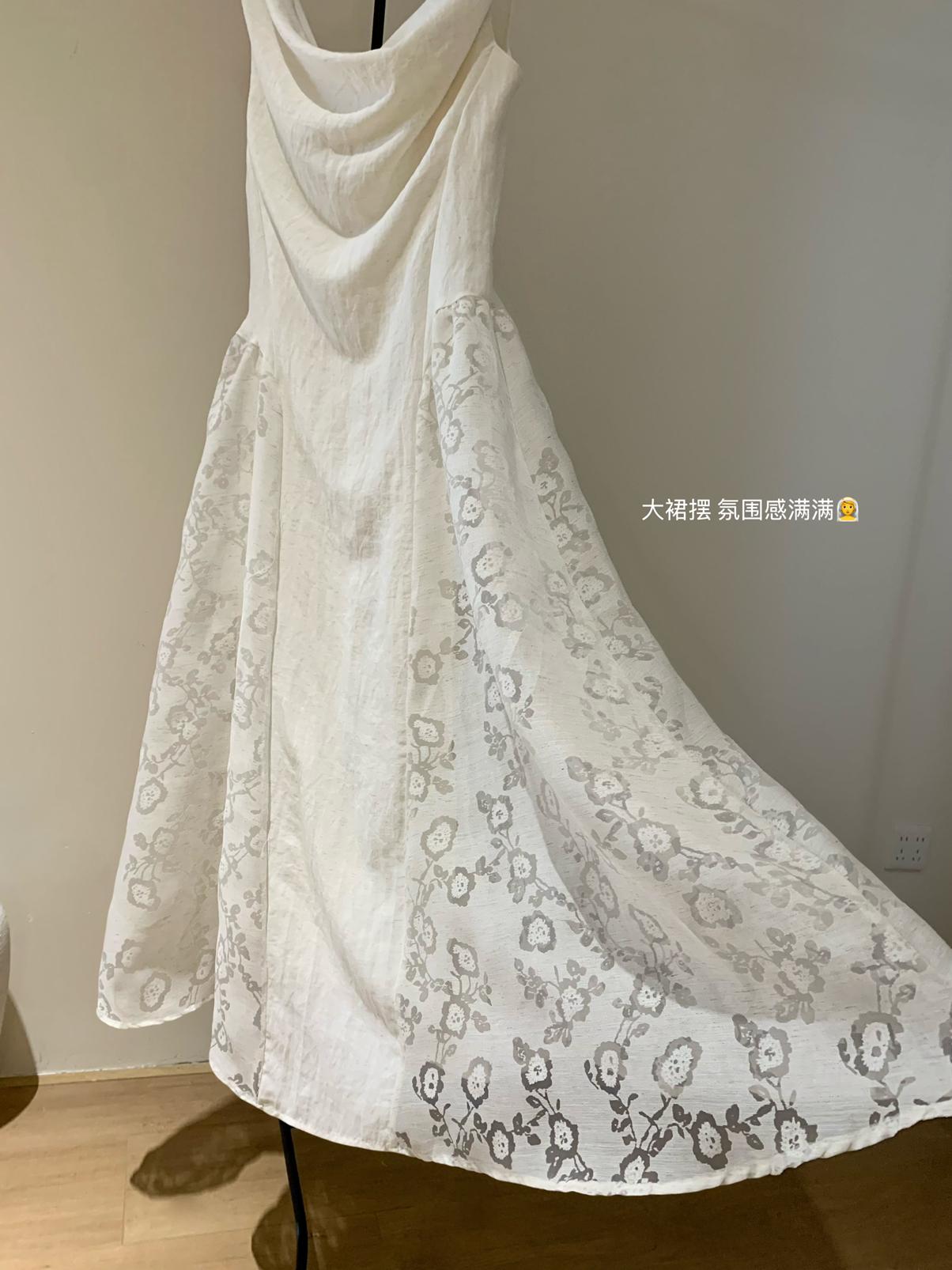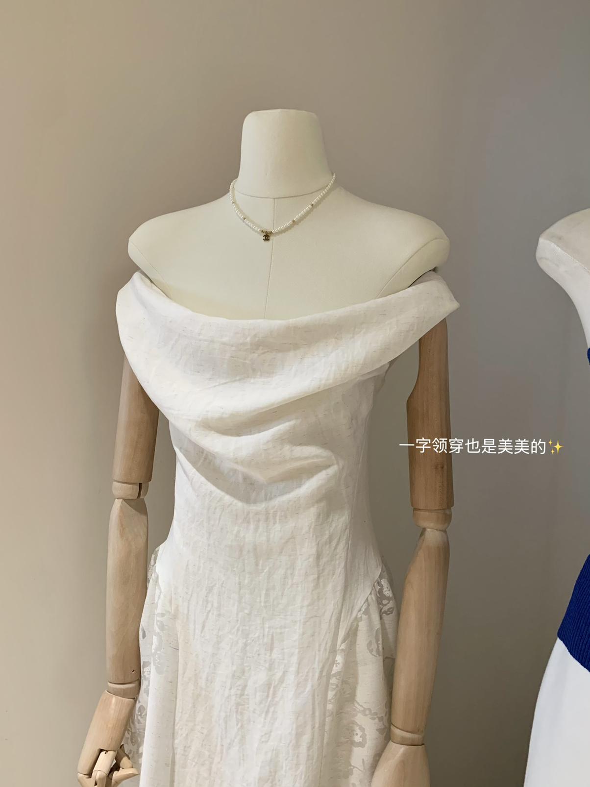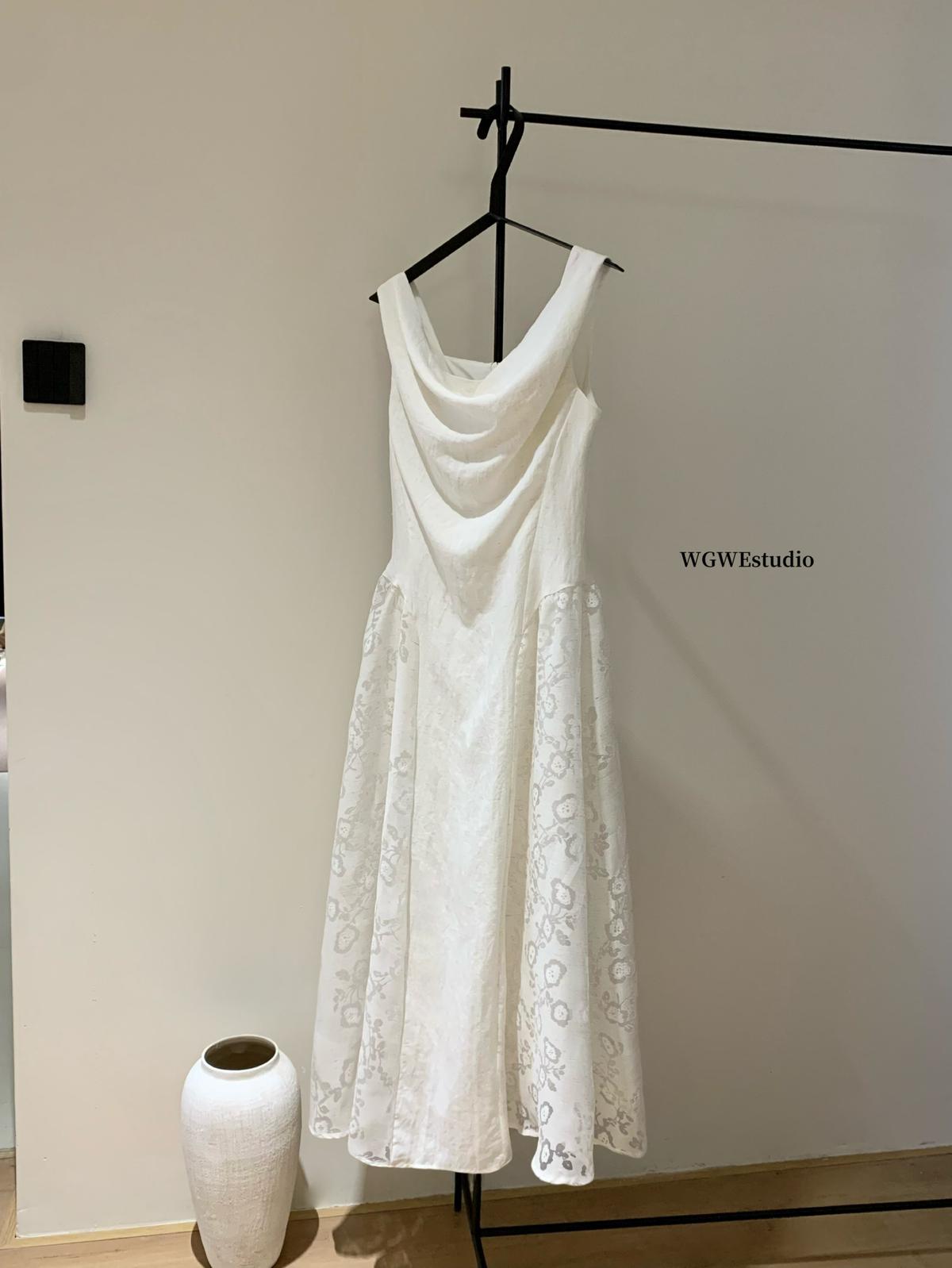 【C6446】2025年夏季白月光領證小白裙子復古小衆蕩領蕾連衣裙