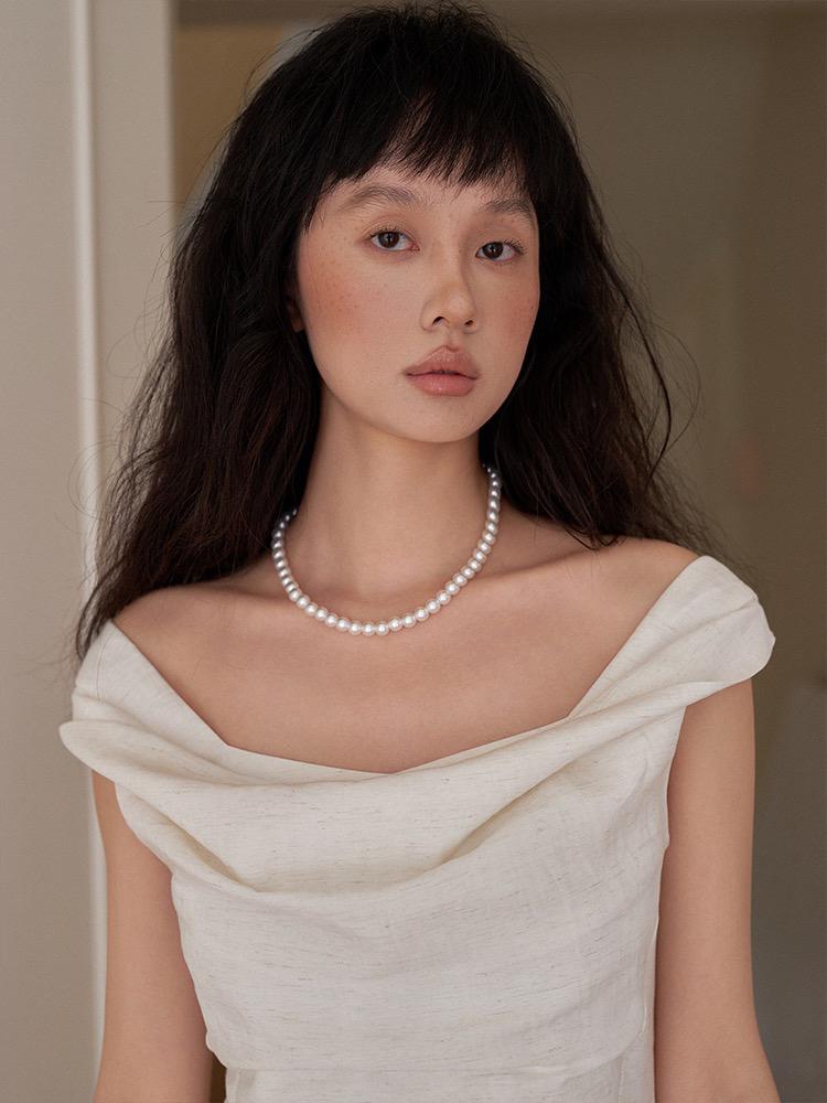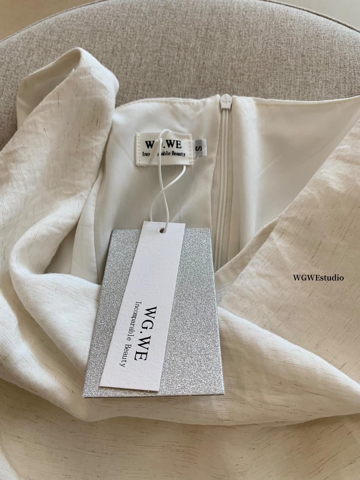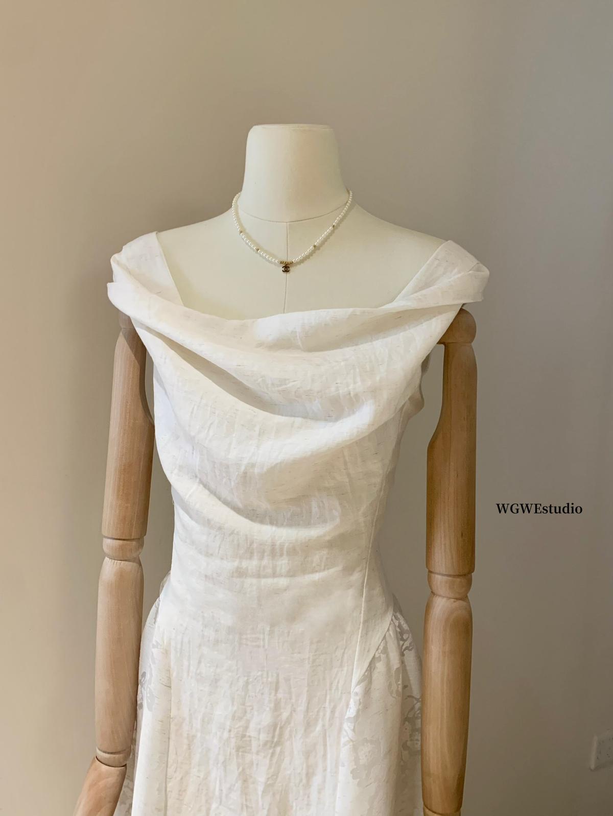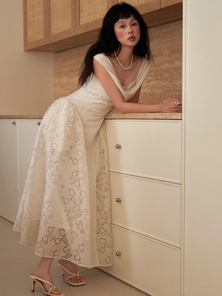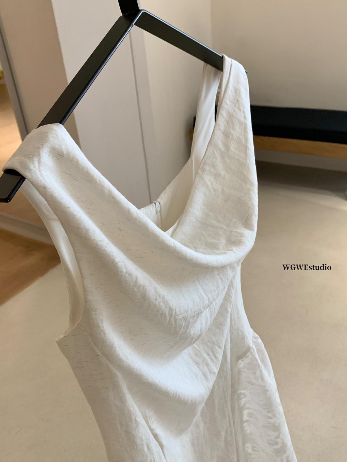 【C6446】2025年夏季白月光領證小白裙子復古小衆蕩領蕾連衣裙