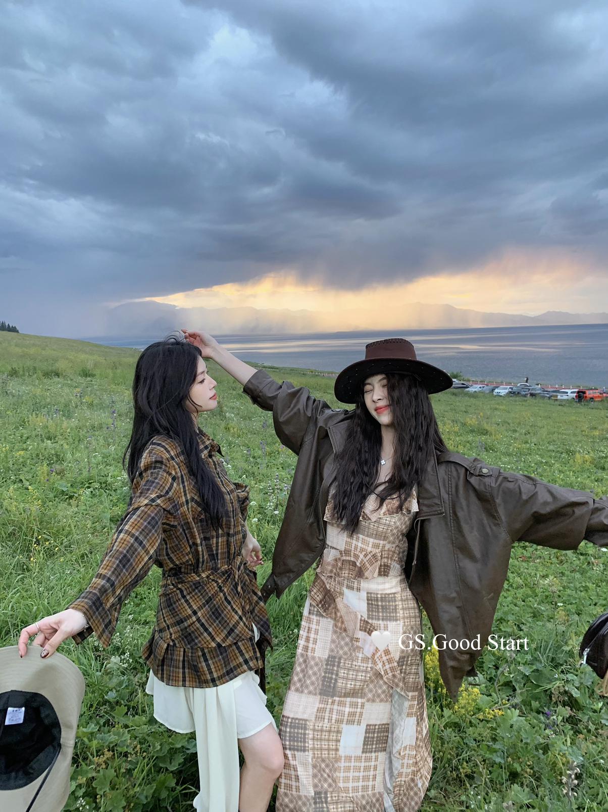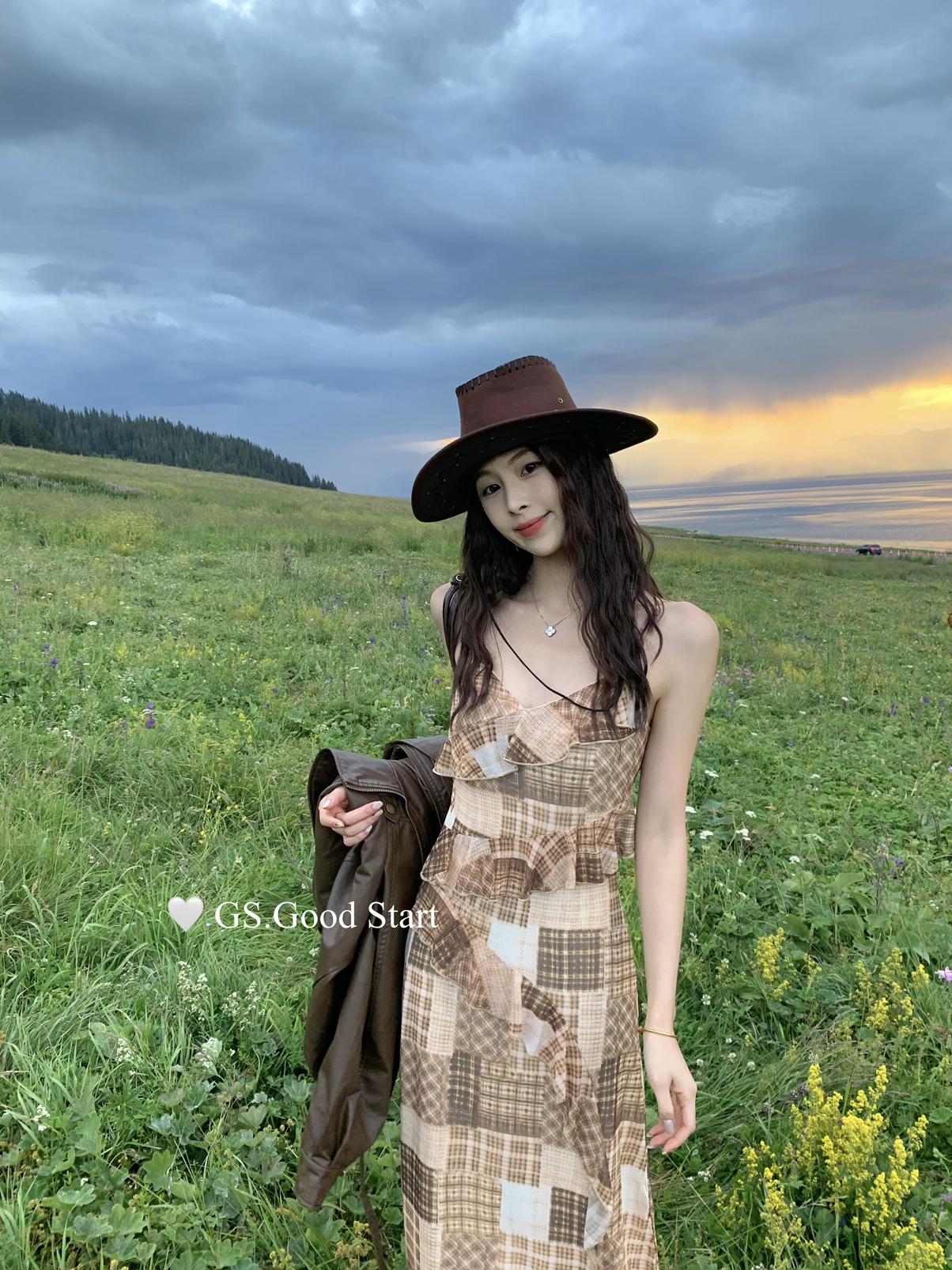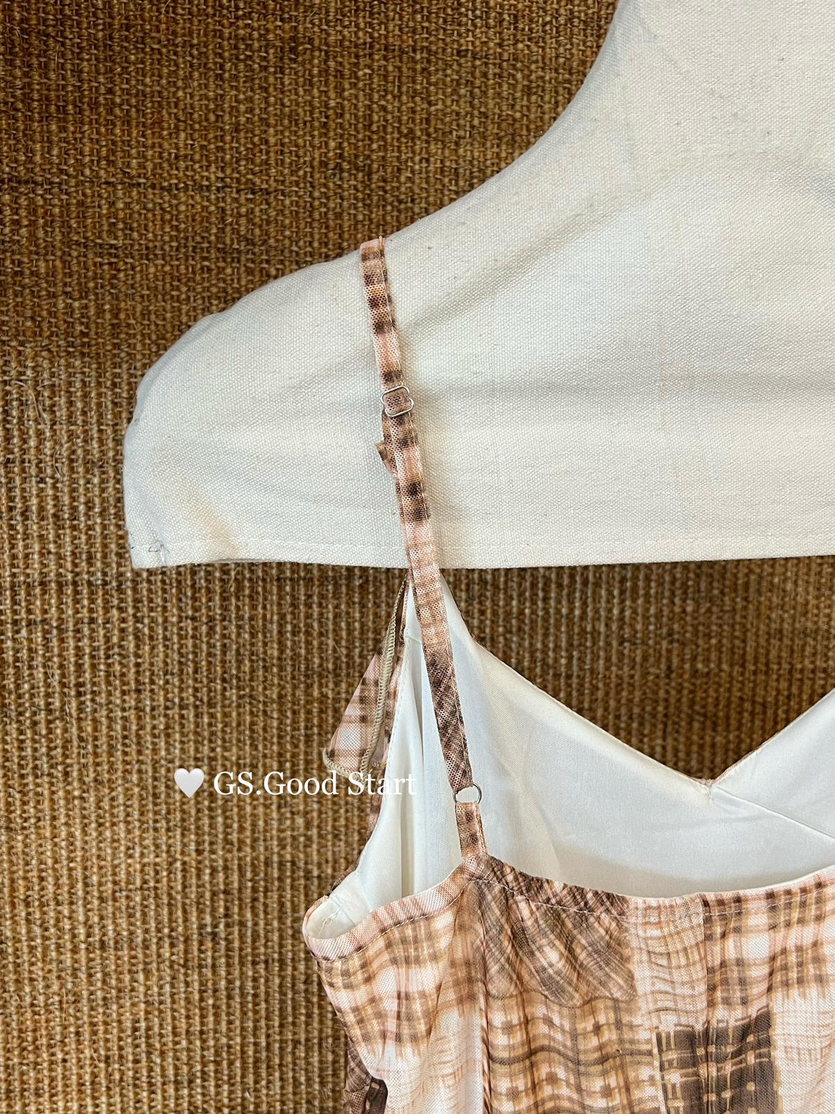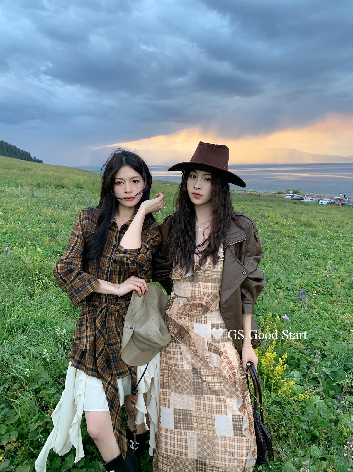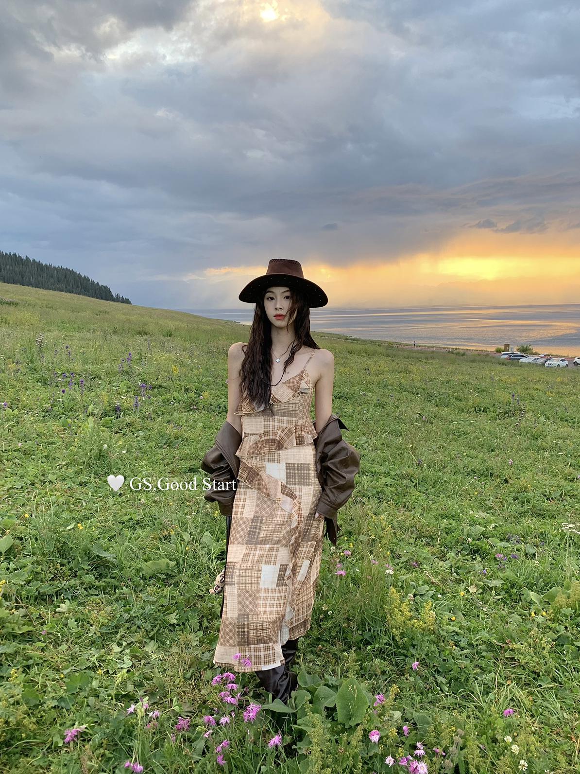 【C6577】自由流浪風~超有feel!秋上新時髦設計感格紋吊帶連衣裙