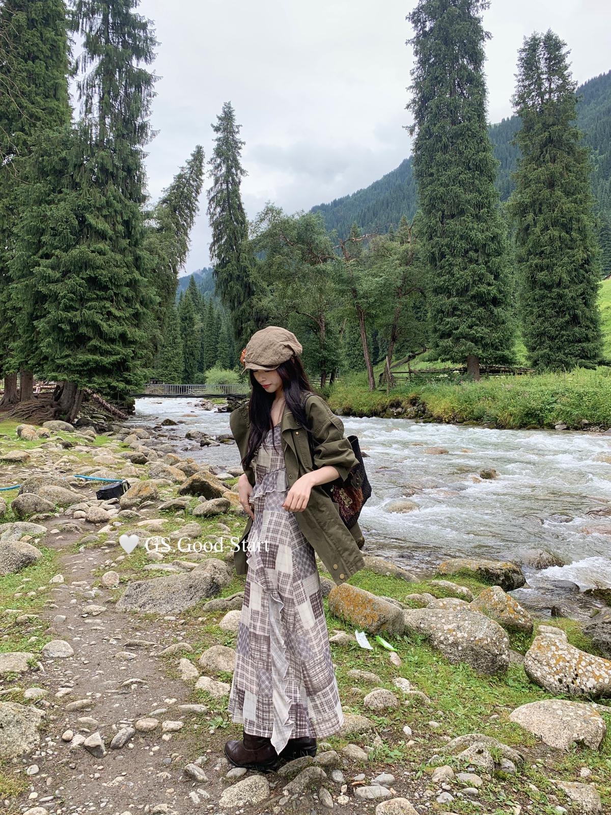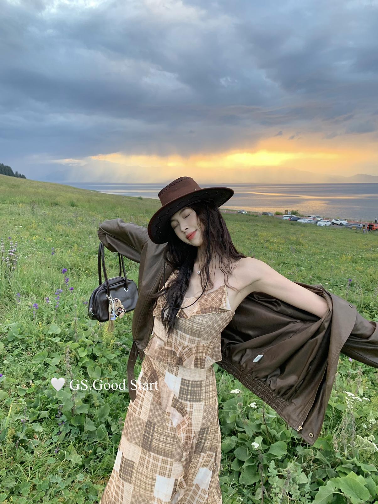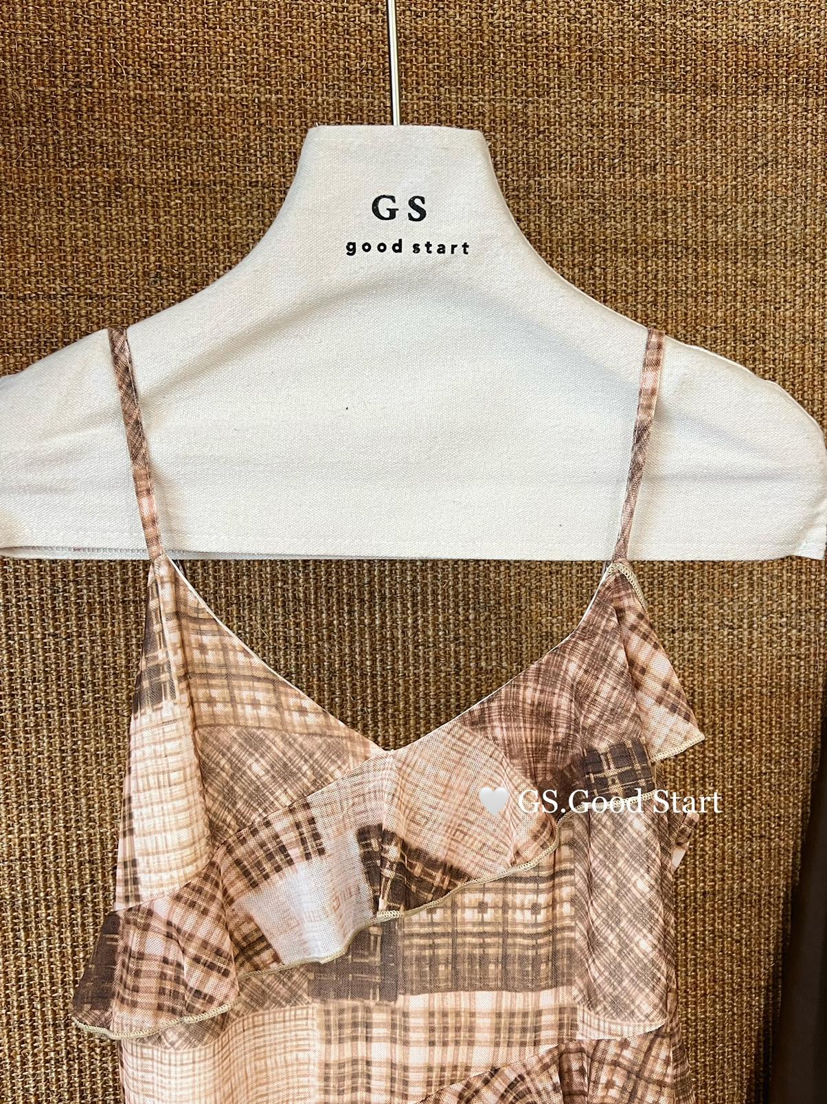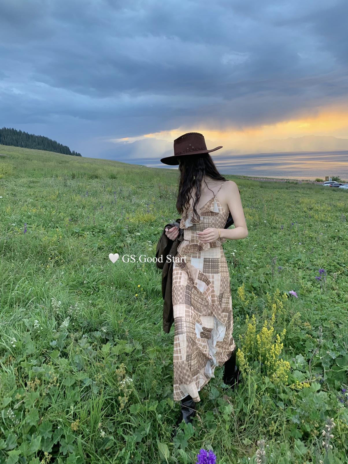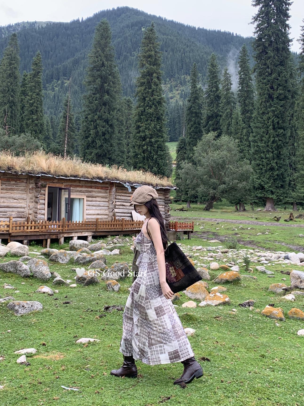 【C6577】自由流浪風~超有feel!秋上新時髦設計感格紋吊帶連衣裙