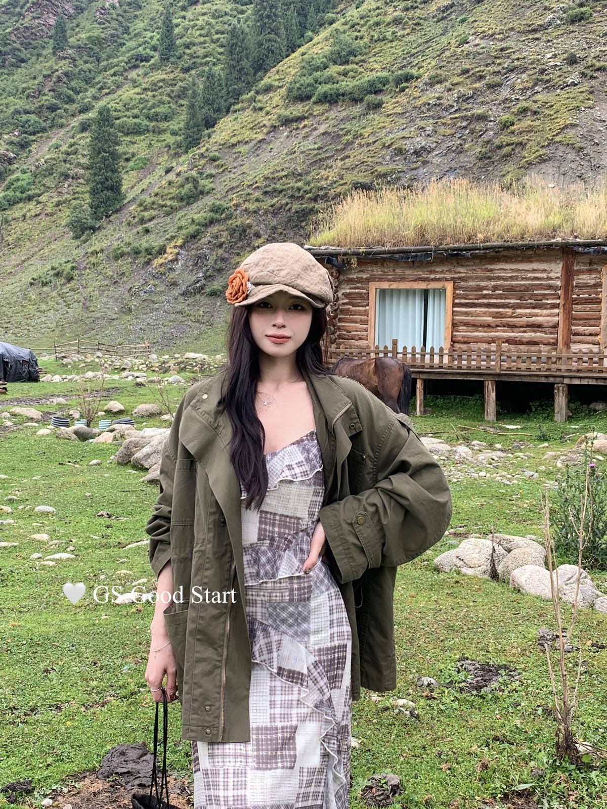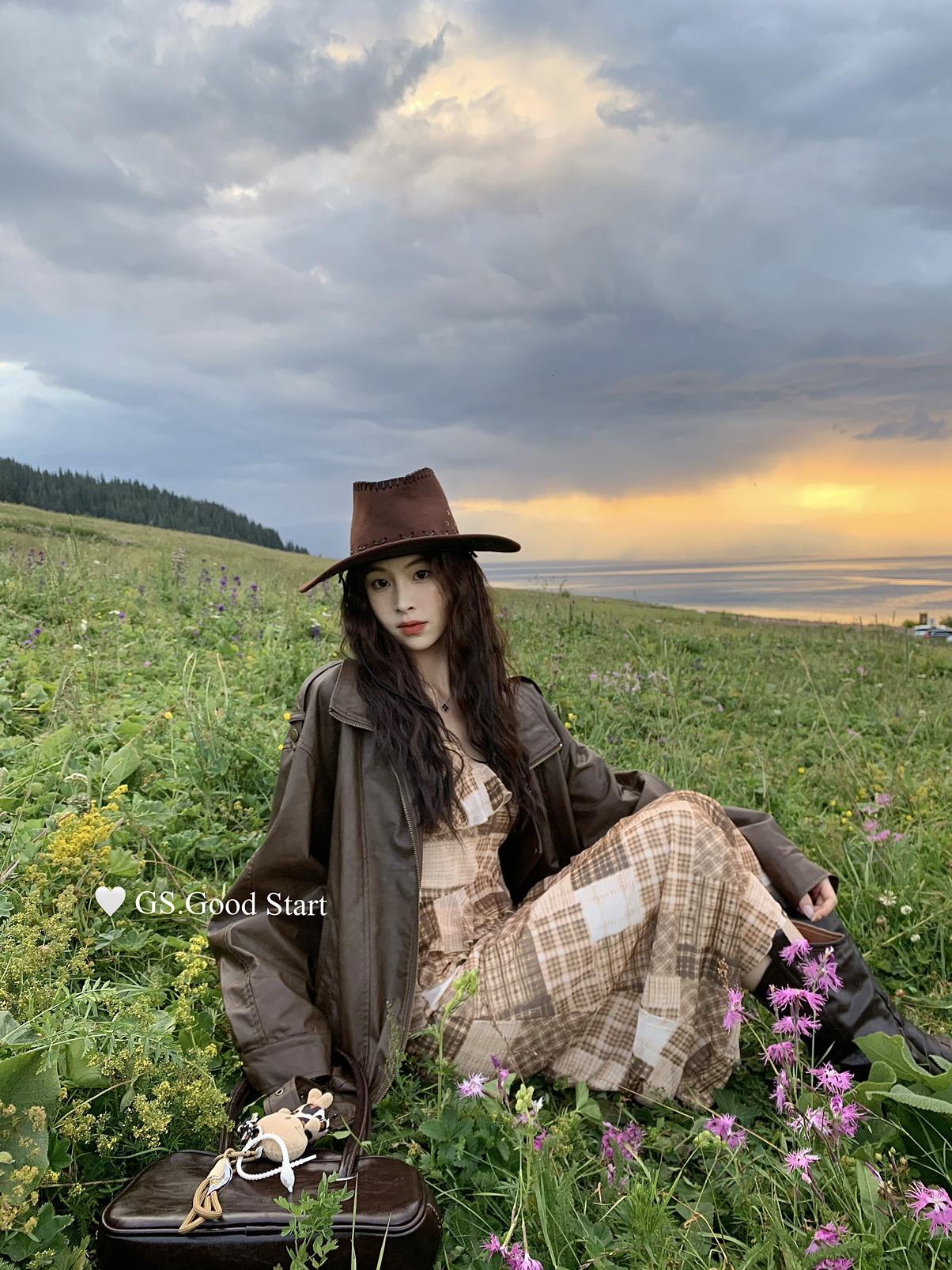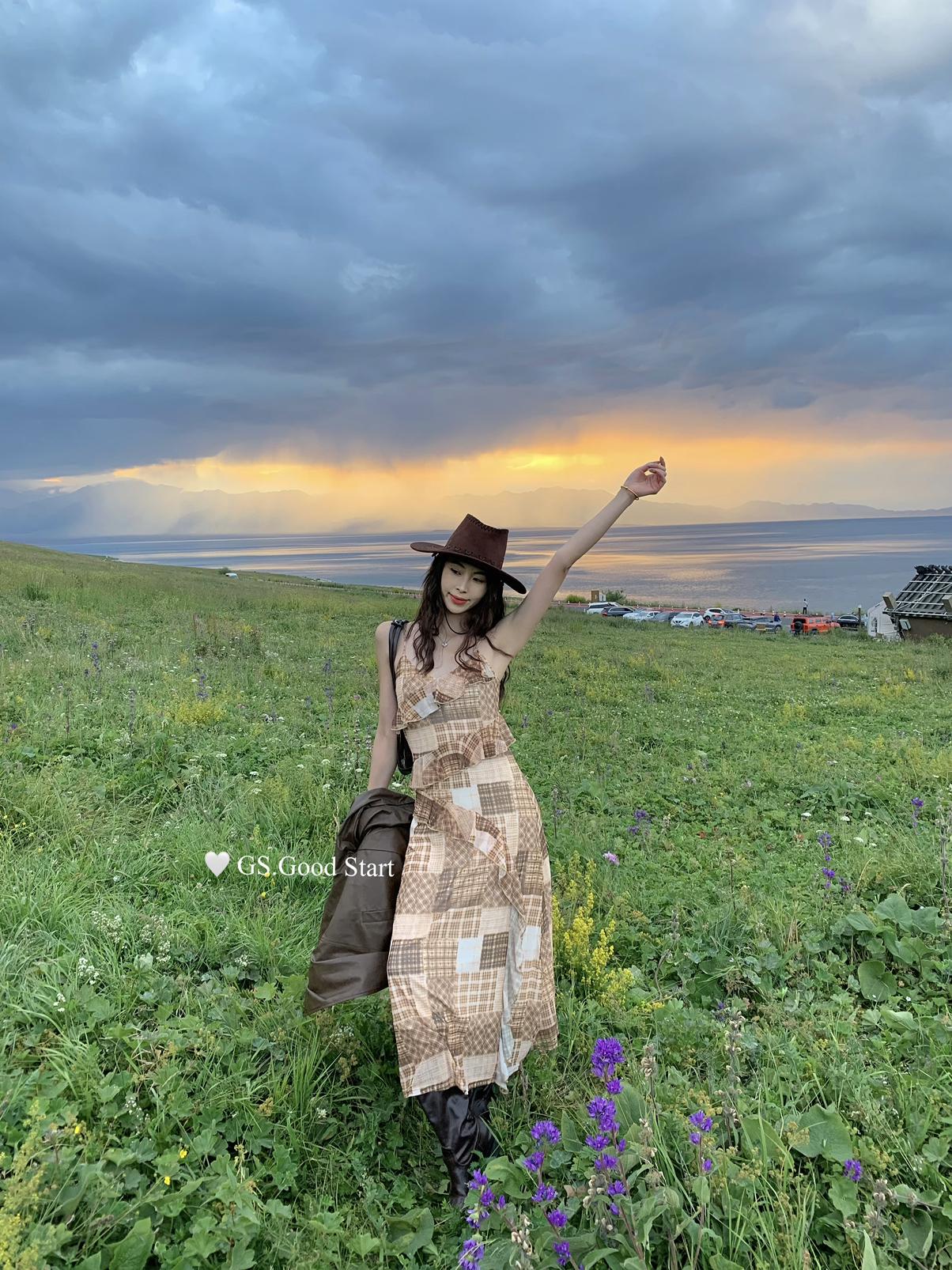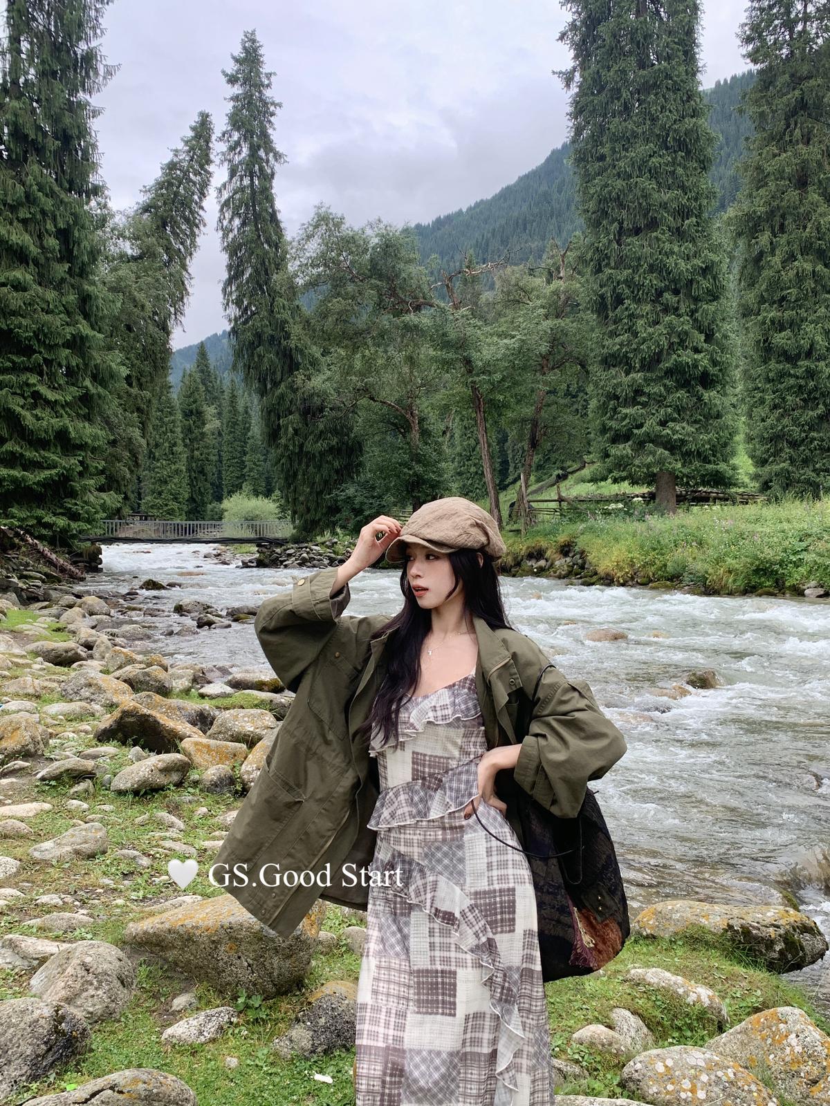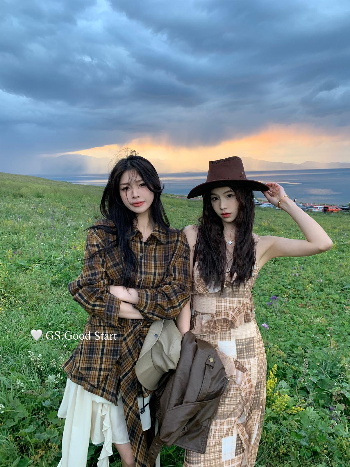 【C6577】自由流浪風~超有feel!秋上新時髦設計感格紋吊帶連衣裙