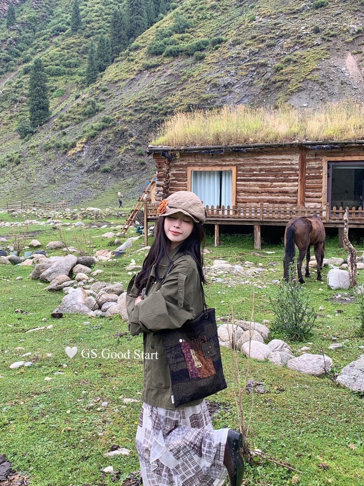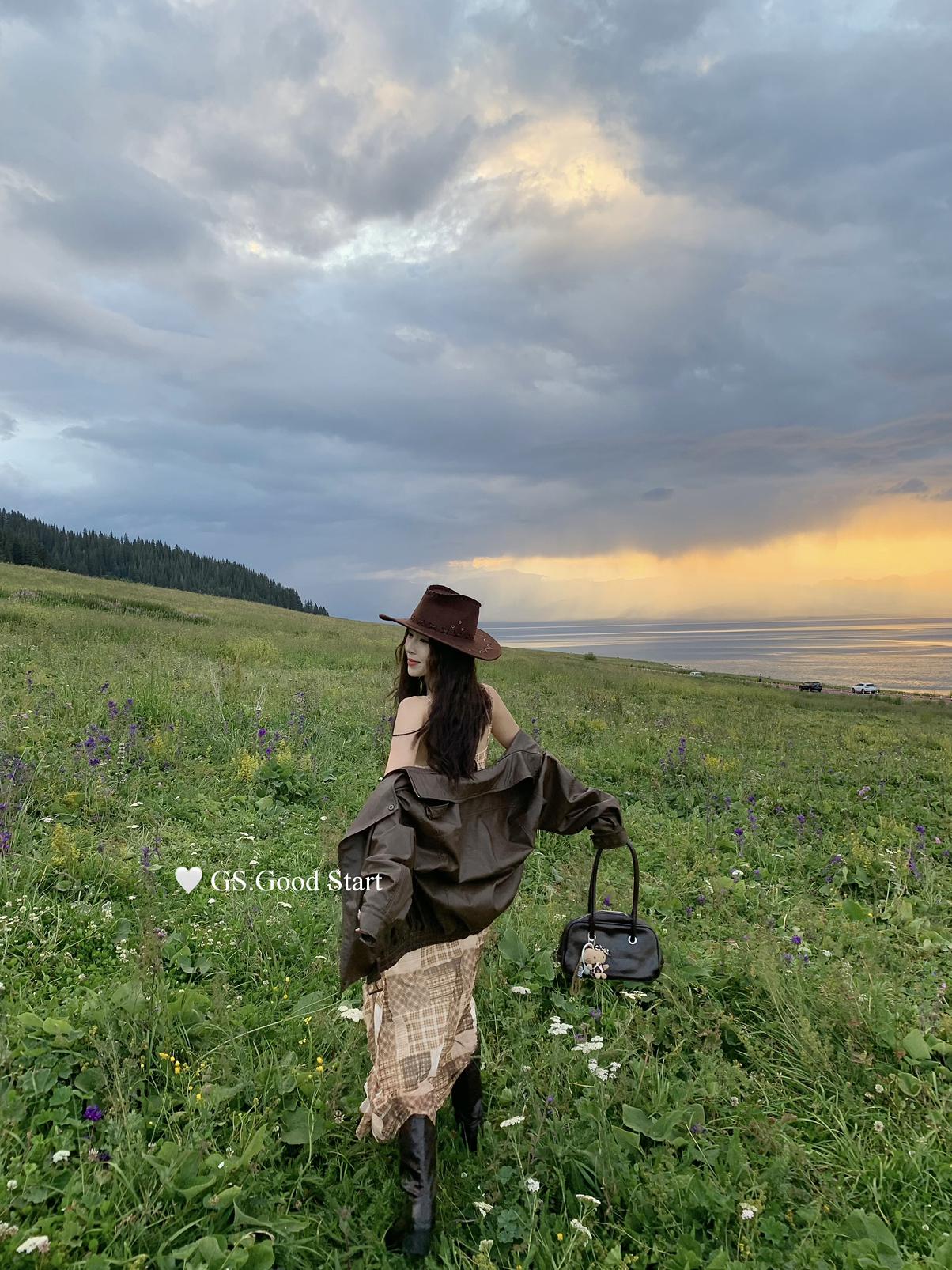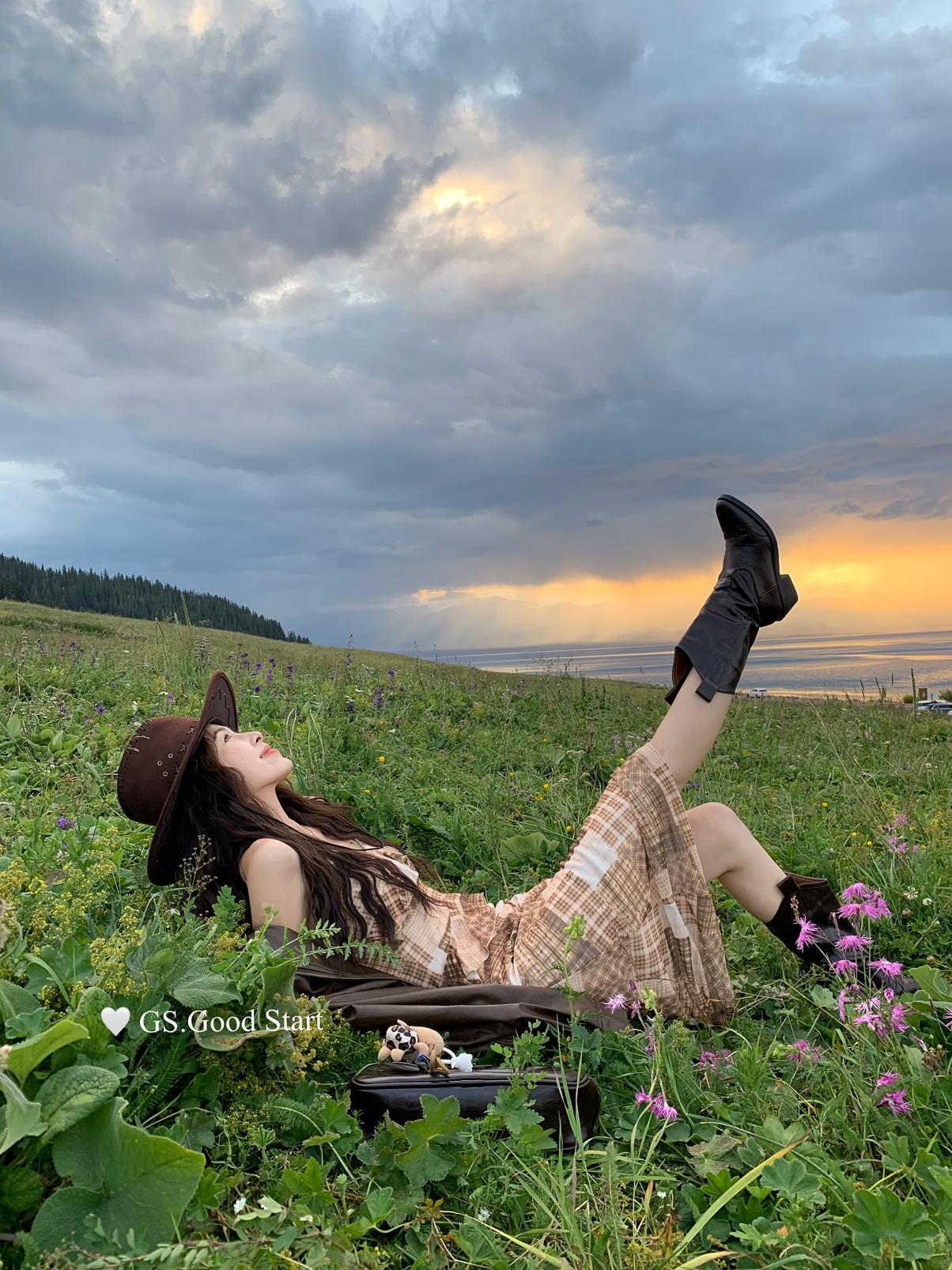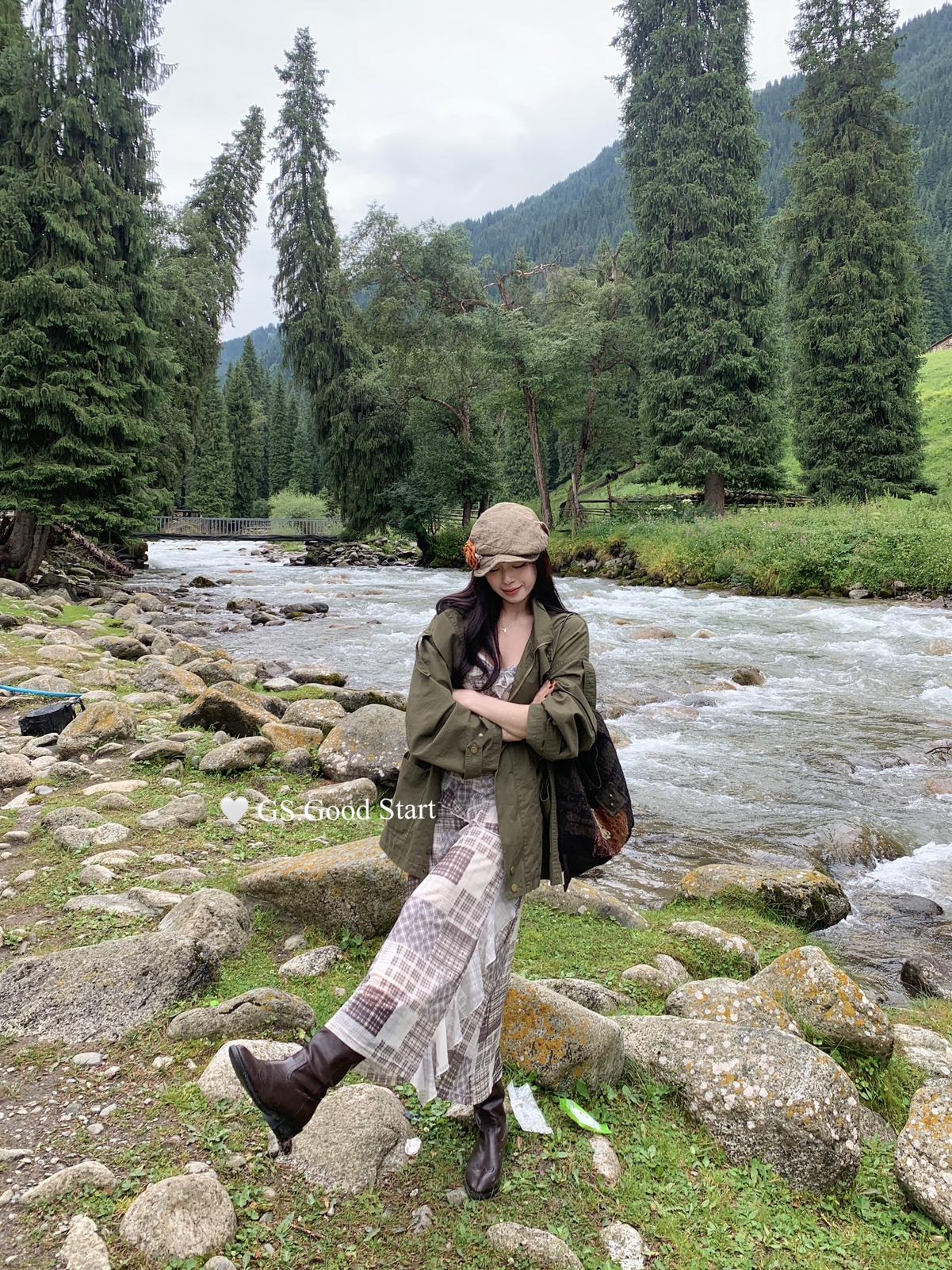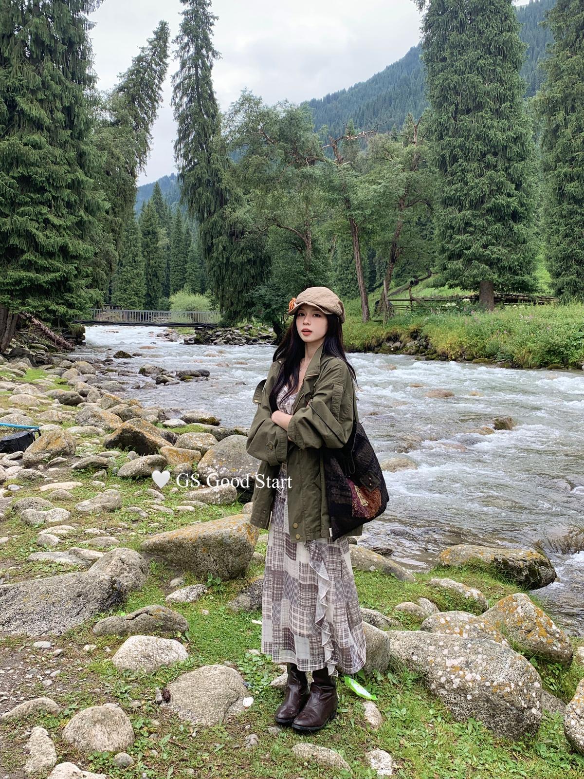 【C6577】自由流浪風~超有feel!秋上新時髦設計感格紋吊帶連衣裙