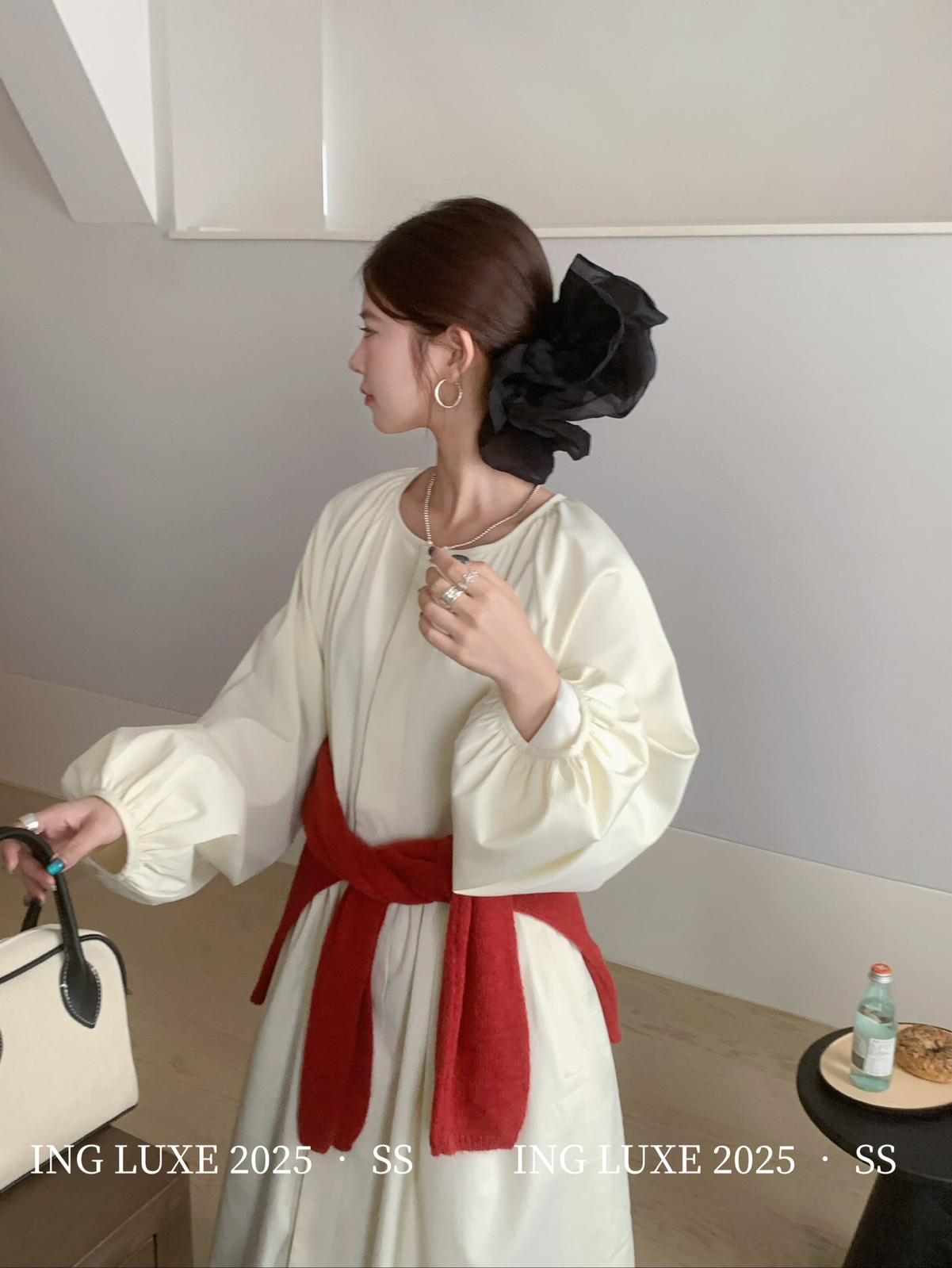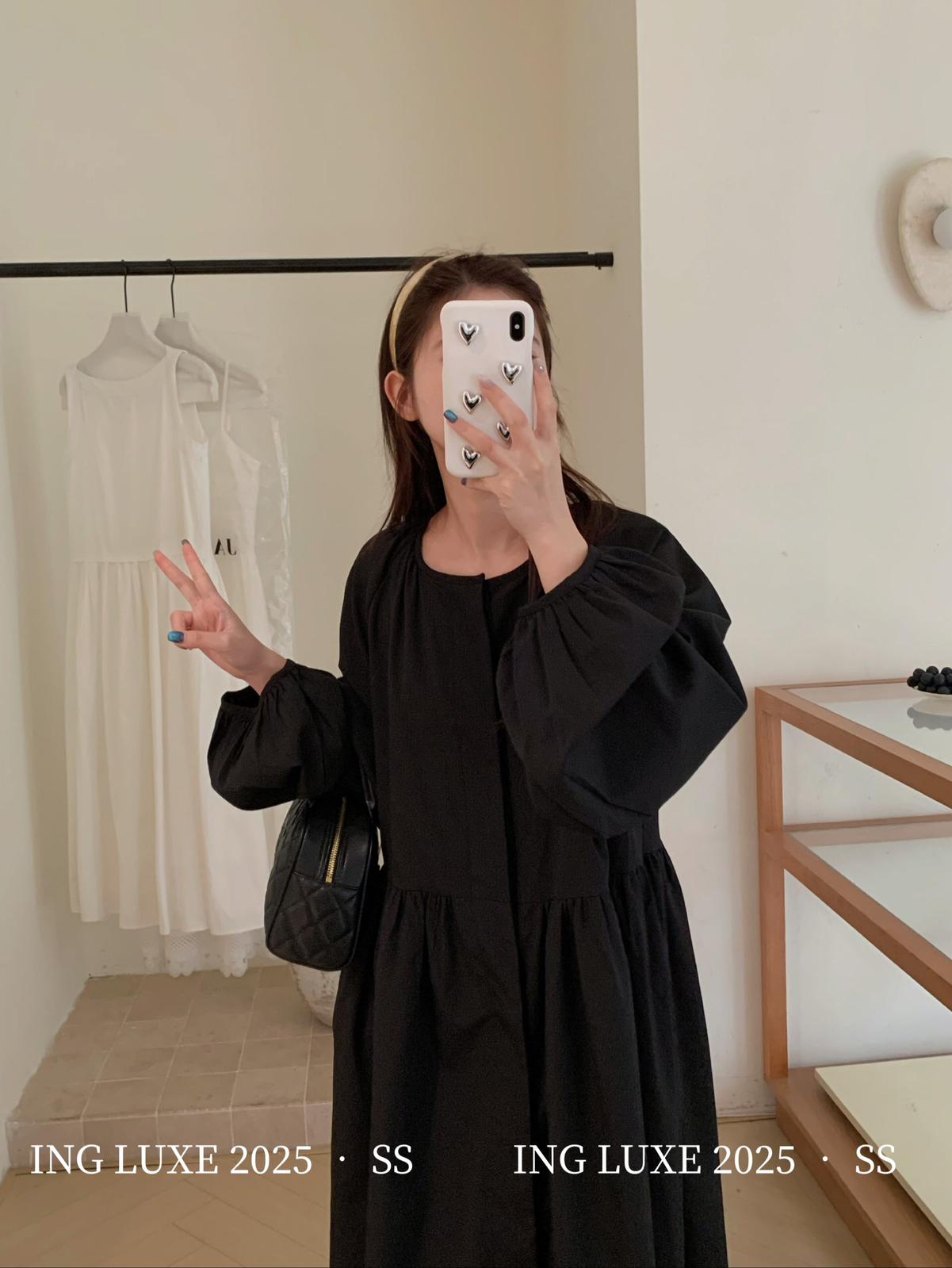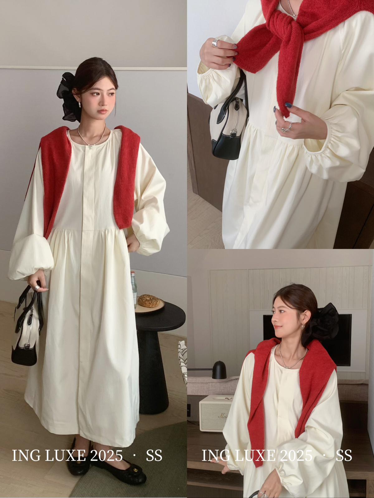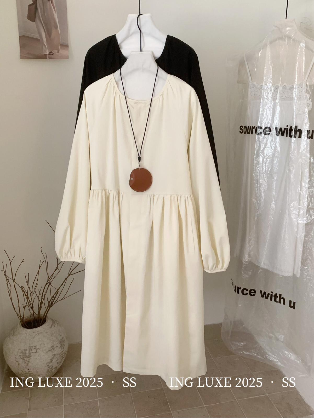 【C6992】溫柔甜美風長袖女秋季新款減齡寬鬆顯瘦百搭泡泡袖長款連衣裙