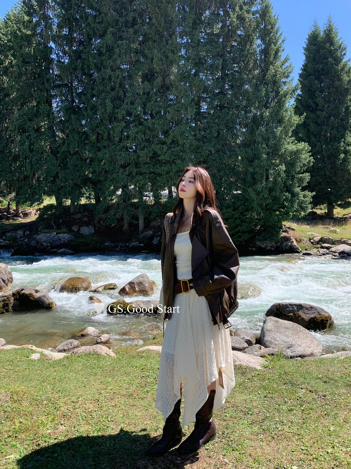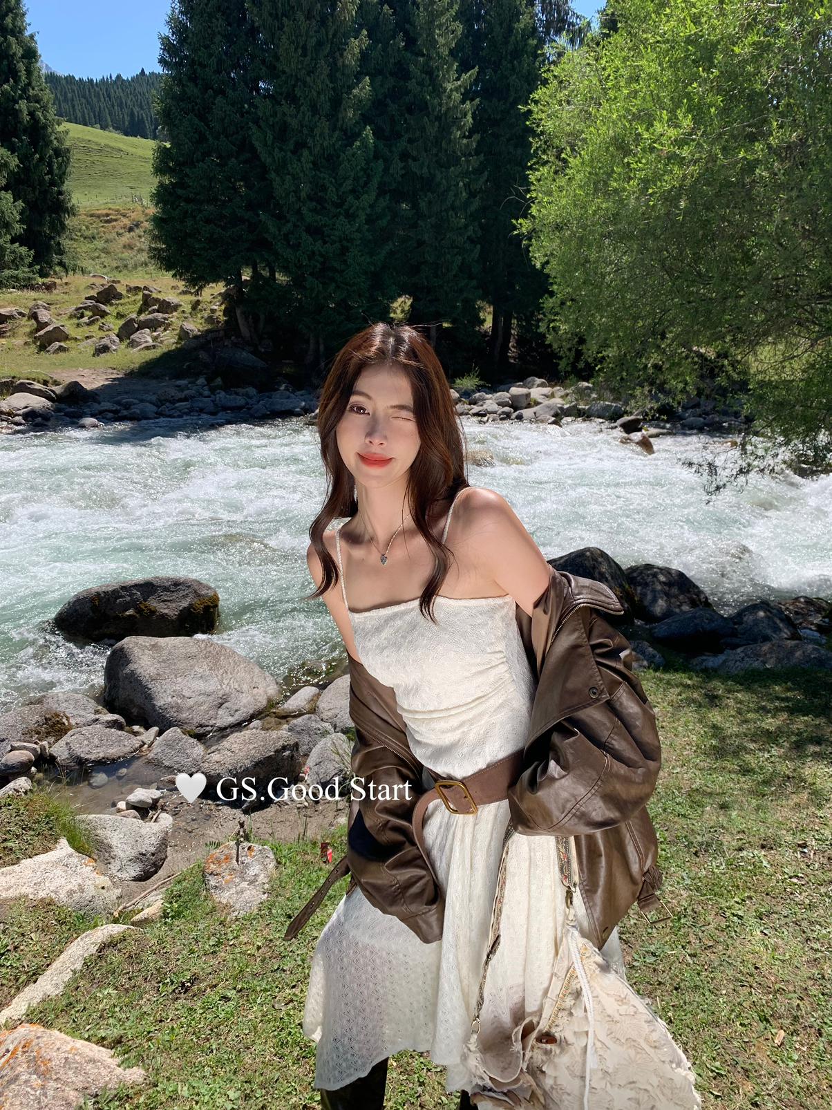 3. 【C7687】zui愛波嬉!誰穿誰好看~秋上新復古重工蕾絲不規則吊帶連衣裙(不配腰帶)