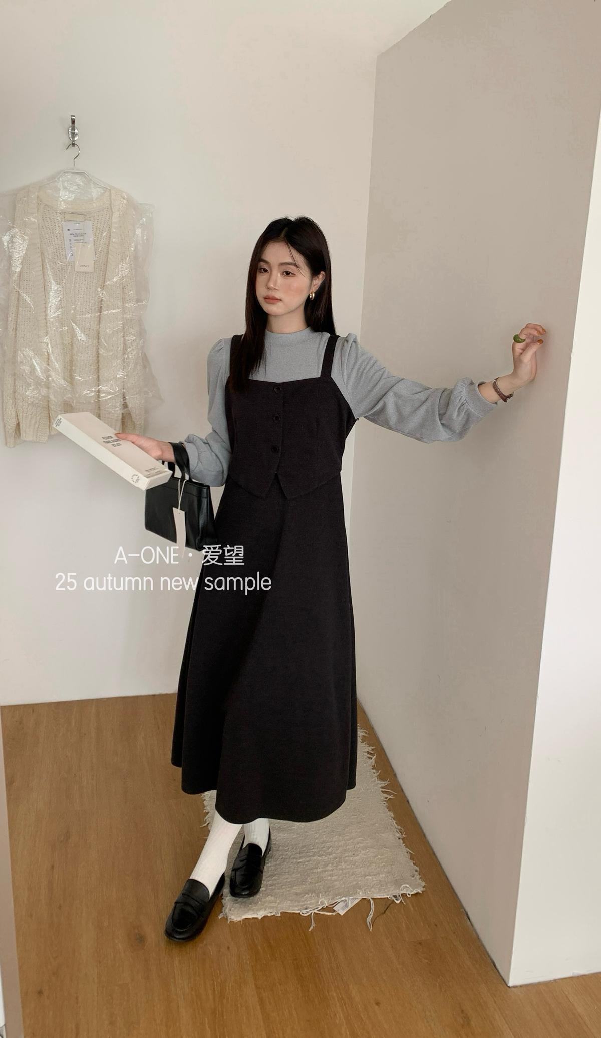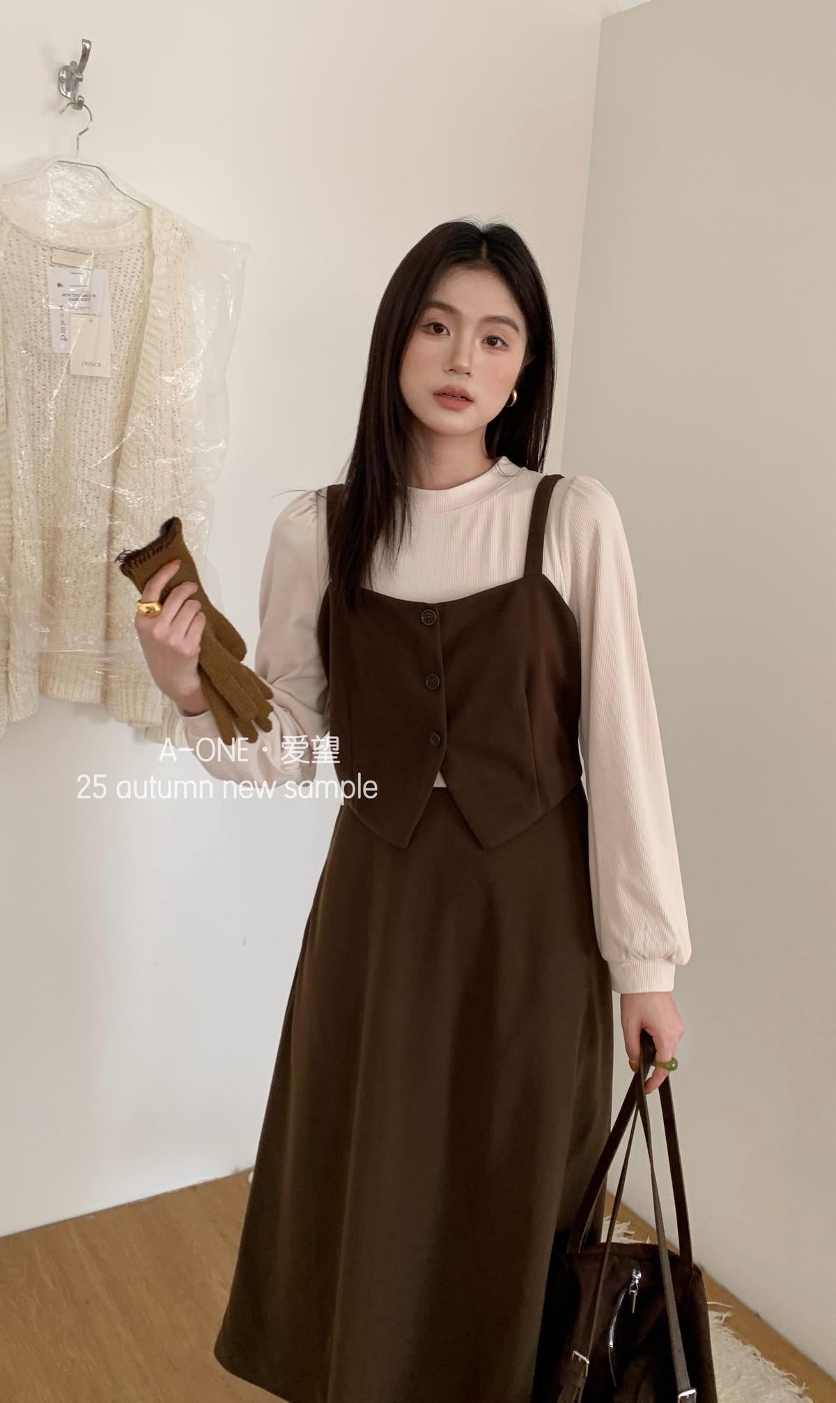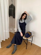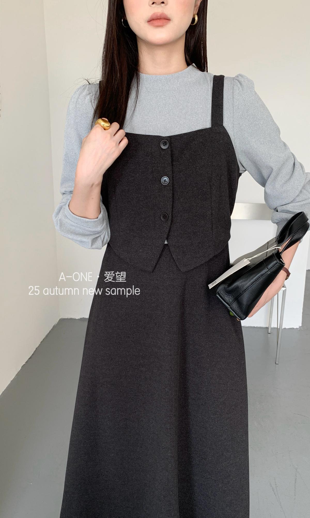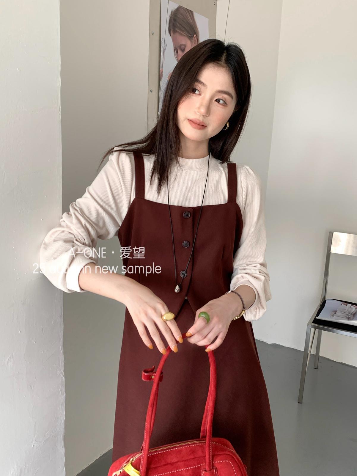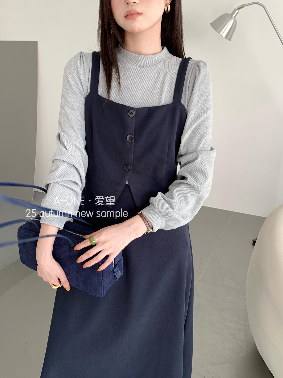 3. 【C7694】復古法式氣質假兩件經典連衣裙