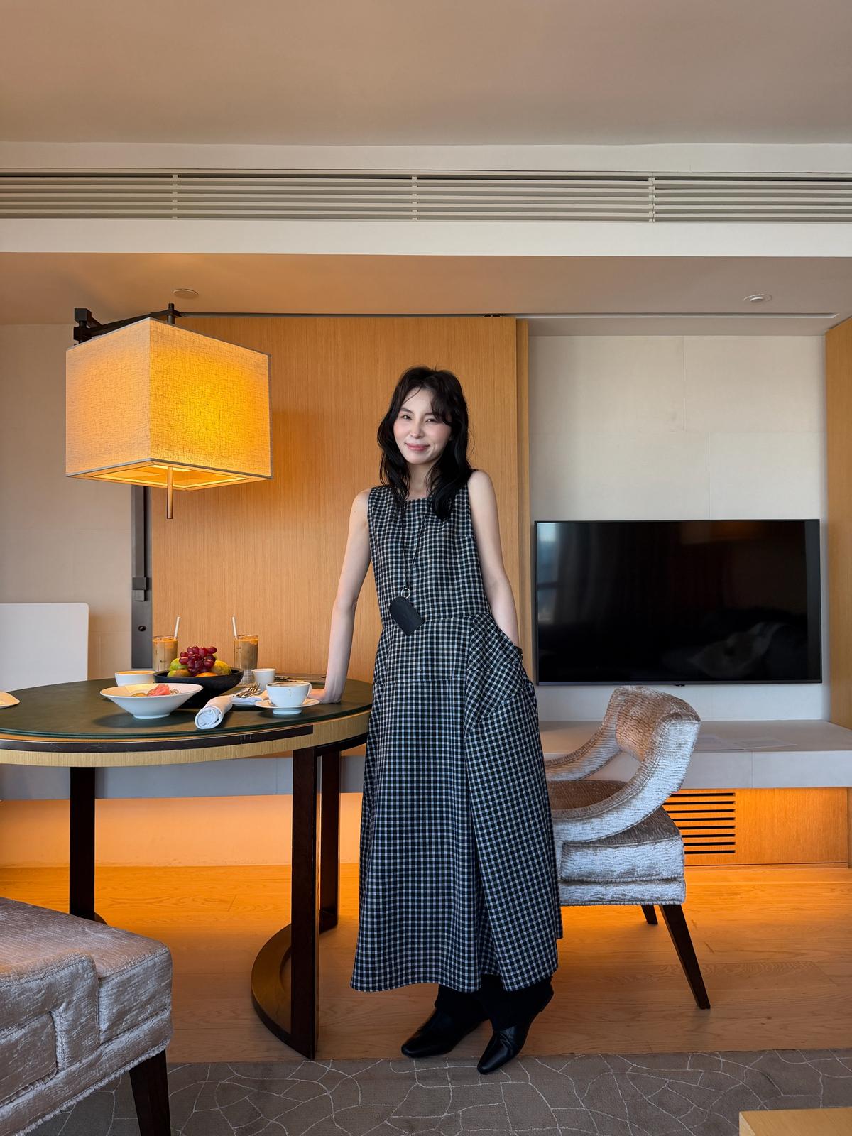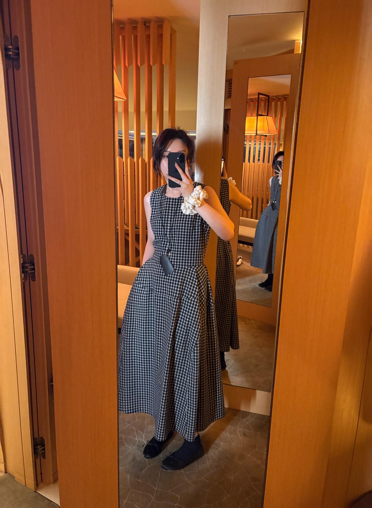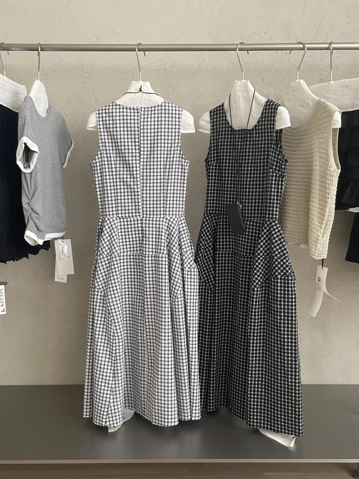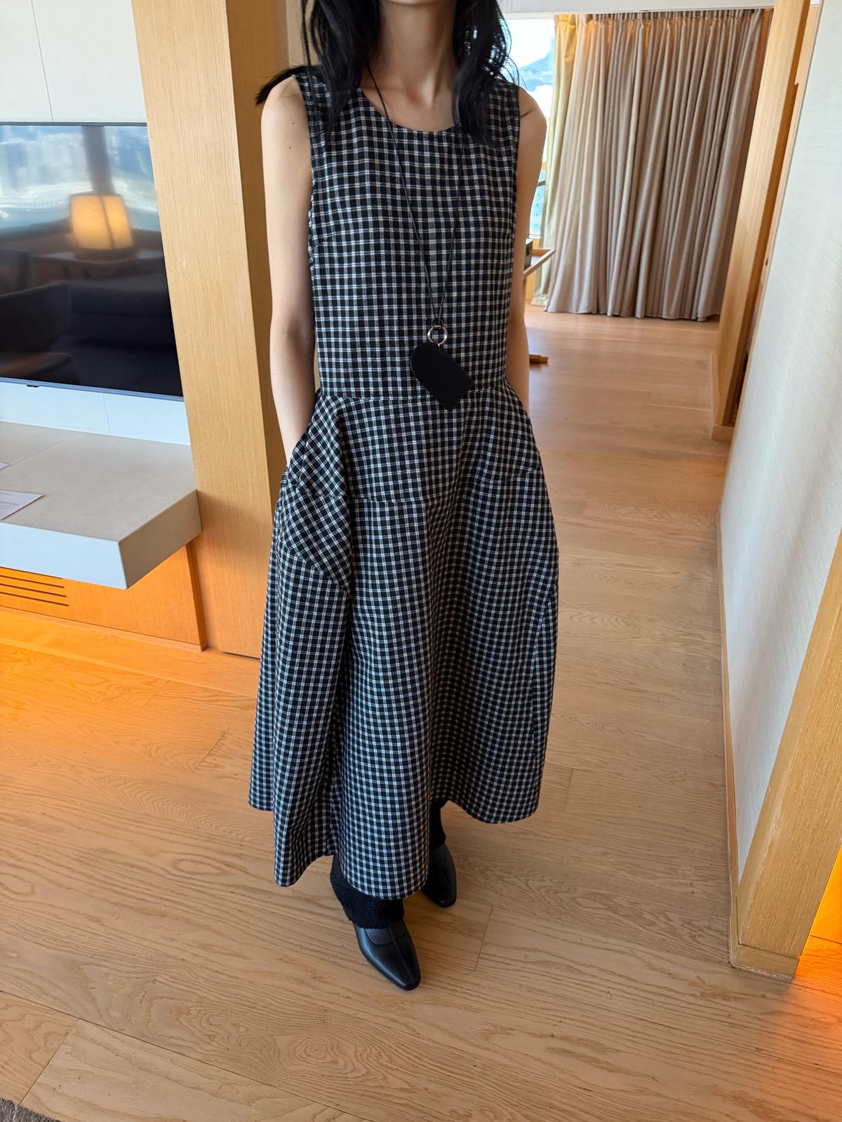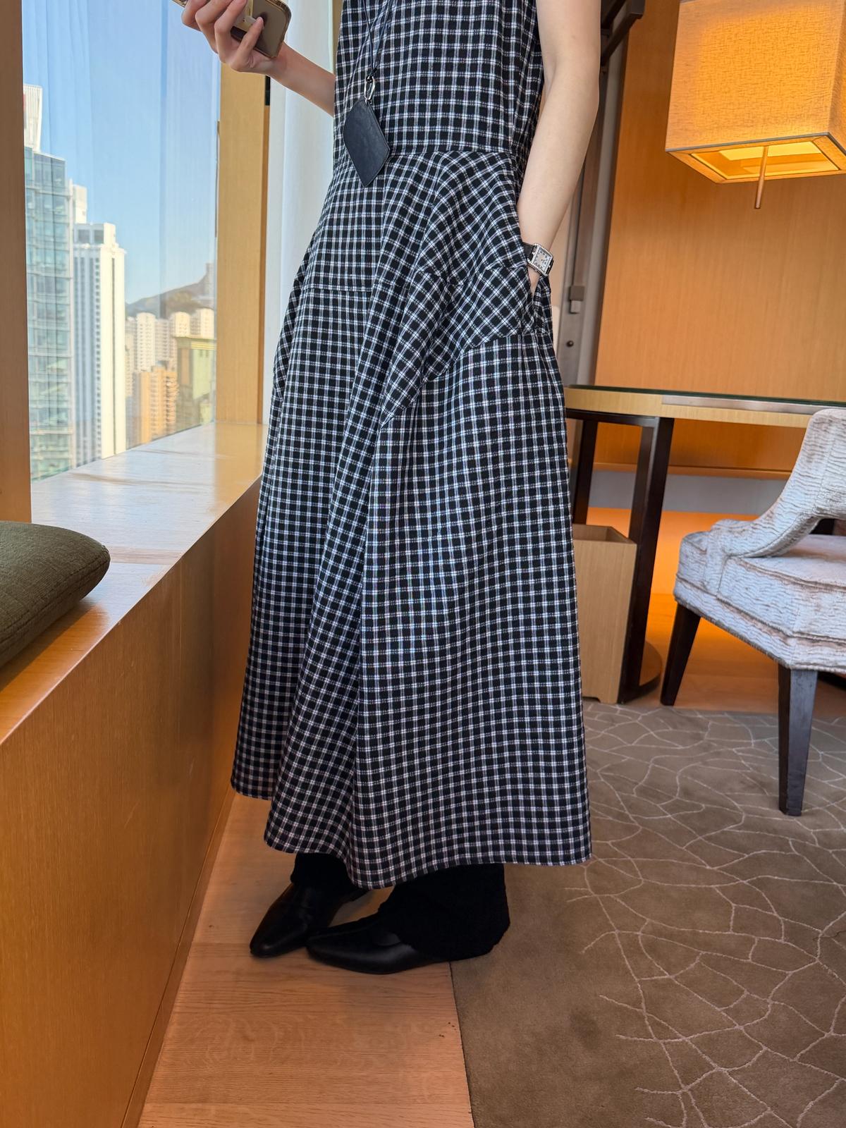 3. 【C8988】韓系時尚格子背心大擺連衣裙(配掛包)