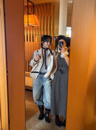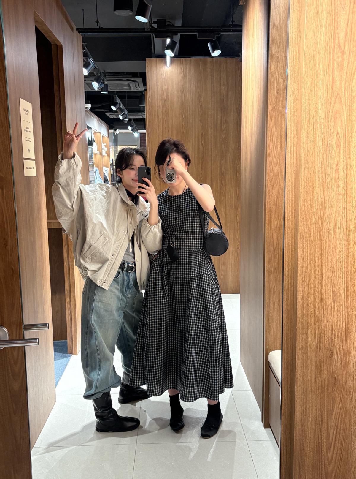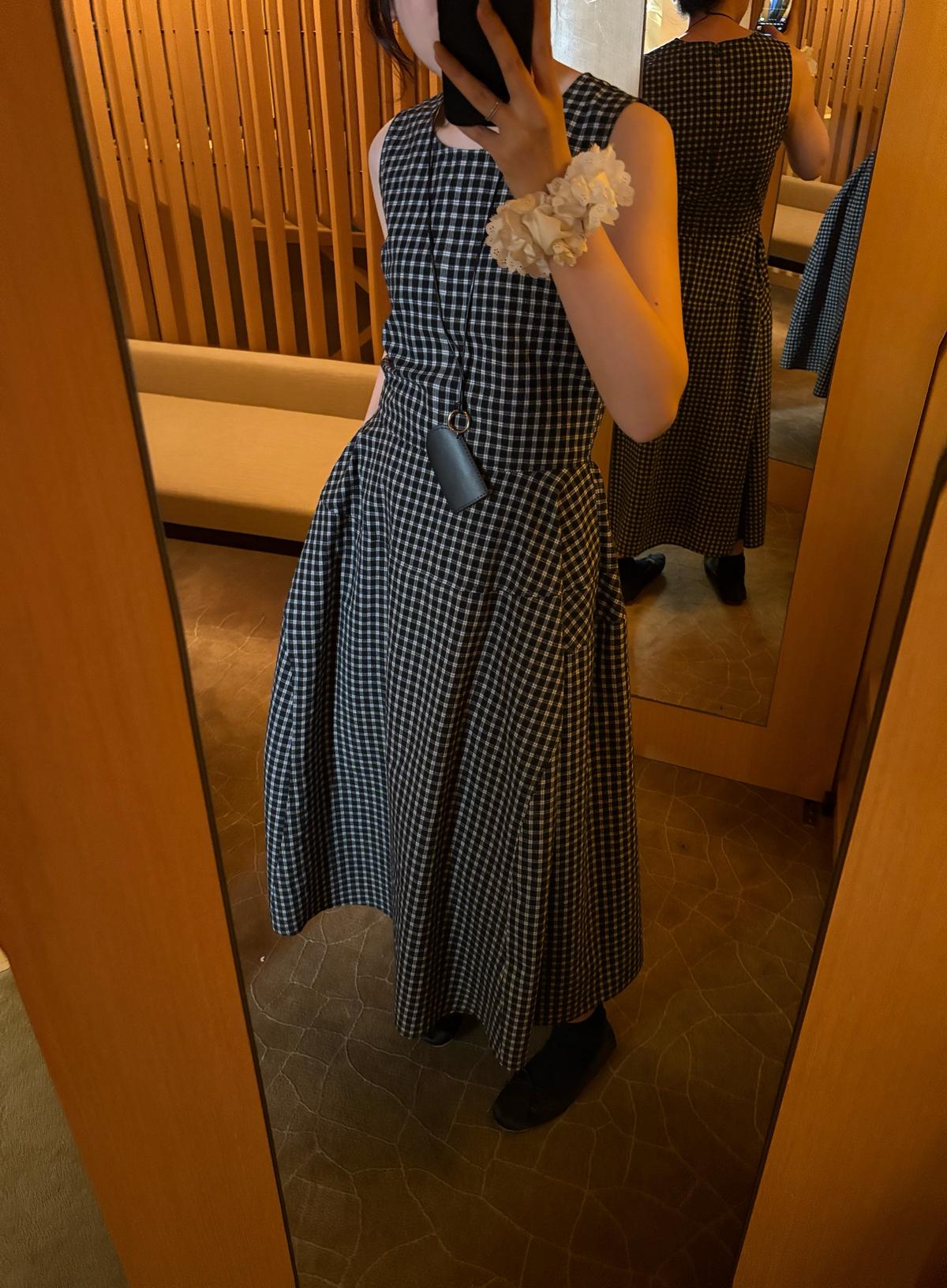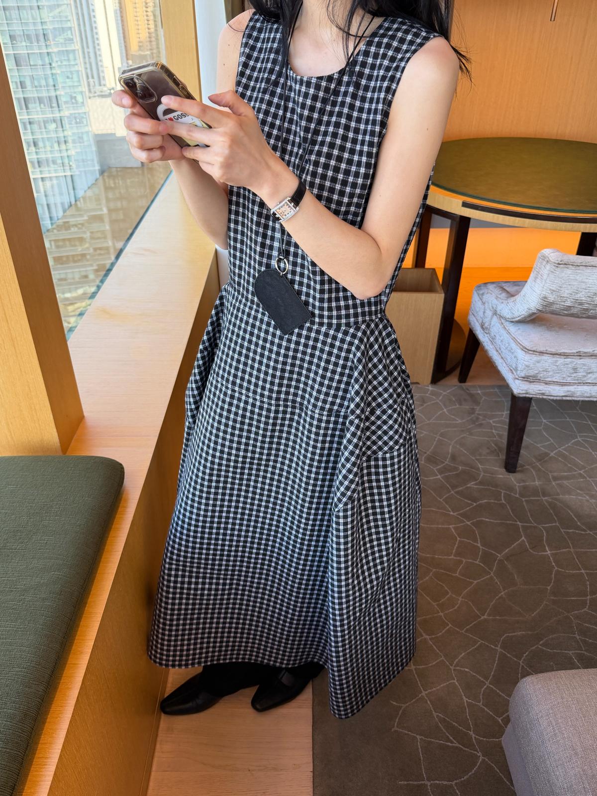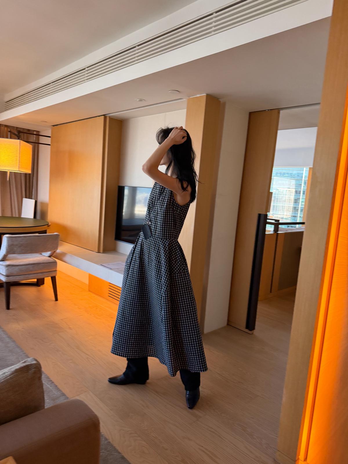 【C8988】韓系時尚格子背心大擺連衣裙(配掛包)