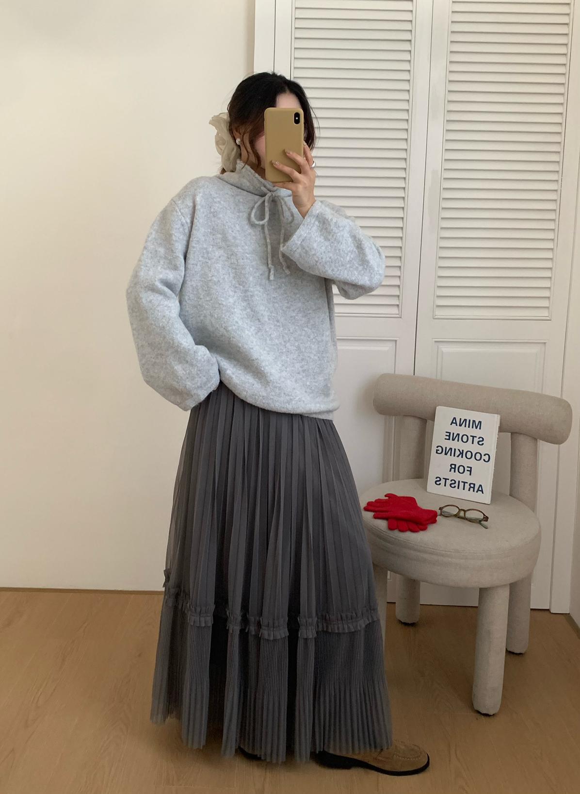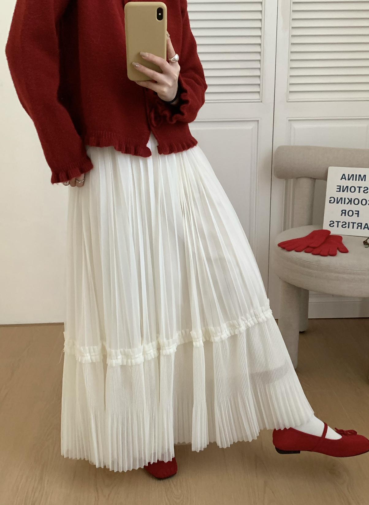 【C8267】韓系甜美風蕾絲花邊高腰針織半身裙秋冬設計感百褶裙A字短裙半身裙