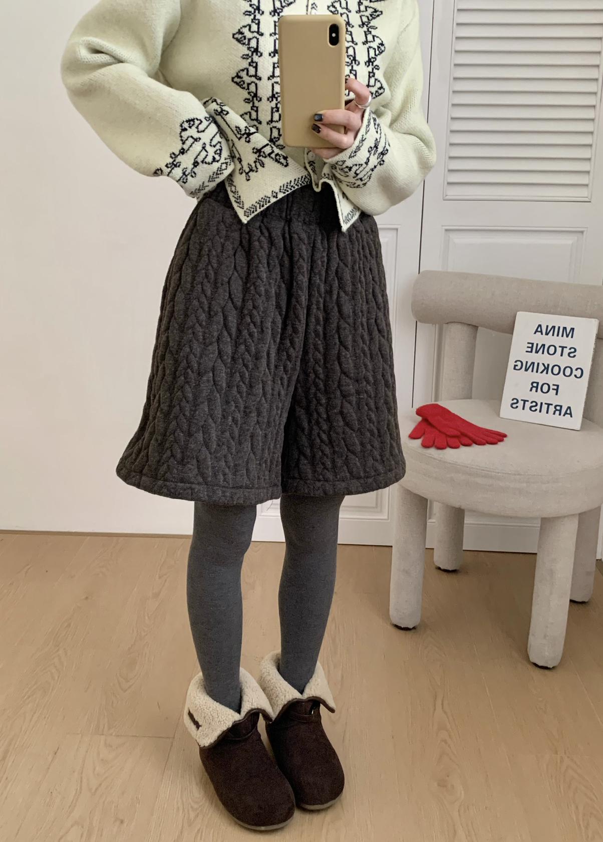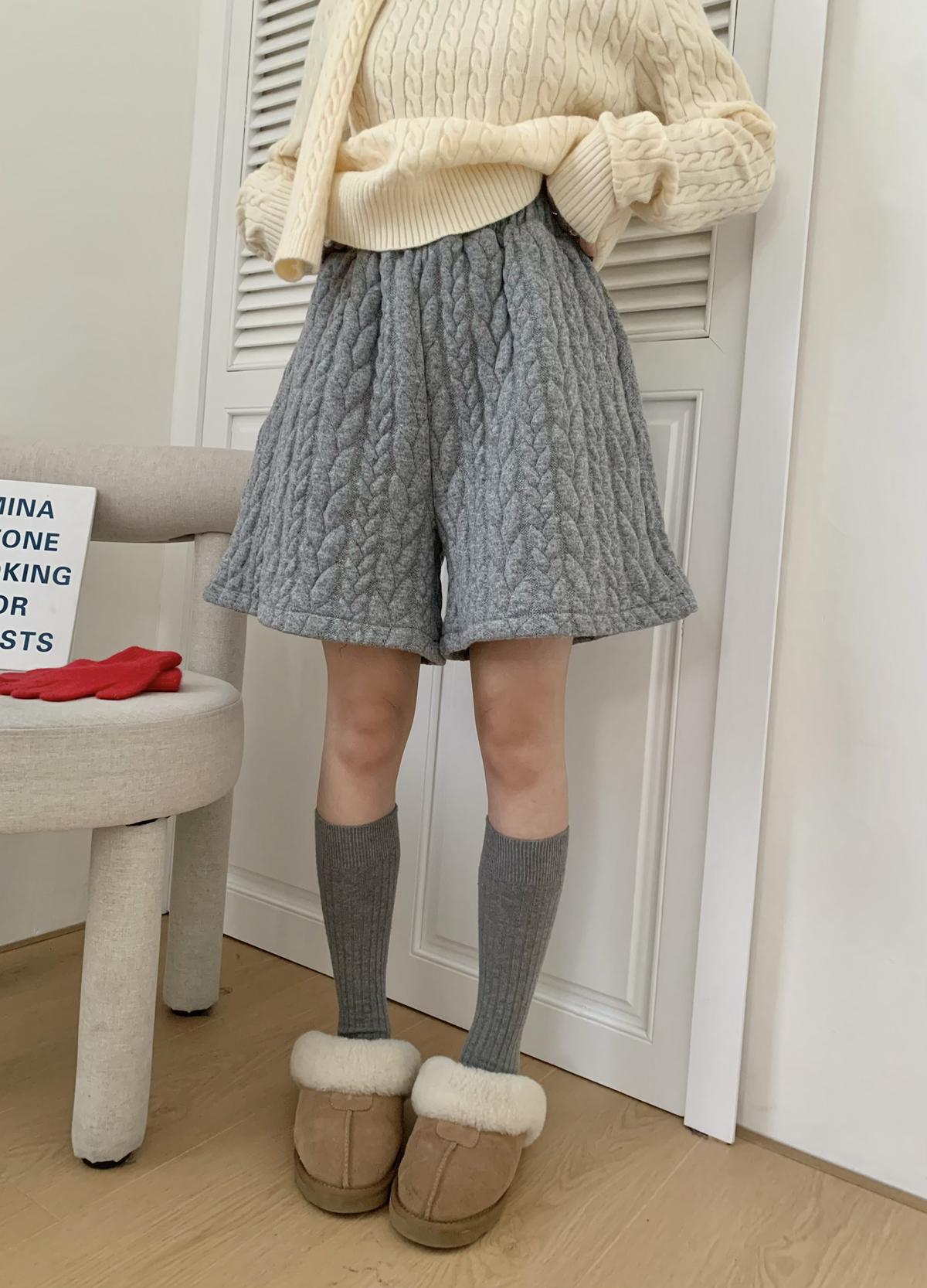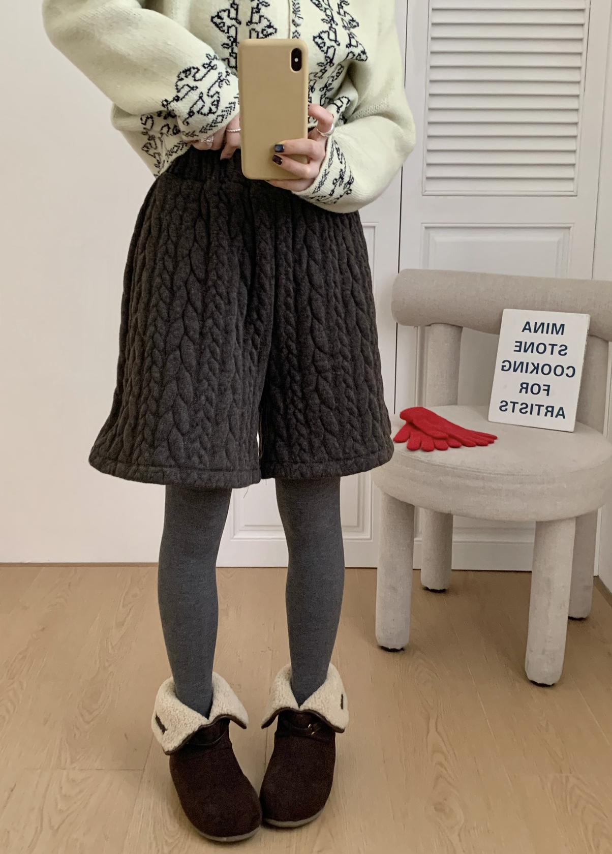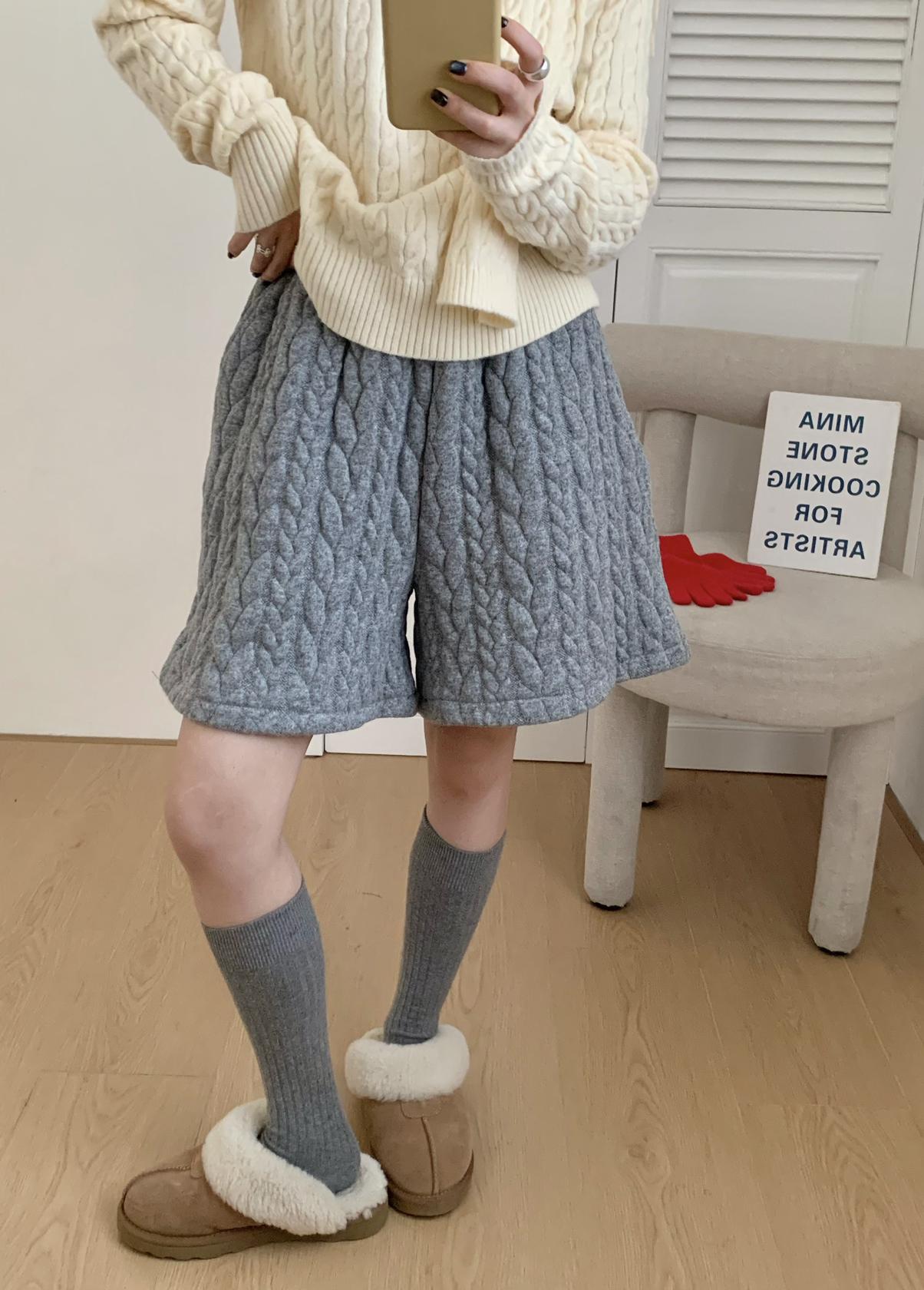 【C8137】2025冬季新款時尚百搭鬆緊腰女後背假口袋寬鬆麻花休閒短褲