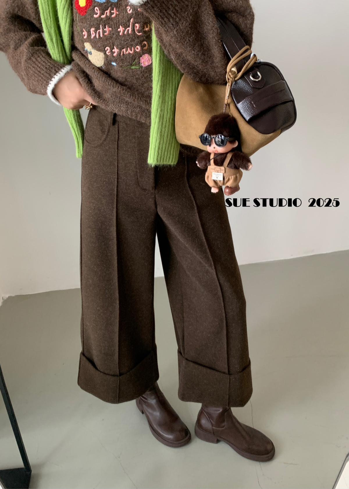 【C8299】韓系高腰舒適闊腿加絨百搭休閒褲(配腰帶)