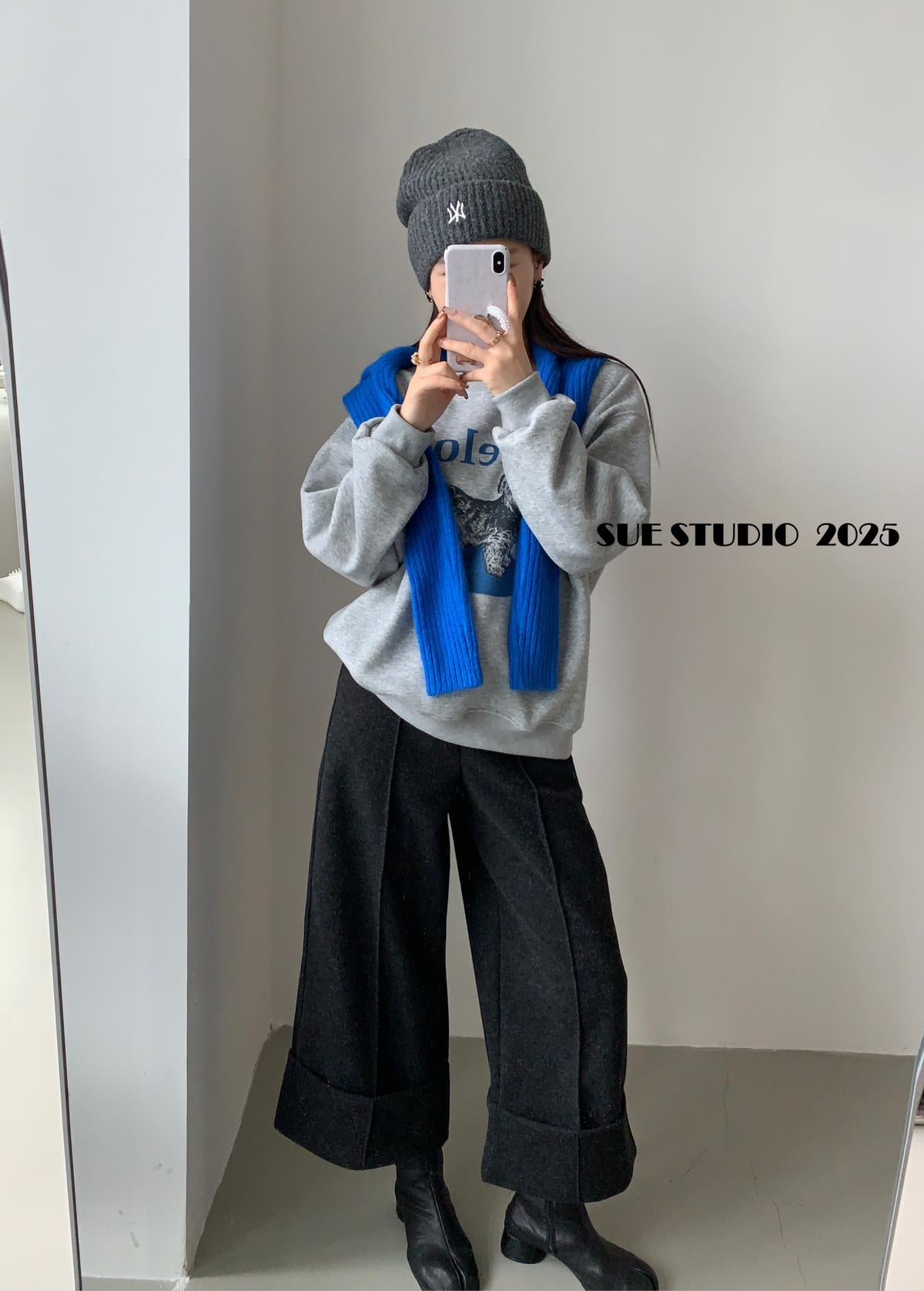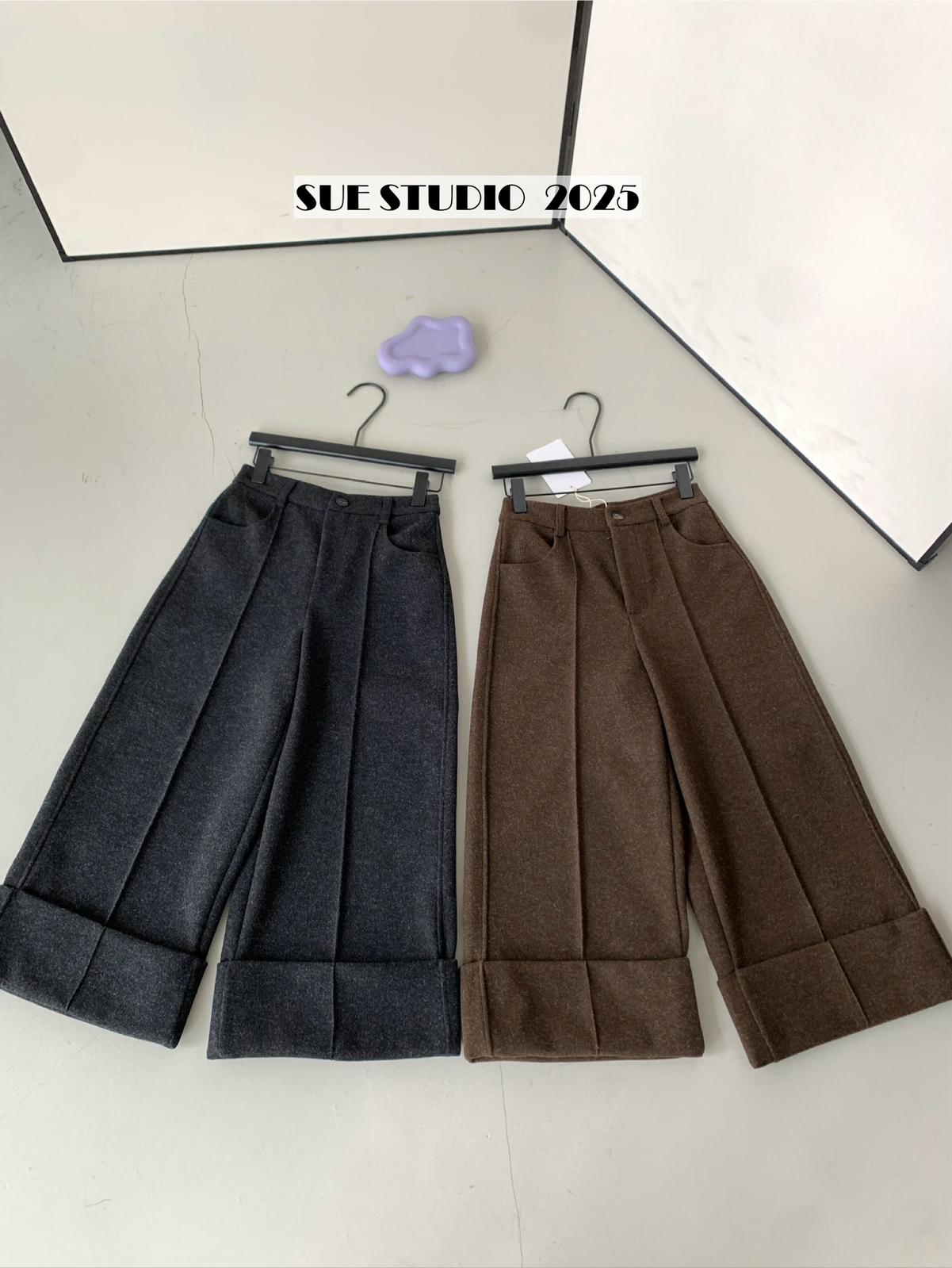 【C8198】勾勒迷人風姿韓系冬日層疊壓褶屁簾微喇闊腿休閒褲
