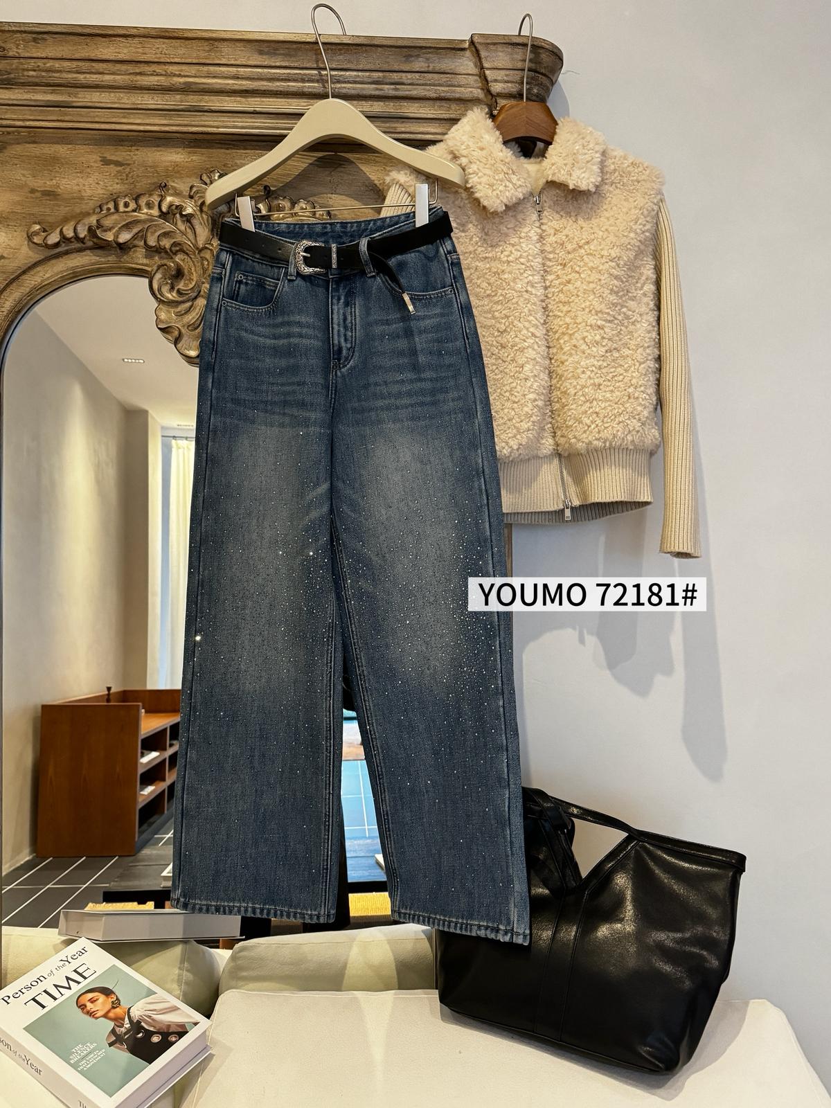 【C8145】輕奢燙鑽設計闊腿褲牛仔褲(配腰帶)