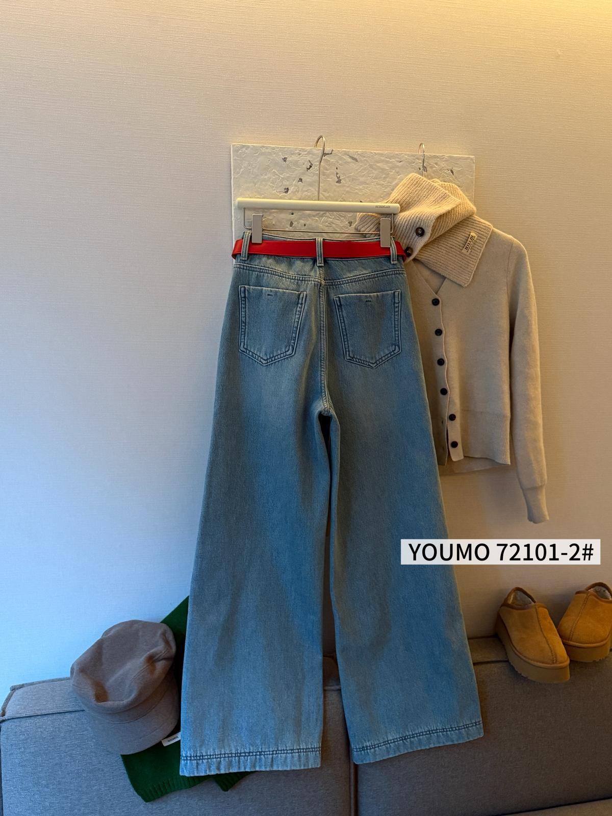 【C8187】微喇叭加絨口袋顯瘦牛仔褲(配腰帶掛件)