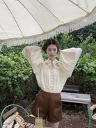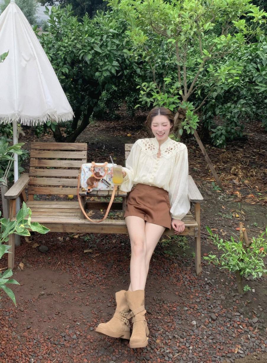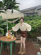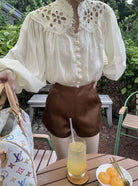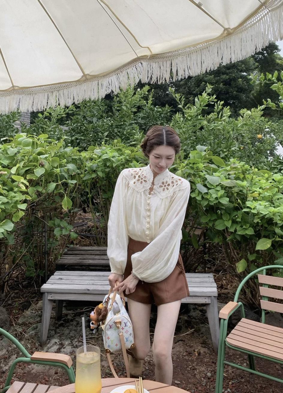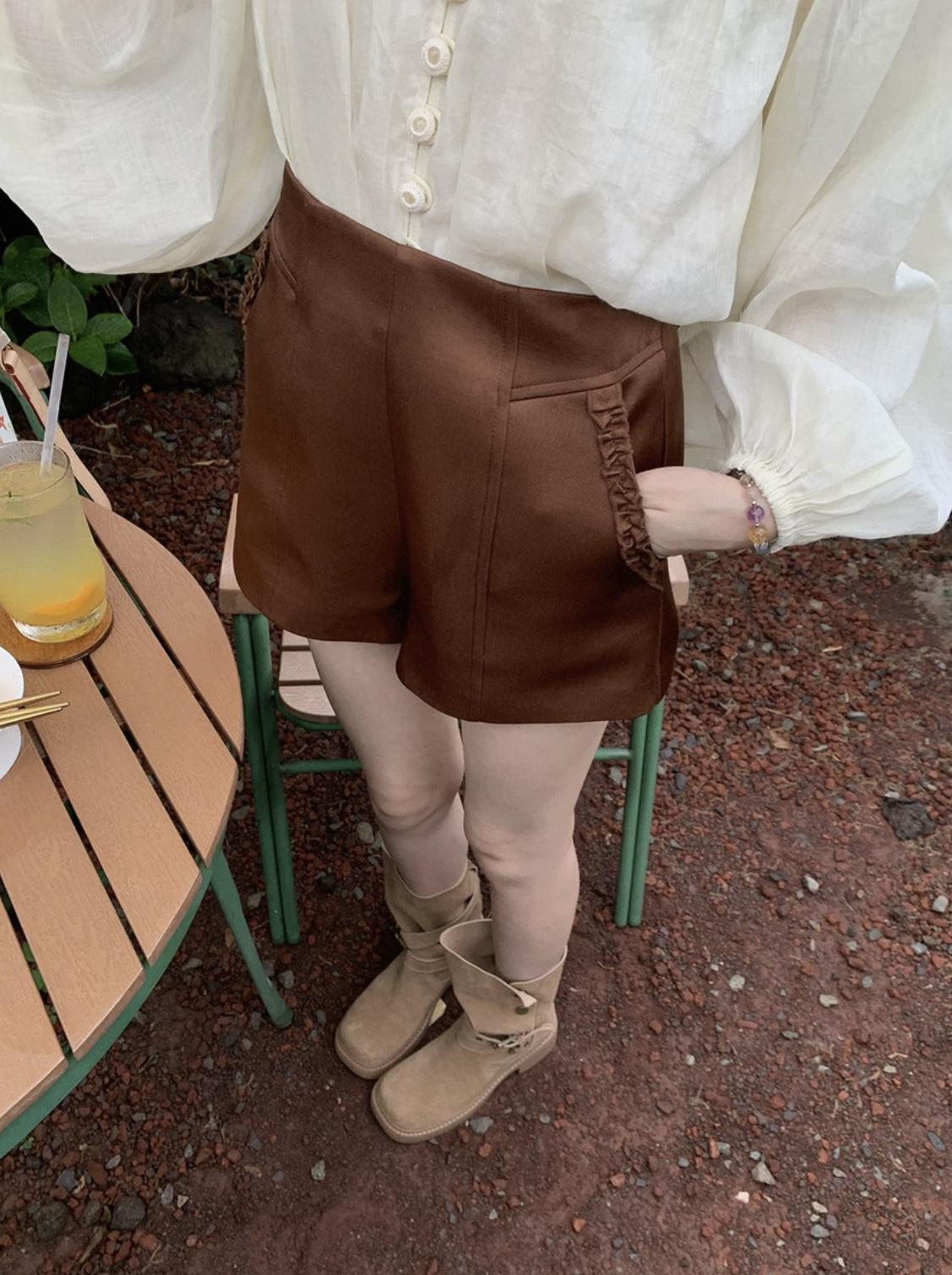3. 【C7033】法式復古百搭高級感高腰花邊拼接設計寬鬆闊腿休閒短褲