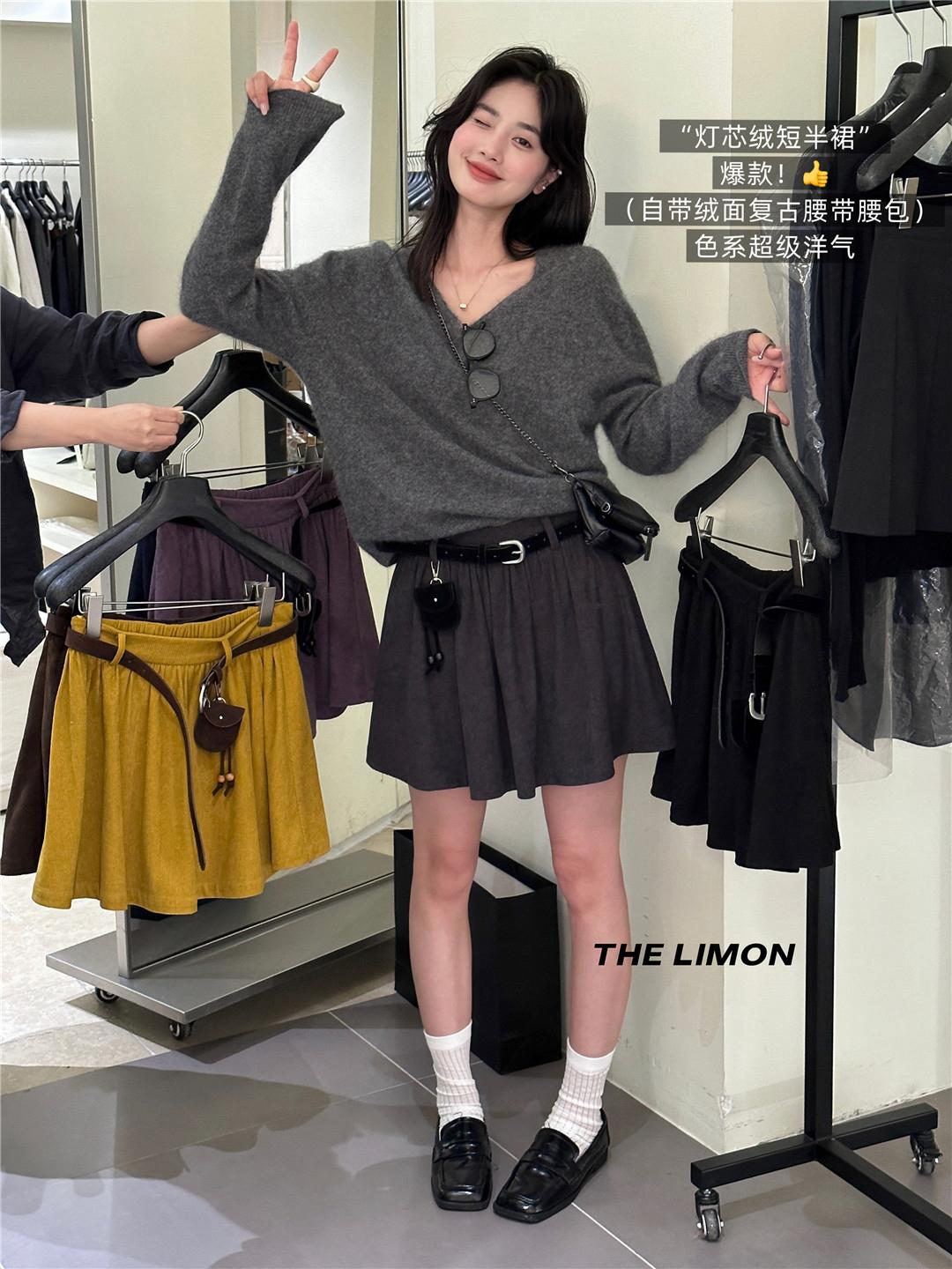 3. 【C7104】重工百搭鬆緊顯瘦燈芯絨半身裙(配腰帶)
