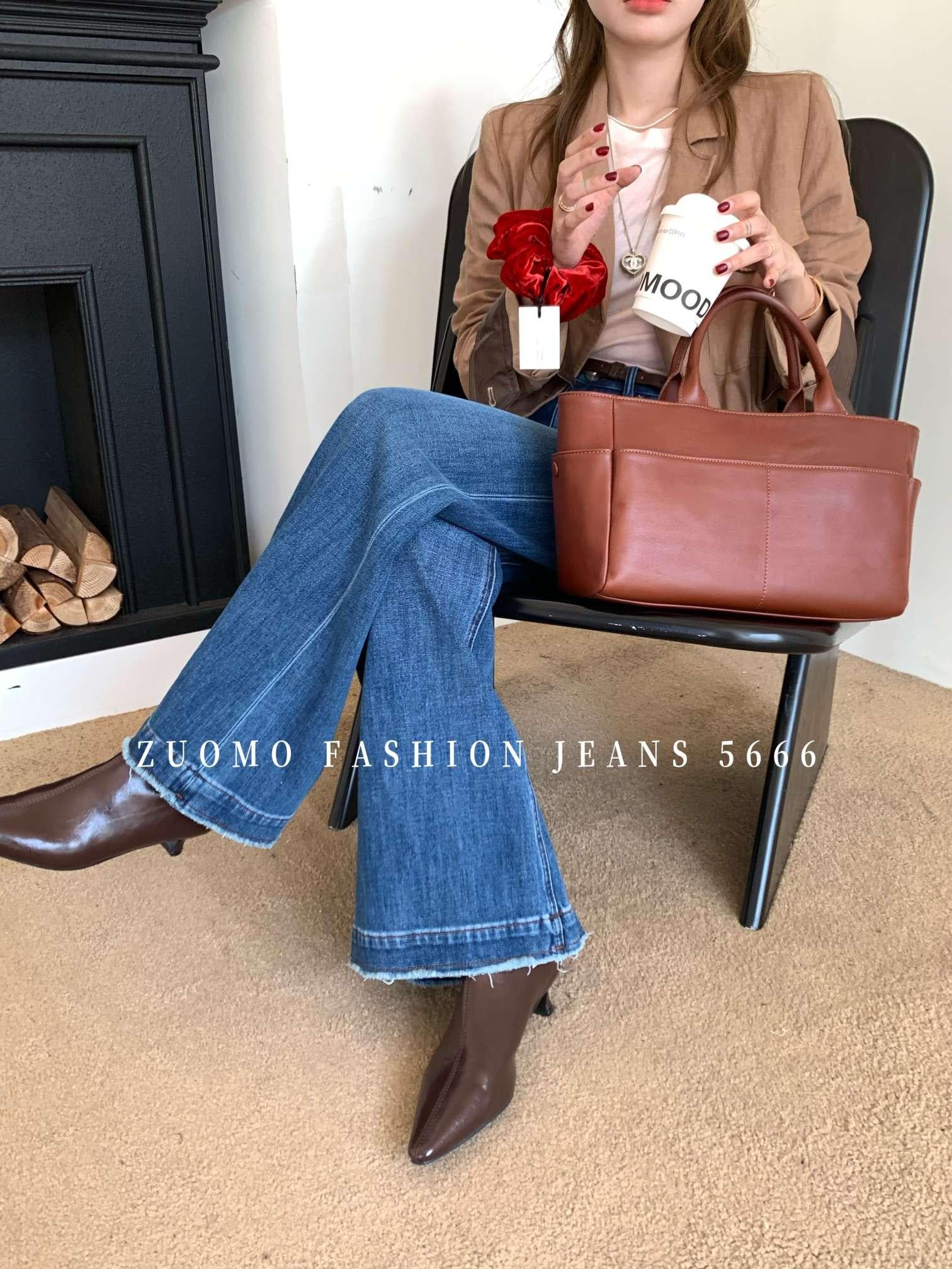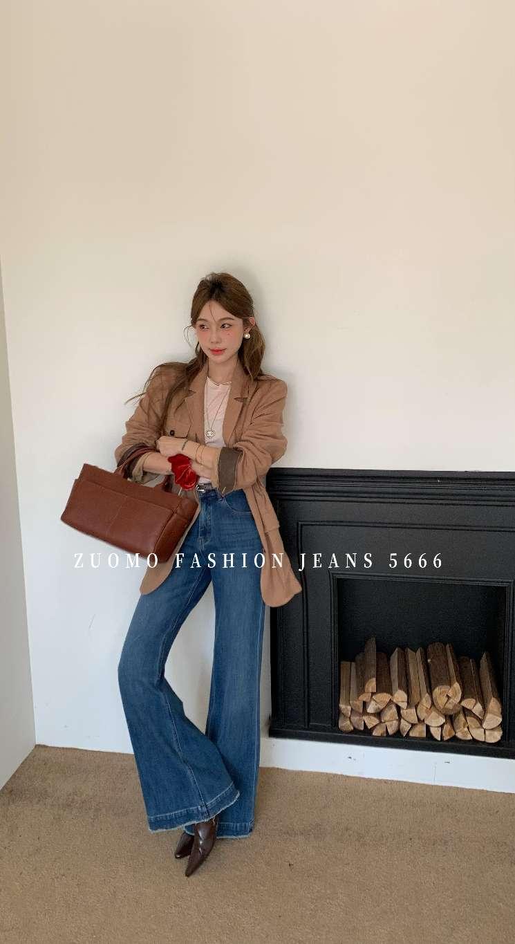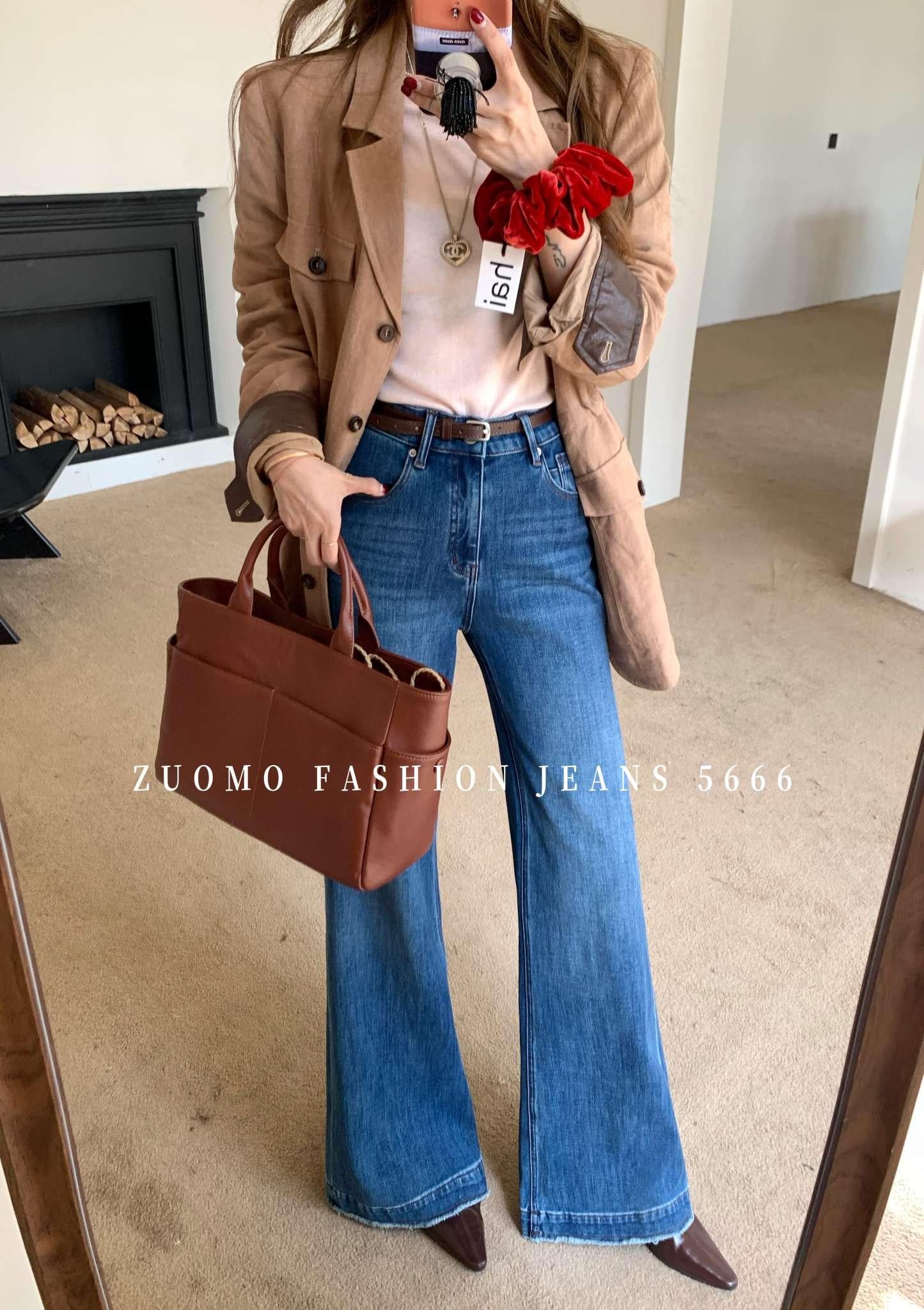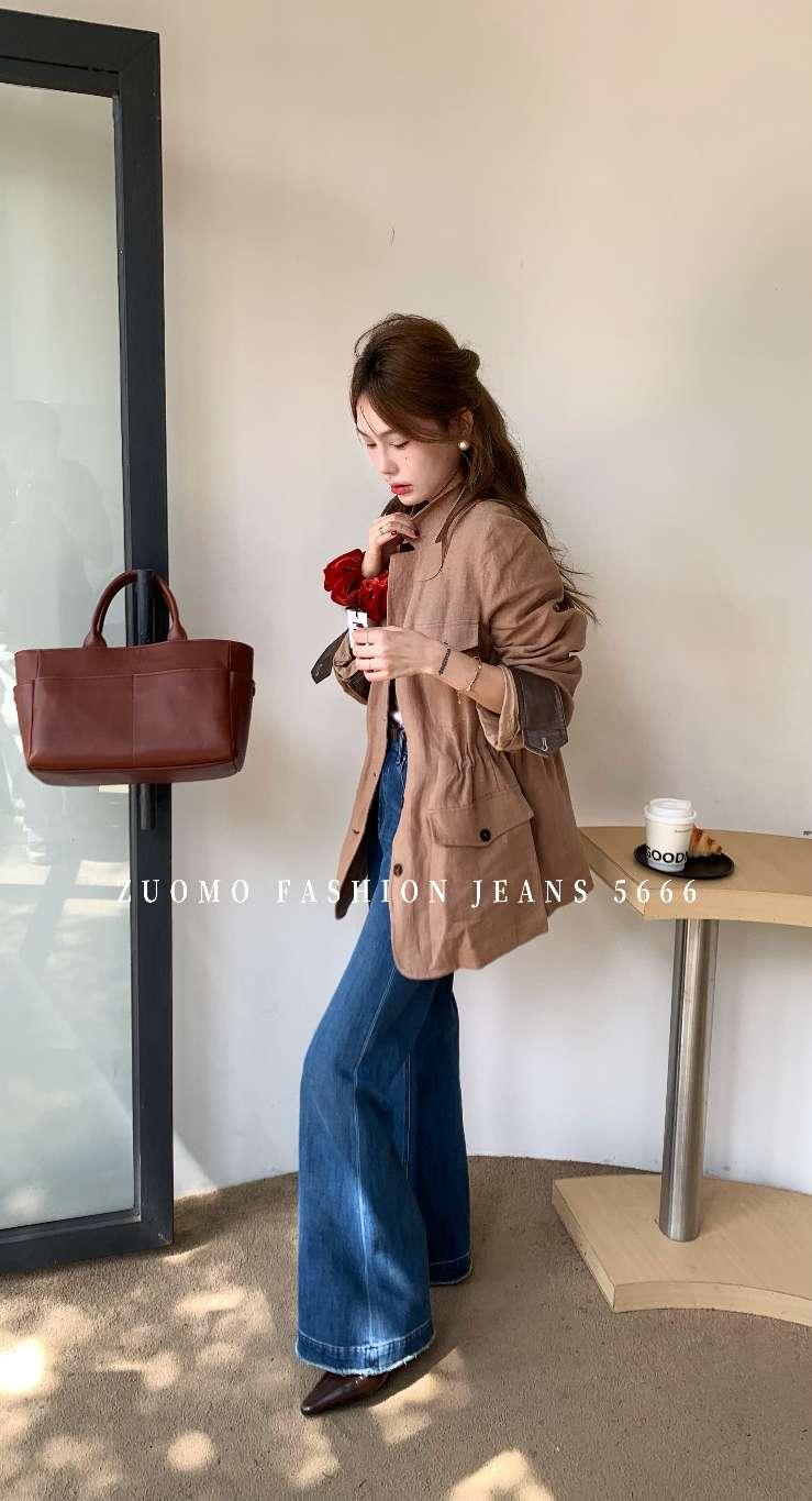 3. 【C7115】高品質四面彈筒喇叭寬邊褲腳須邊洋氣十足設計牛仔褲(配腰帶)