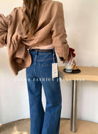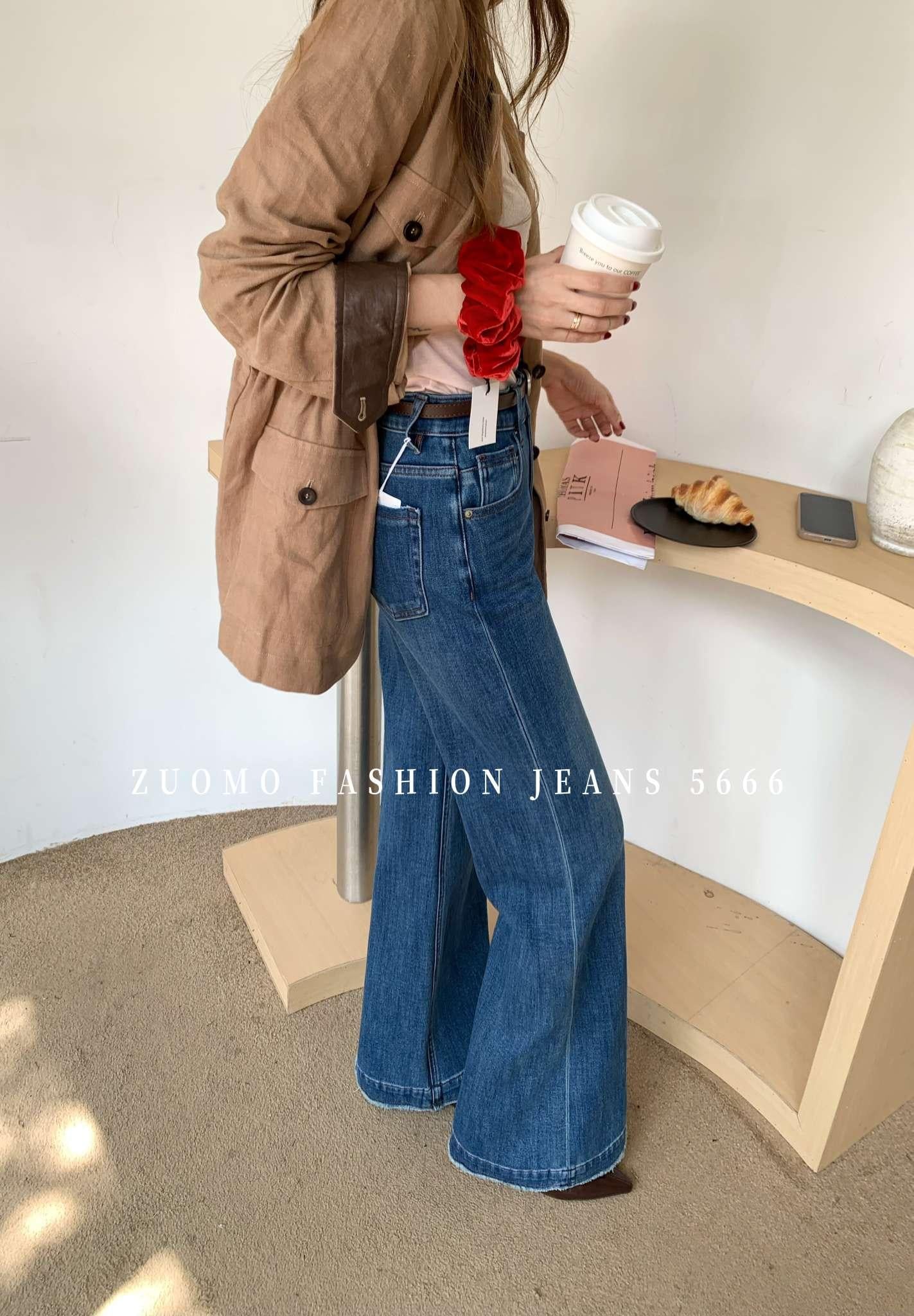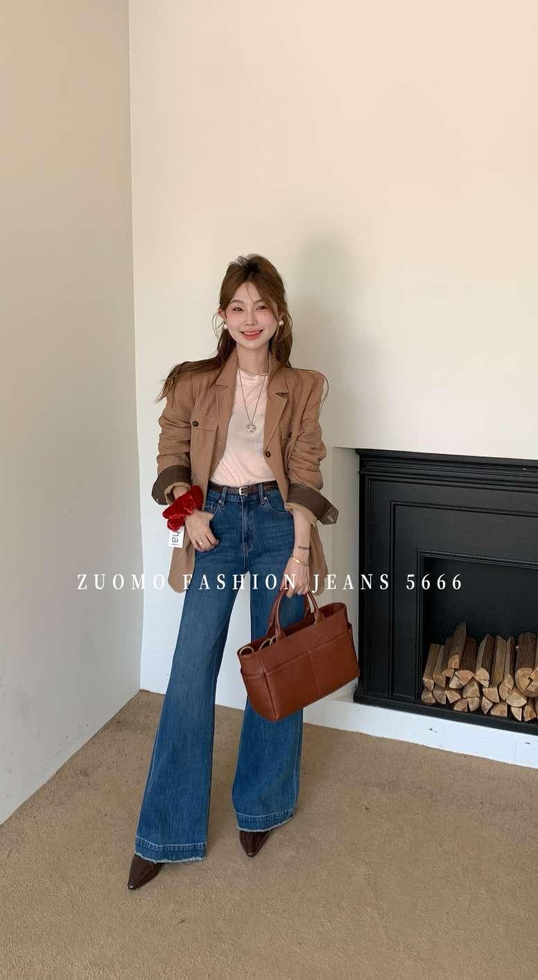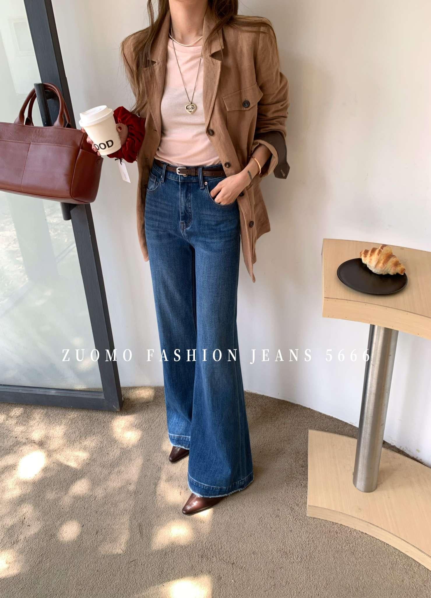 3. 【C7115】高品質四面彈筒喇叭寬邊褲腳須邊洋氣十足設計牛仔褲(配腰帶)