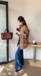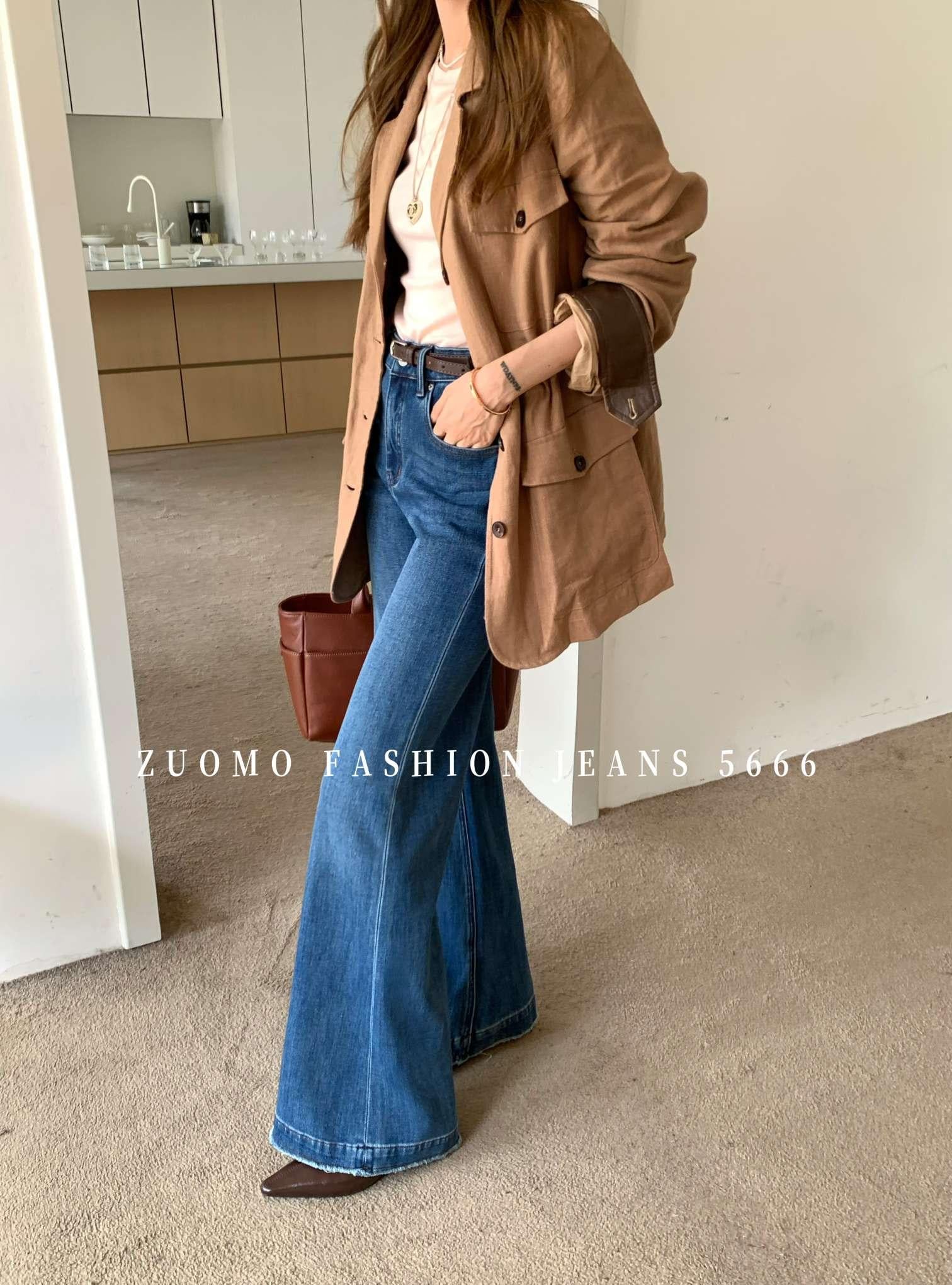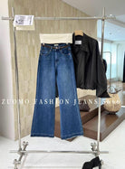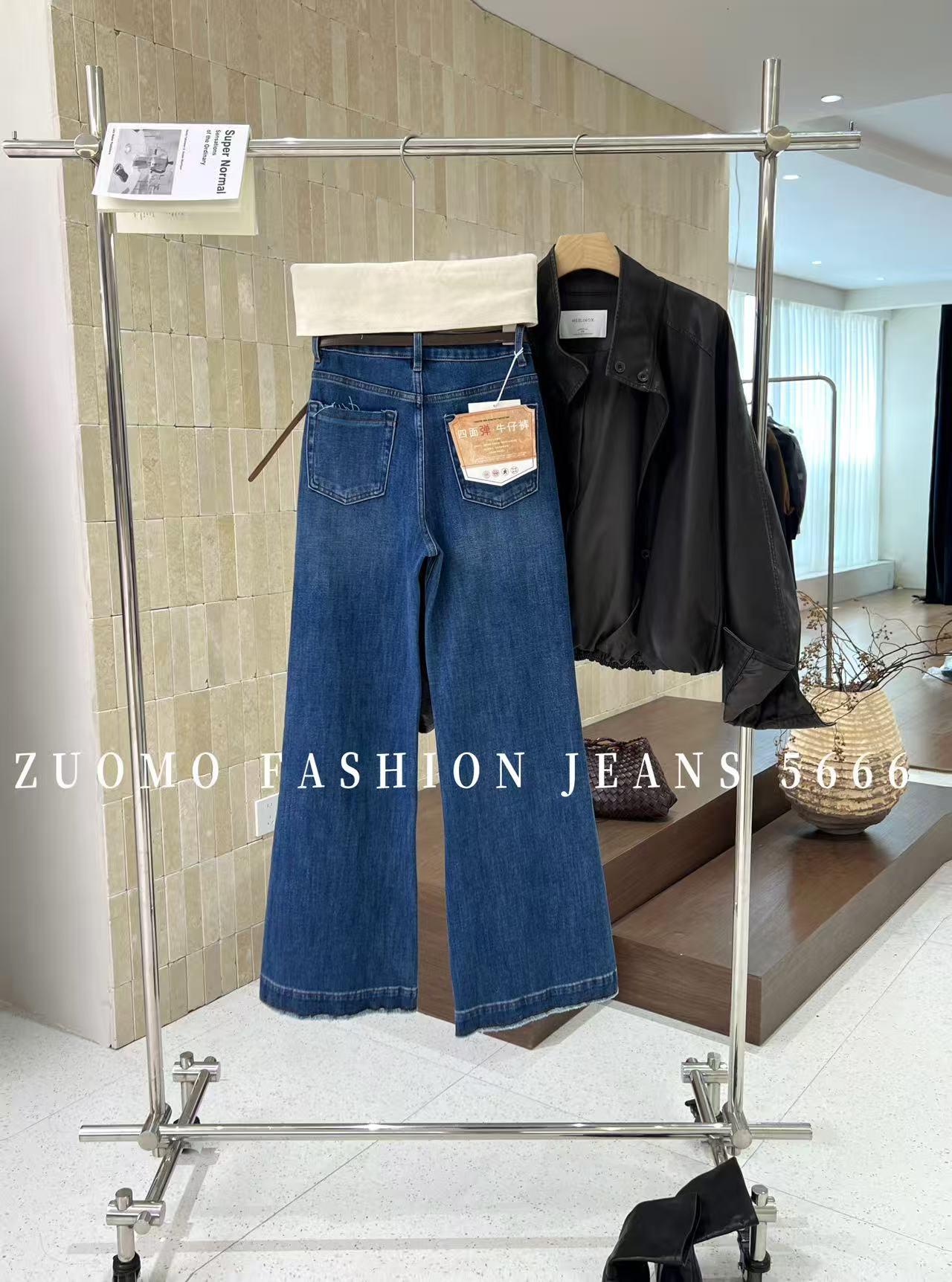 【C7115】高品質四面彈筒喇叭寬邊褲腳須邊洋氣十足設計牛仔褲(配腰帶)
